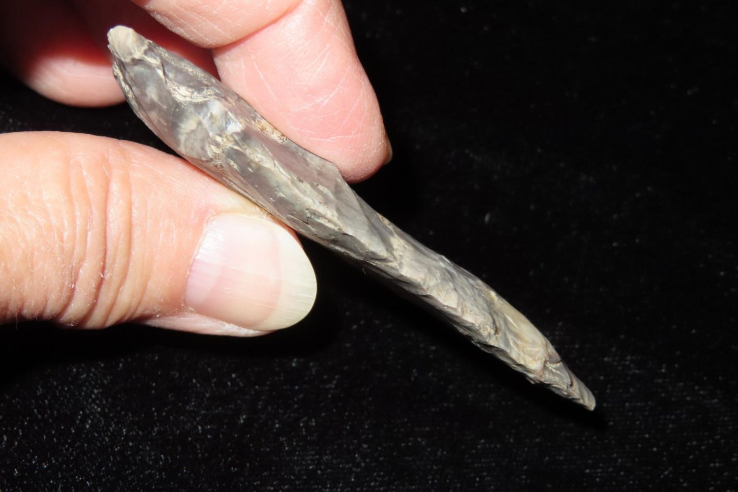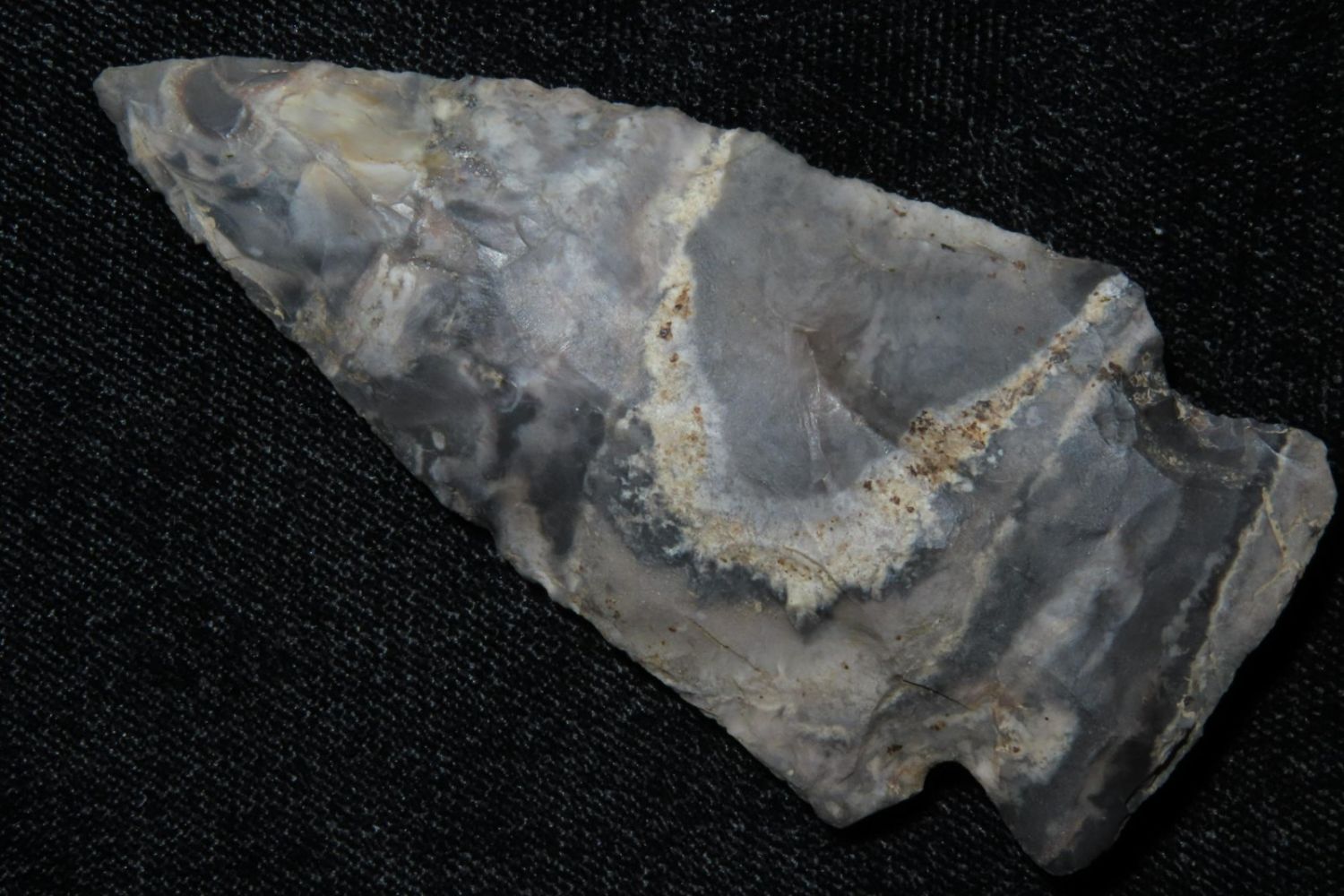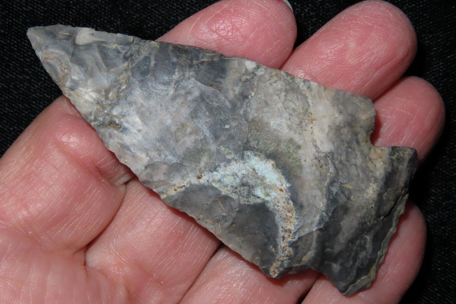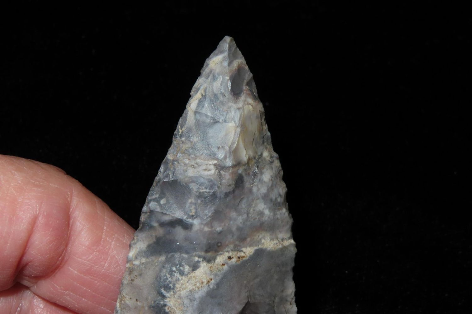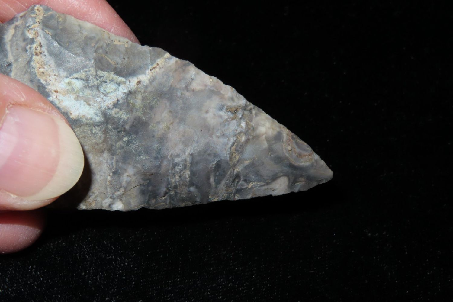 2 7/8" Etley. From the James and Joe George Collection. Joe George was an avid collector and finder of Native American artifacts in the greater St Louis Missouri area. Joe collected his entire life. Upon his passing he turned his collection over to his son James. James was also a very avid collector. He enjoyed walking various waterways and attending artifact shows. James is looking forward to passing down his collection to the relic community for caretaking.