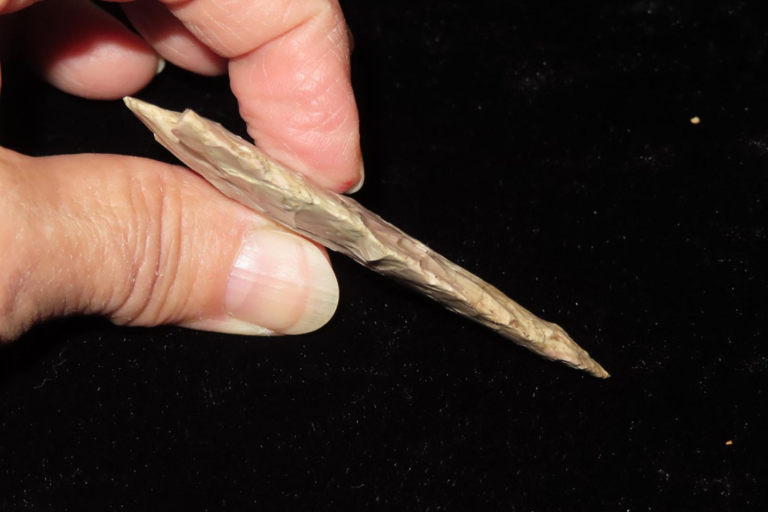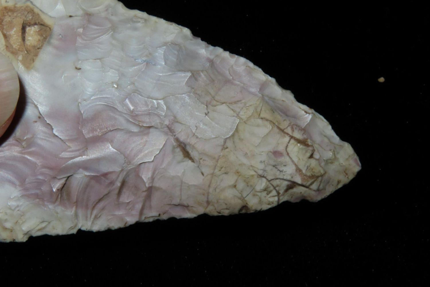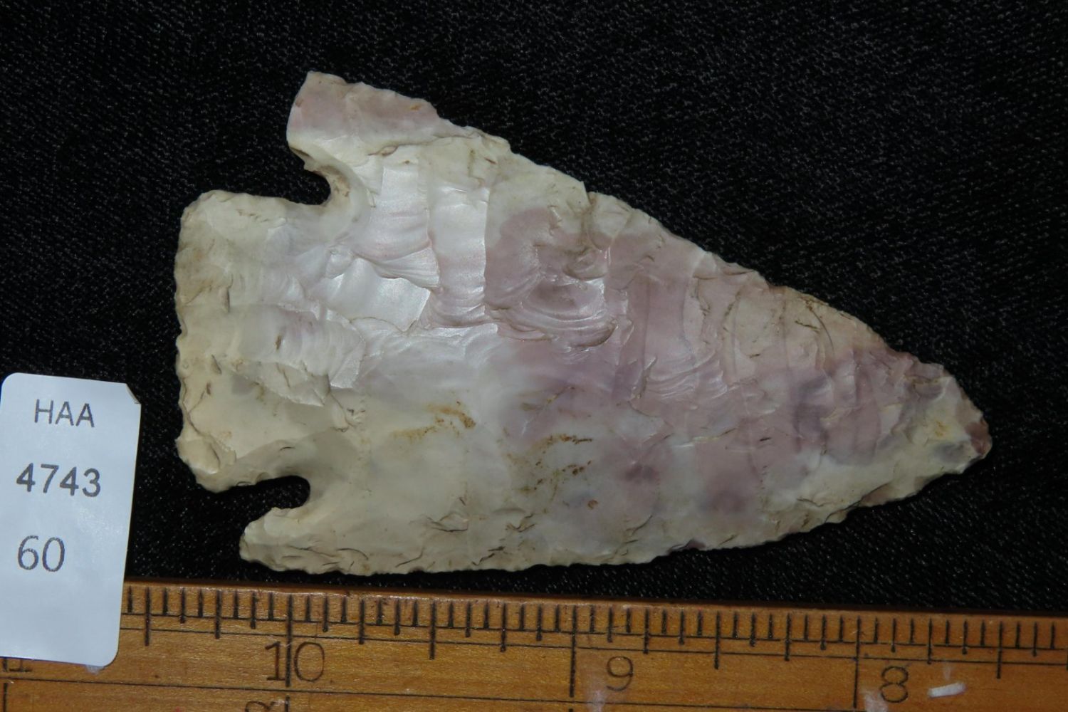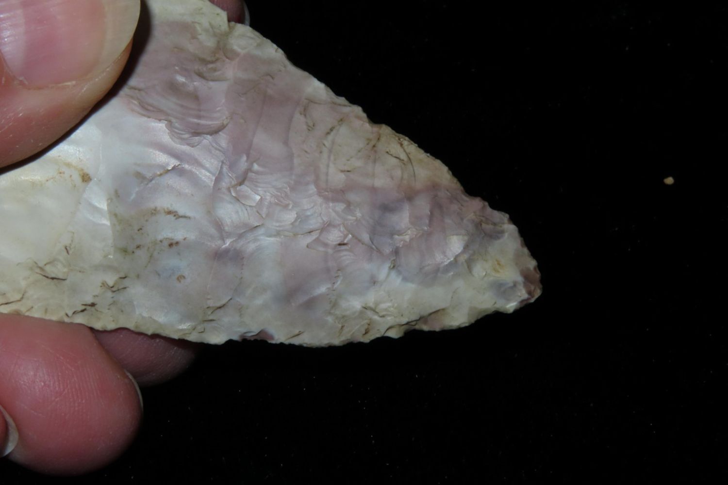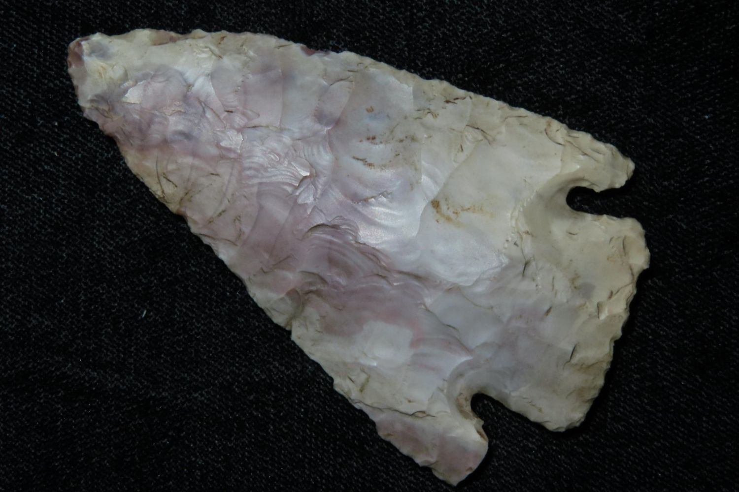 2 7/8" Calf Creek. From the James and Joe George Collection. Joe George was an avid collector and finder of Native American artifacts in the greater St Louis Missouri area. Joe collected his entire life. Upon his passing he turned his collection over to his son James. James was also a very avid collector. He enjoyed walking various waterways and attending artifact shows. James is looking forward to passing down his collection to the relic community for caretaking.
