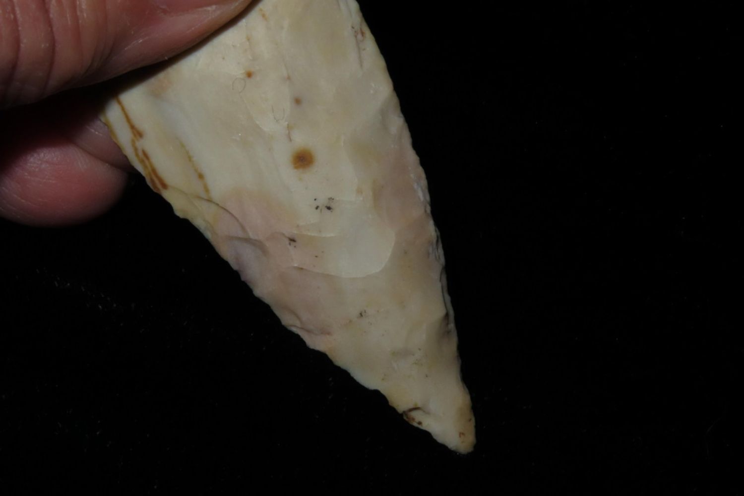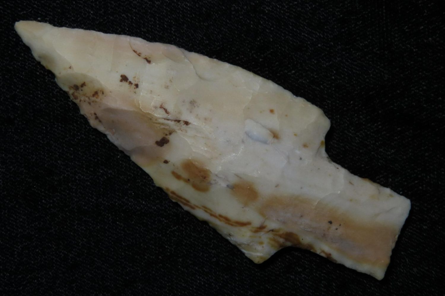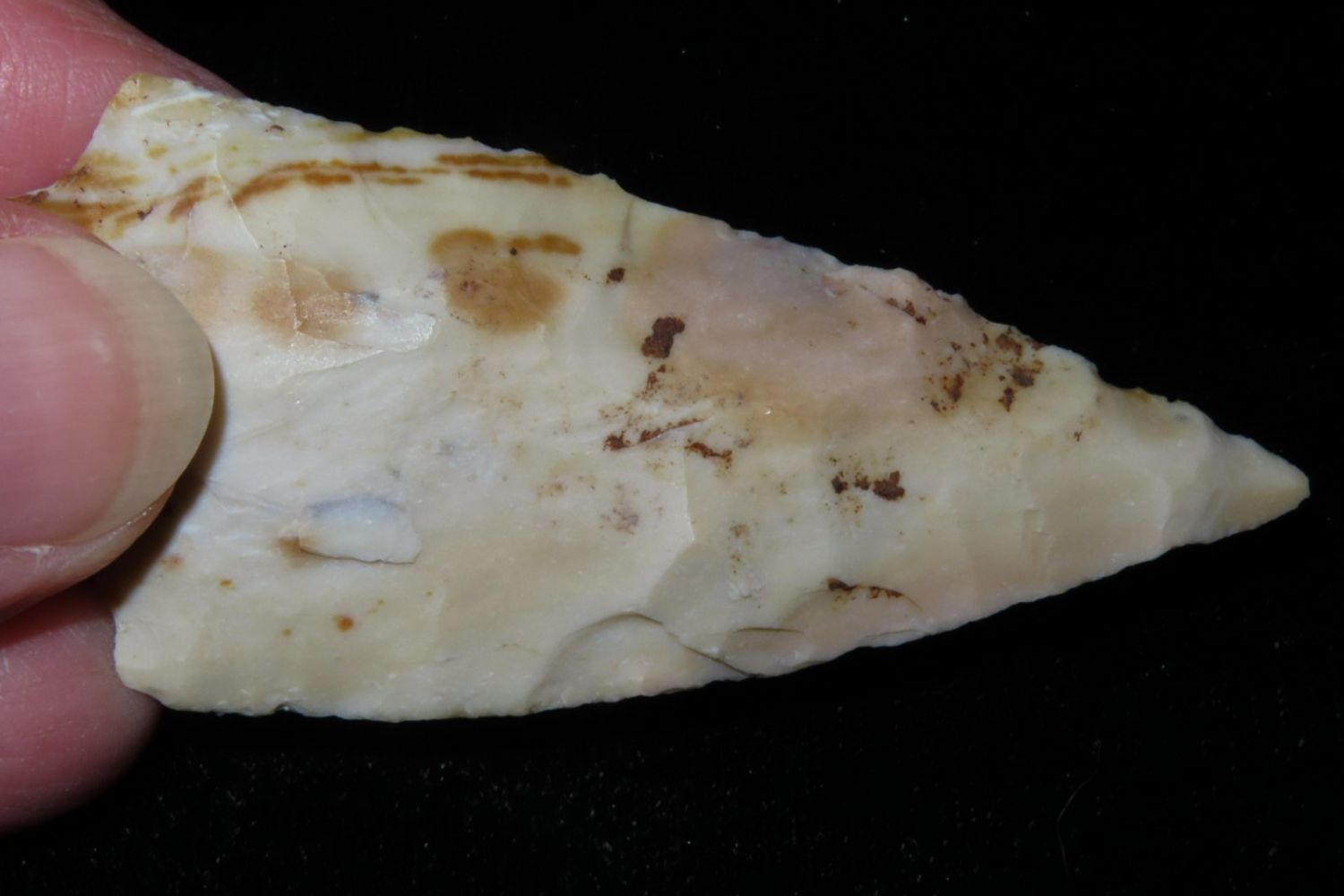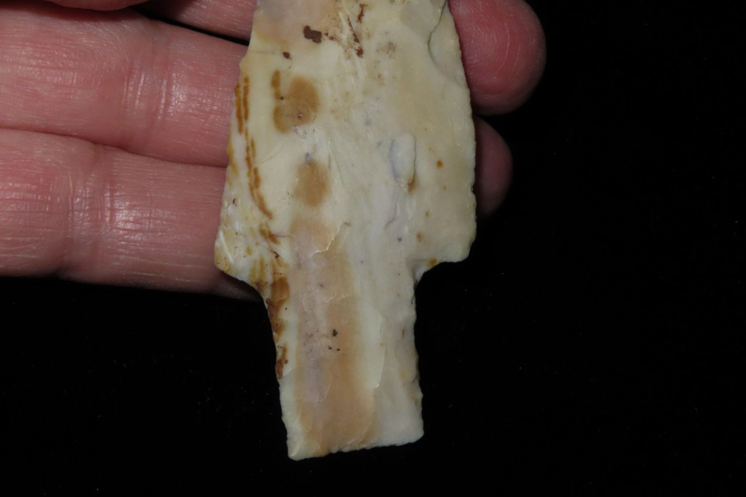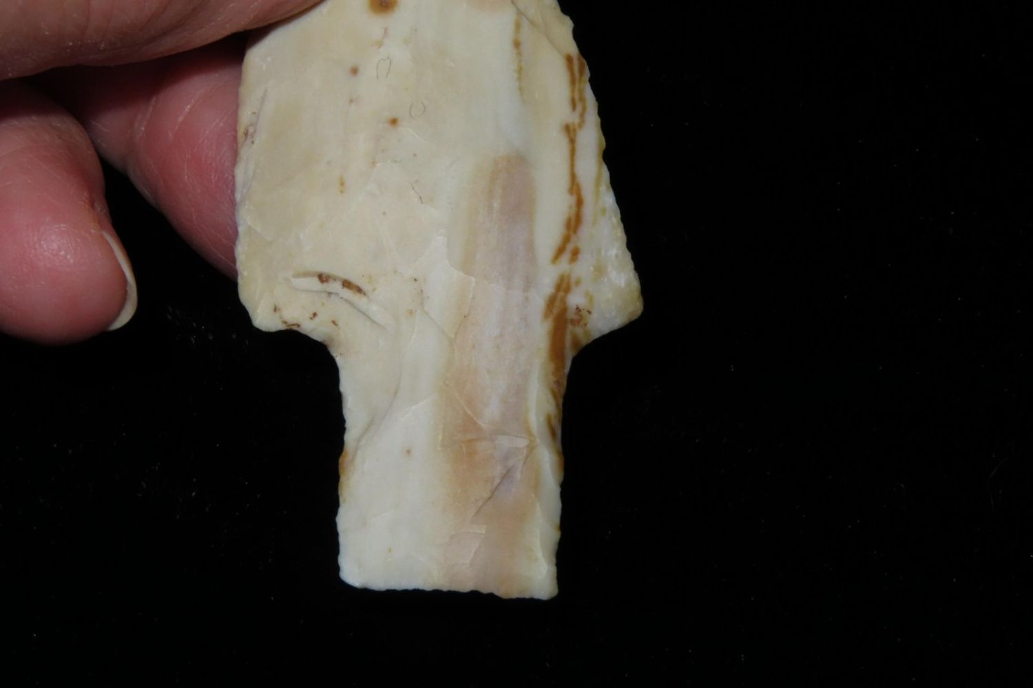 3 1/8" Kaolin Square Stem. From the James and Joe George Collection. Joe George was an avid collector and finder of Native American artifacts in the greater St Louis Missouri area. Joe collected his entire life. Upon his passing he turned his collection over to his son James. James was also a very avid collector. He enjoyed walking various waterways and attending artifact shows. James is looking forward to passing down his collection to the relic community for caretaking.