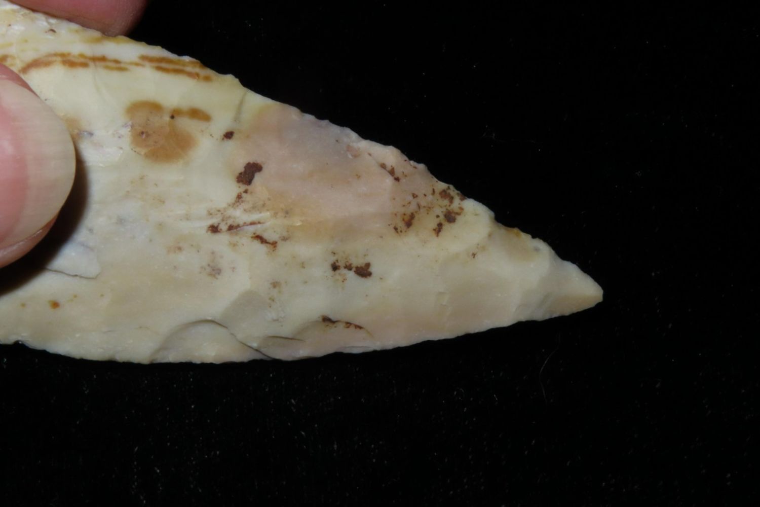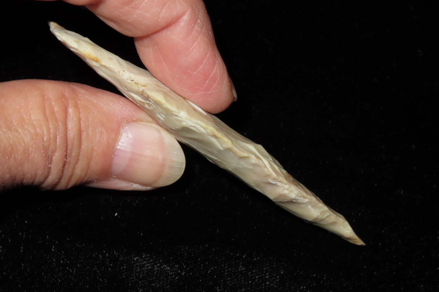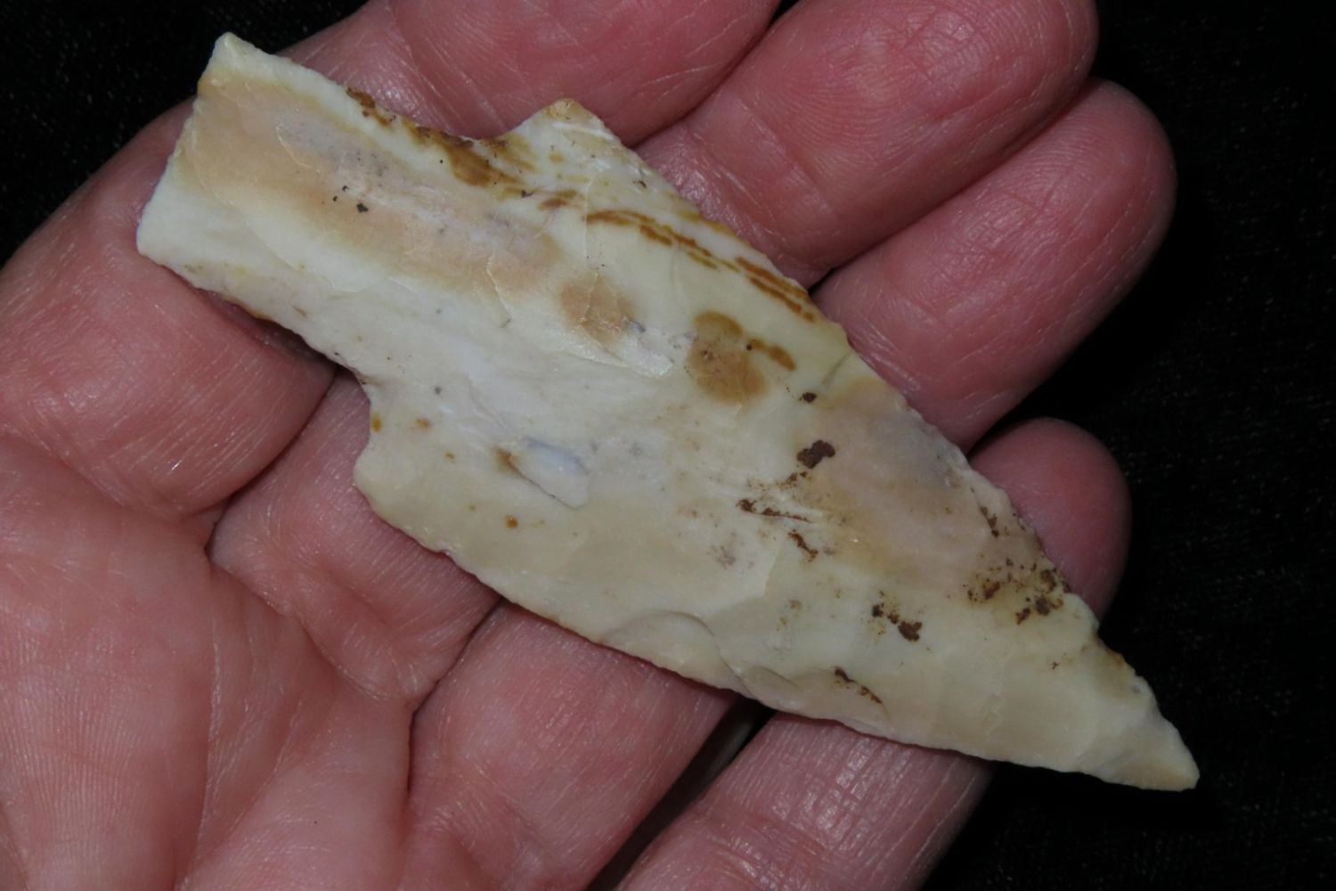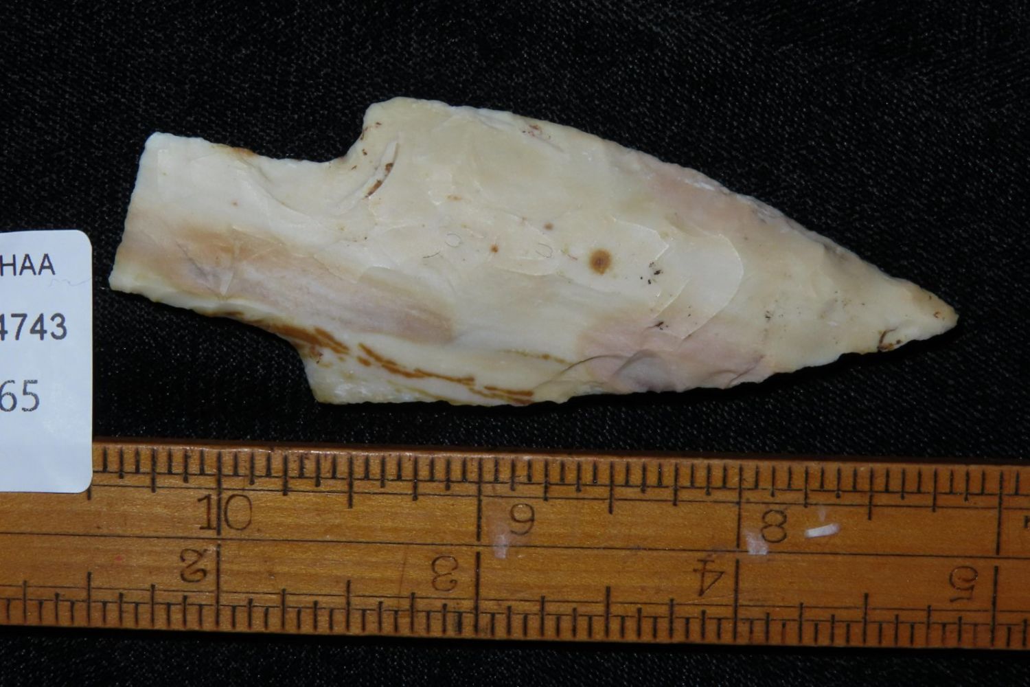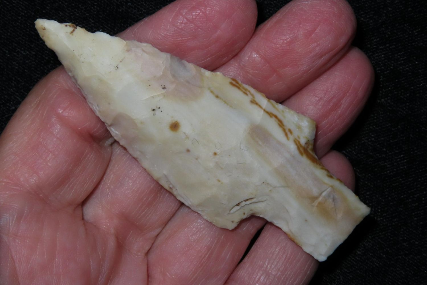 3 1/8" Kaolin Square Stem. From the James and Joe George Collection. Joe George was an avid collector and finder of Native American artifacts in the greater St Louis Missouri area. Joe collected his entire life. Upon his passing he turned his collection over to his son James. James was also a very avid collector. He enjoyed walking various waterways and attending artifact shows. James is looking forward to passing down his collection to the relic community for caretaking.