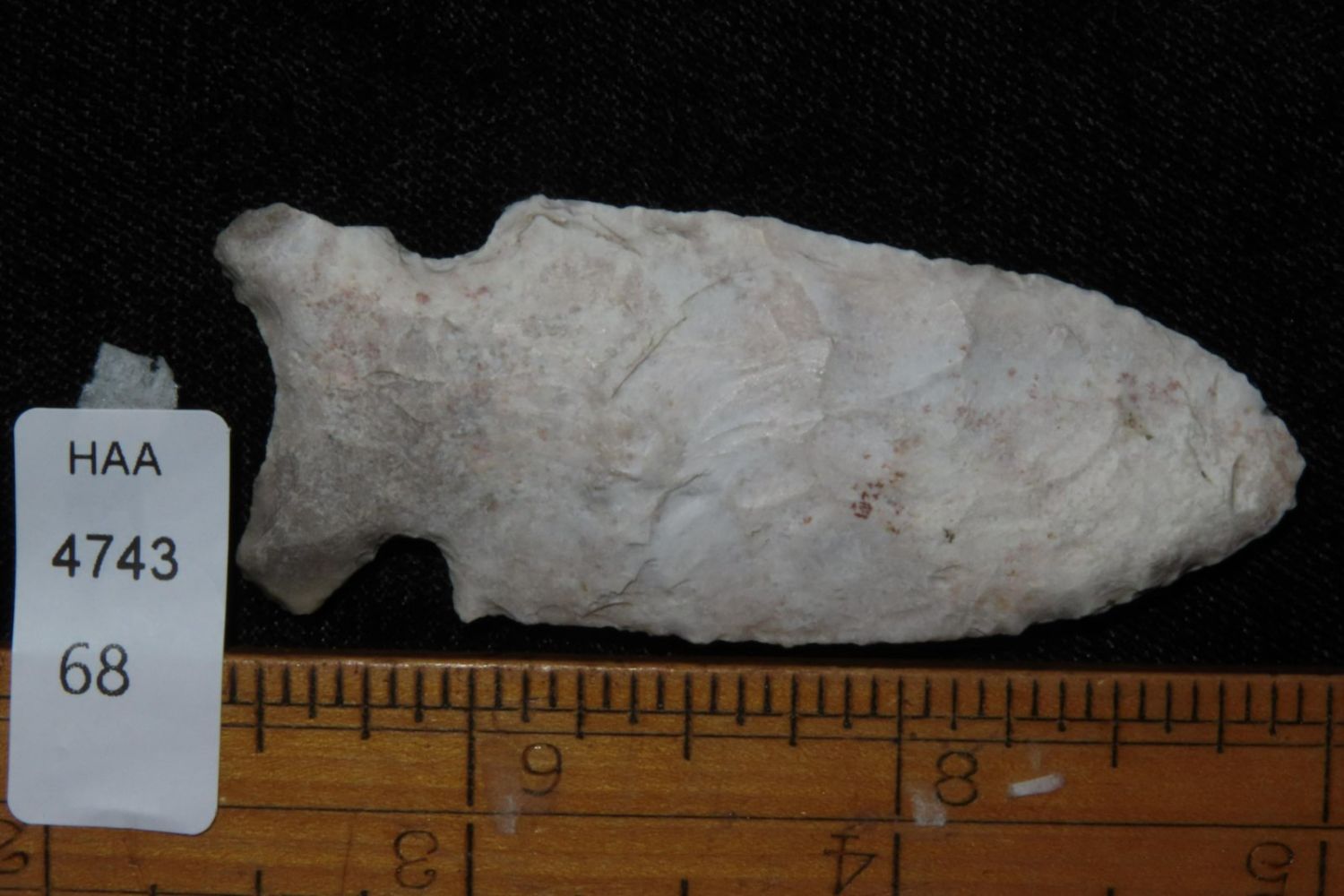 2 5/8" Osceola. From the James and Joe George Collection. Joe George was an avid collector and finder of Native American artifacts in the greater St Louis Missouri area. Joe collected his entire life. Upon his passing he turned his collection over to his son James. James was also a very avid collector. He enjoyed walking various waterways and attending artifact shows. James is looking forward to passing down his collection to the relic community for caretaking.
