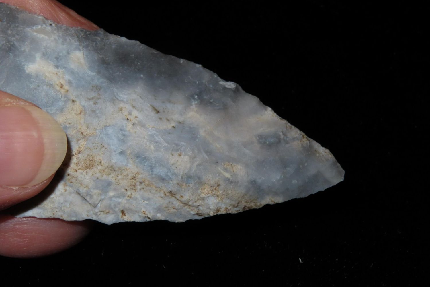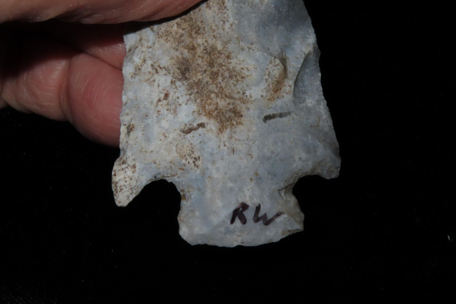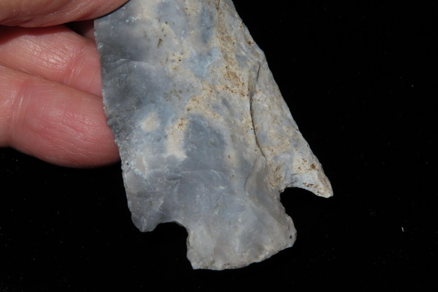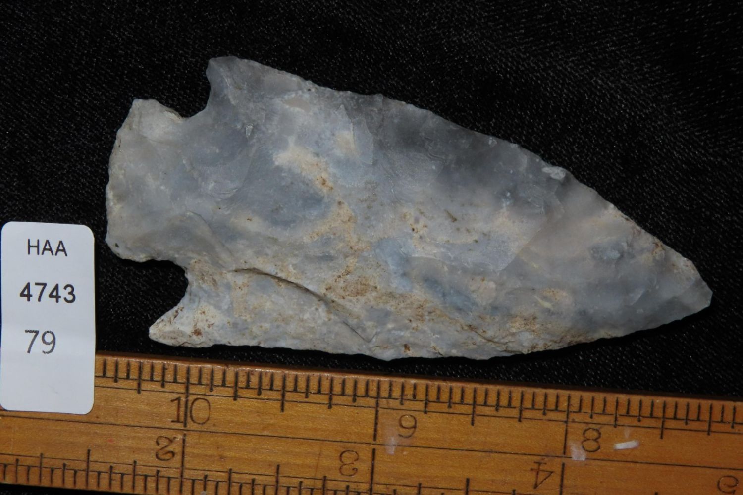 3 1/8" Etley found by Richard Whittle. From the James and Joe George Collection. Joe George was an avid collector and finder of Native American artifacts in the greater St Louis Missouri area. Joe collected his entire life. Upon his passing he turned his collection over to his son James. James was also a very avid collector. He enjoyed walking various waterways and attending artifact shows. James is looking forward to passing down his collection to the relic community for caretaking.