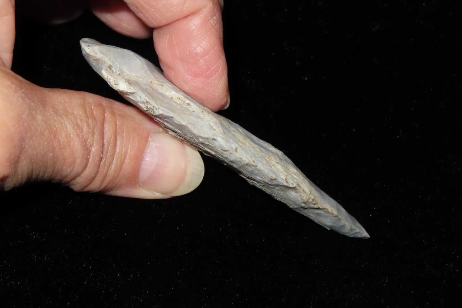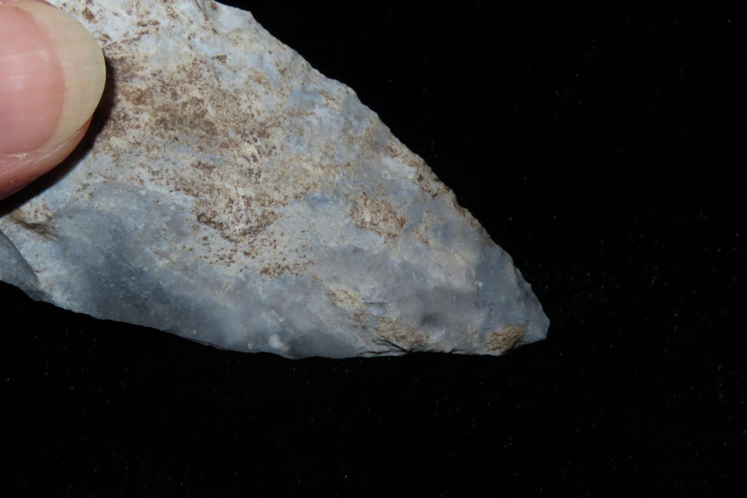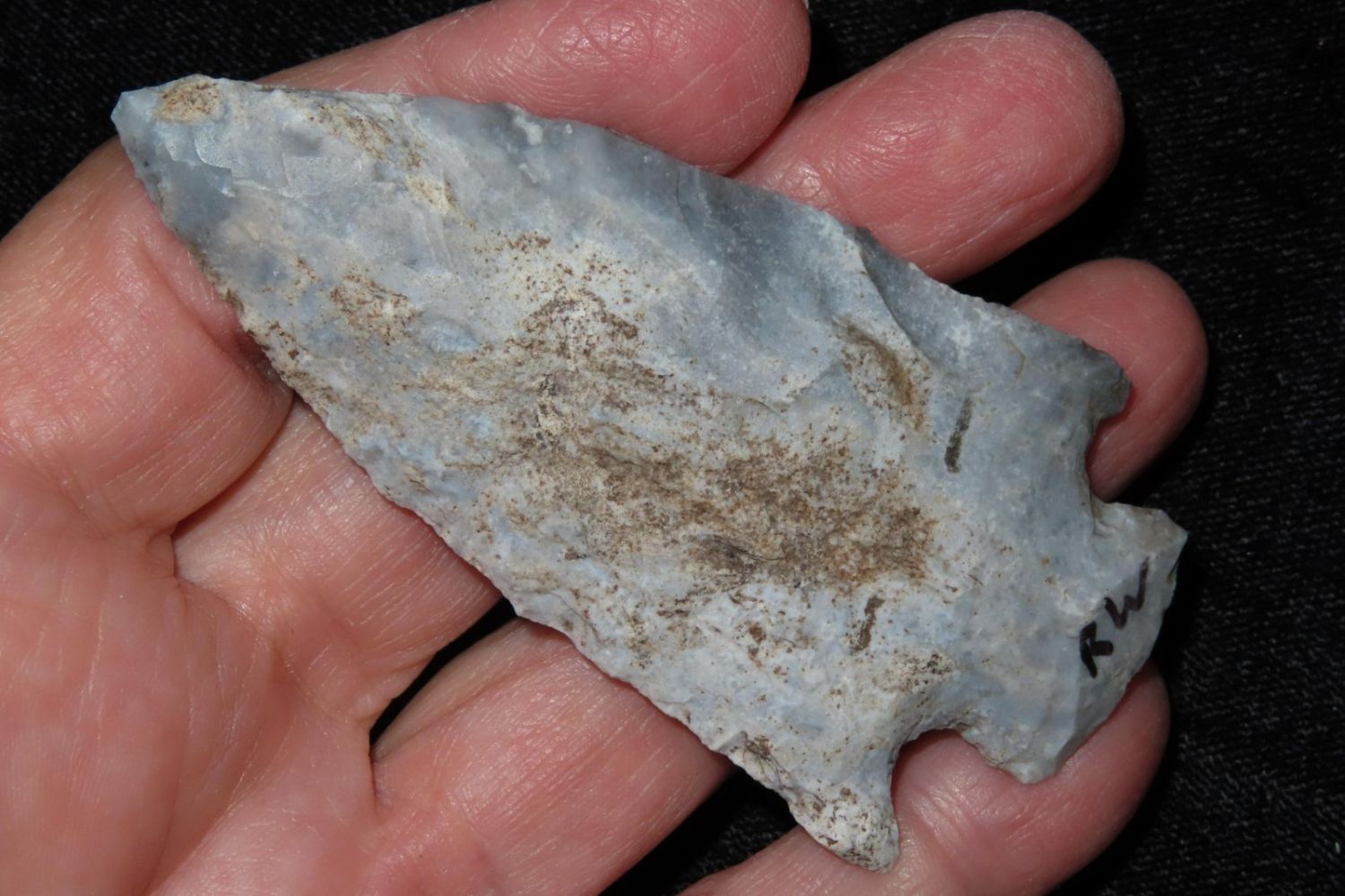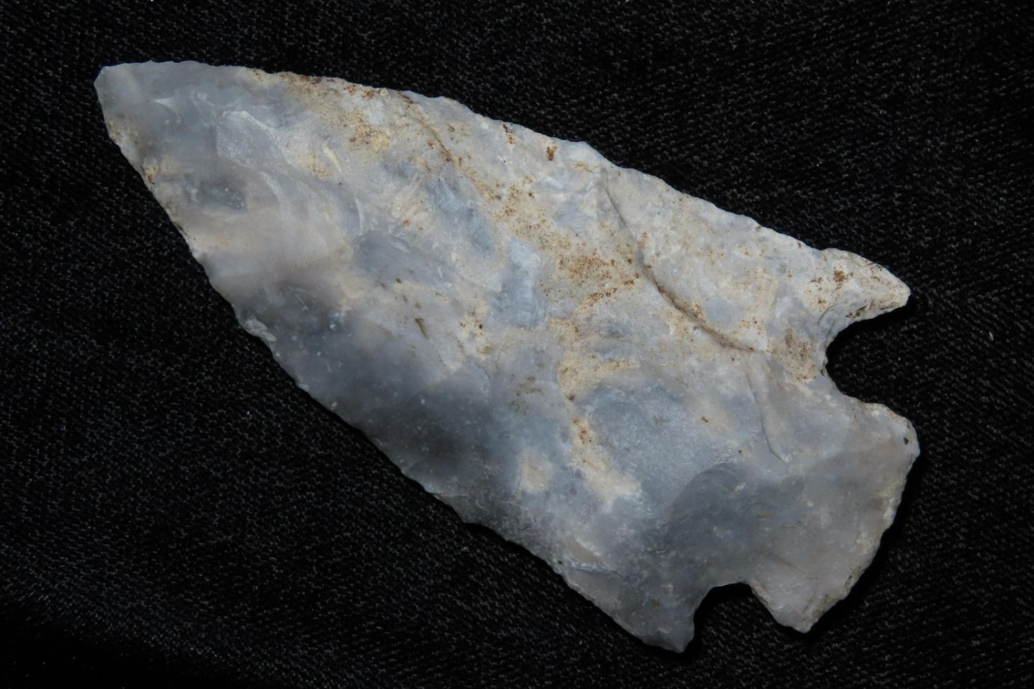 3 1/8" Etley found by Richard Whittle. From the James and Joe George Collection. Joe George was an avid collector and finder of Native American artifacts in the greater St Louis Missouri area. Joe collected his entire life. Upon his passing he turned his collection over to his son James. James was also a very avid collector. He enjoyed walking various waterways and attending artifact shows. James is looking forward to passing down his collection to the relic community for caretaking.