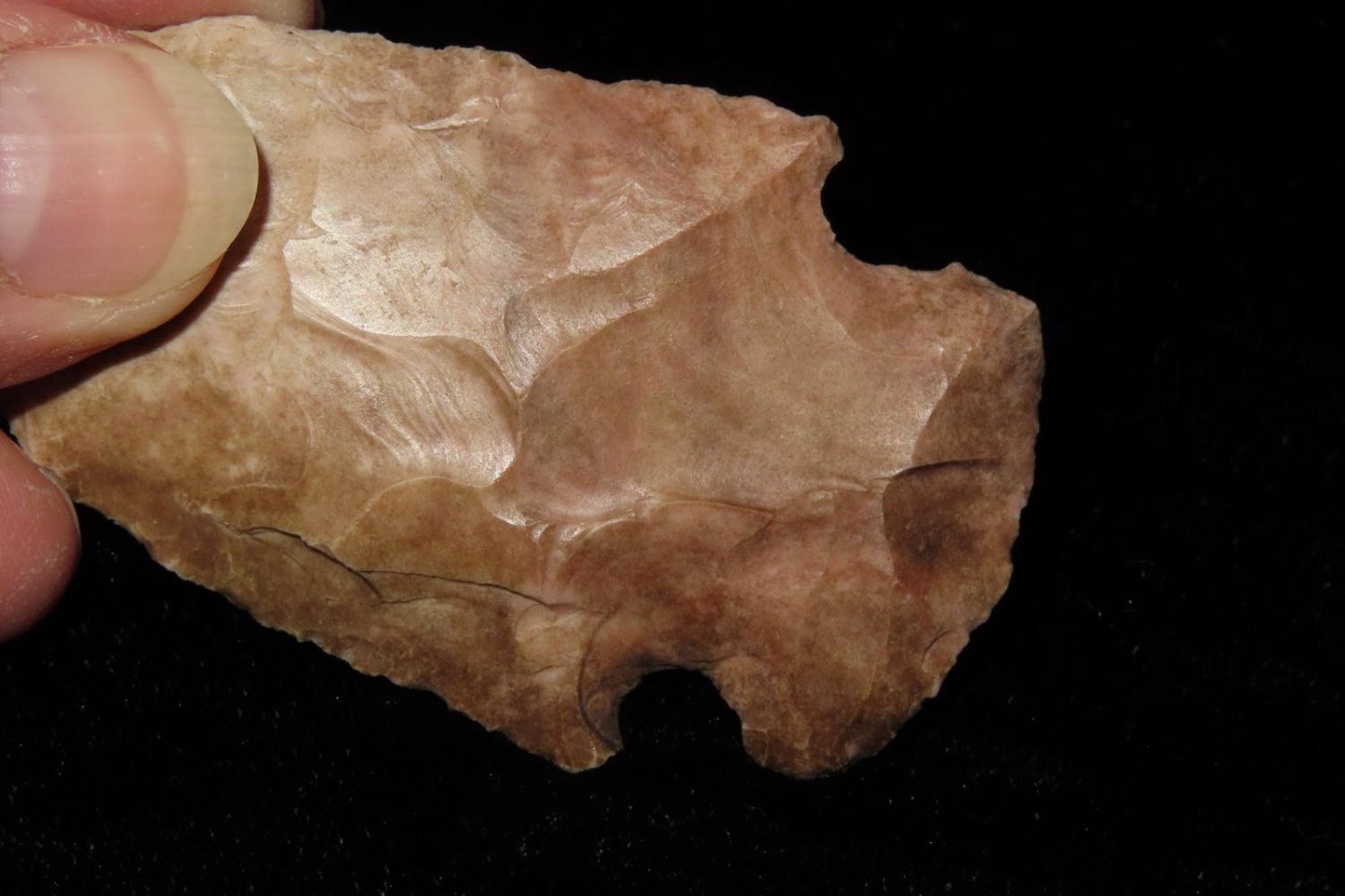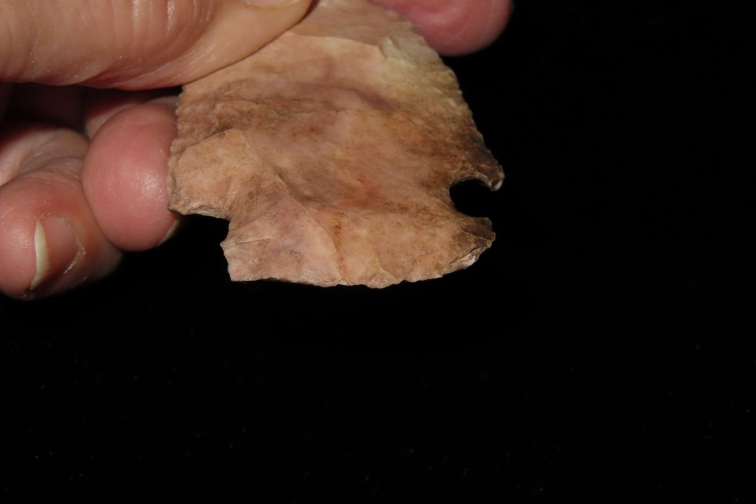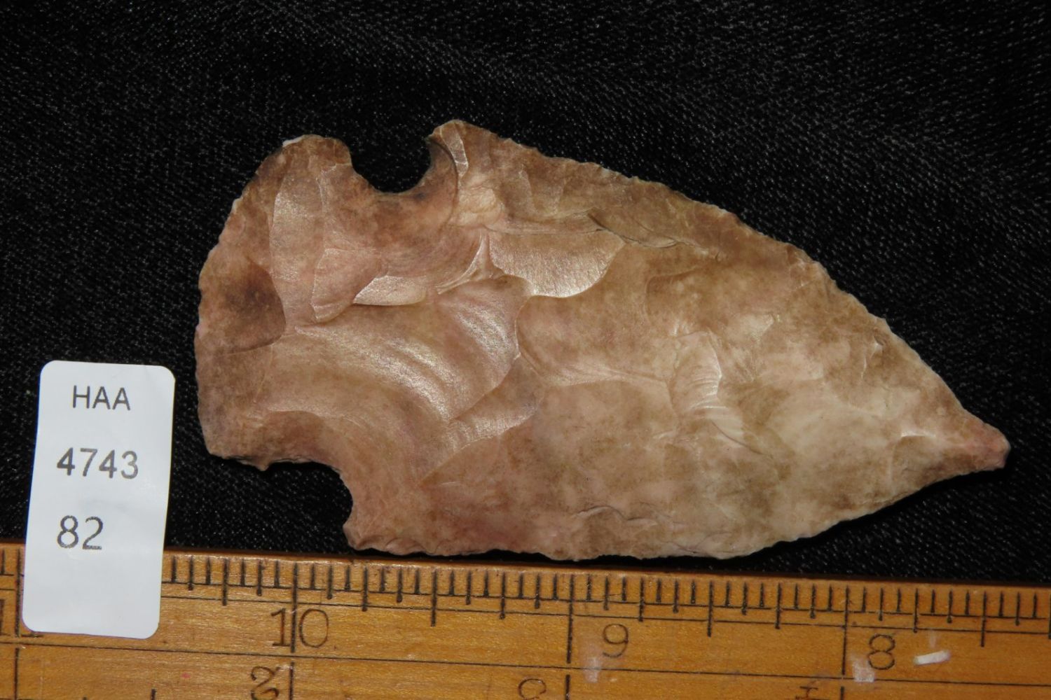 2 7/8" Ferry. From the James and Joe George Collection. Joe George was an avid collector and finder of Native American artifacts in the greater St Louis Missouri area. Joe collected his entire life. Upon his passing he turned his collection over to his son James. James was also a very avid collector. He enjoyed walking various waterways and attending artifact shows. James is looking forward to passing down his collection to the relic community for caretaking.