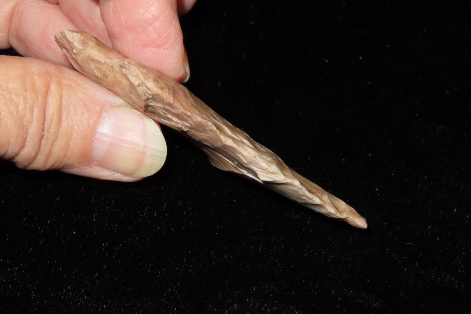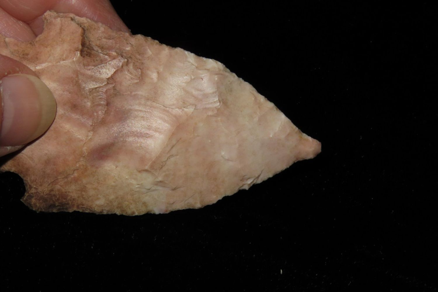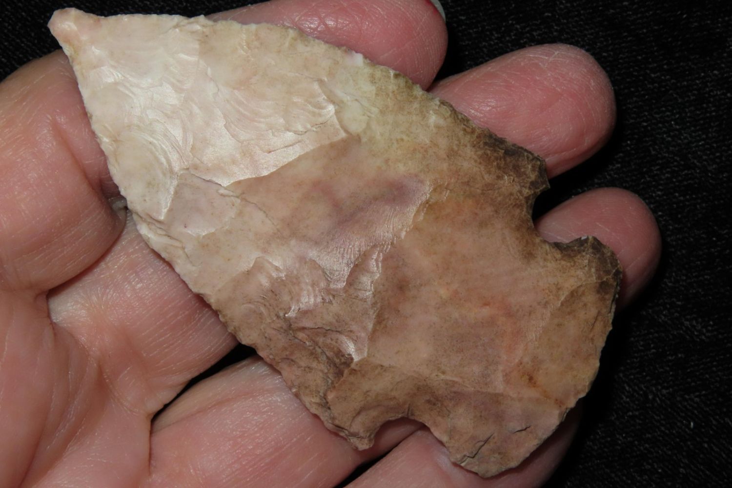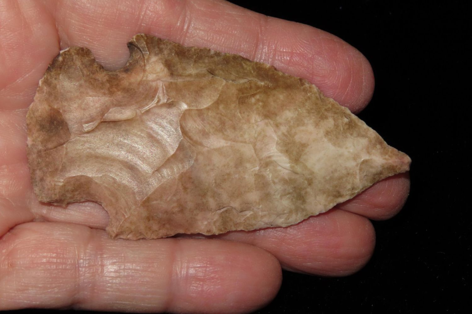 2 7/8" Ferry. From the James and Joe George Collection. Joe George was an avid collector and finder of Native American artifacts in the greater St Louis Missouri area. Joe collected his entire life. Upon his passing he turned his collection over to his son James. James was also a very avid collector. He enjoyed walking various waterways and attending artifact shows. James is looking forward to passing down his collection to the relic community for caretaking.