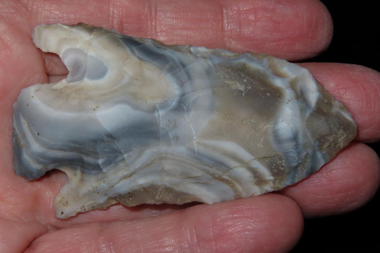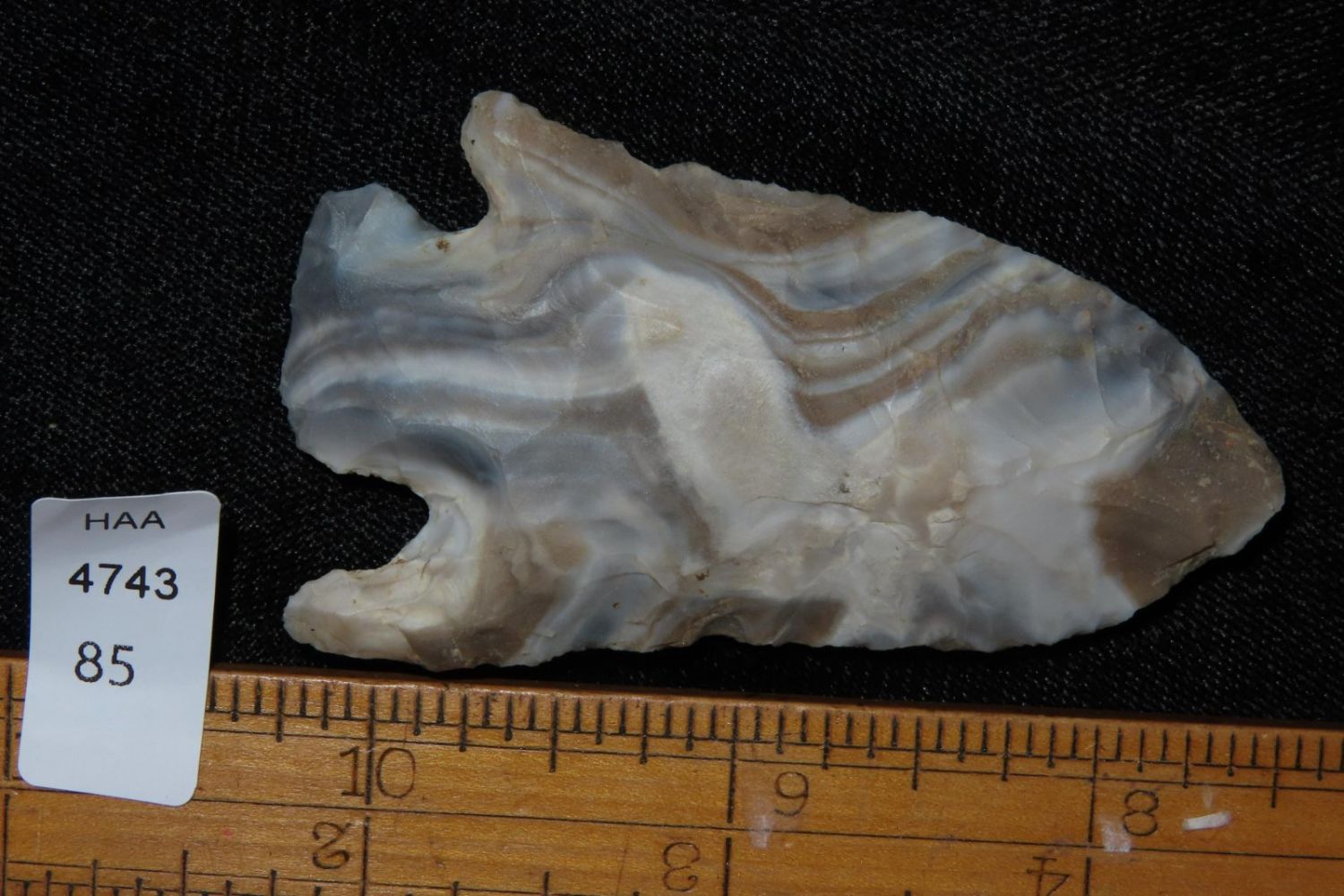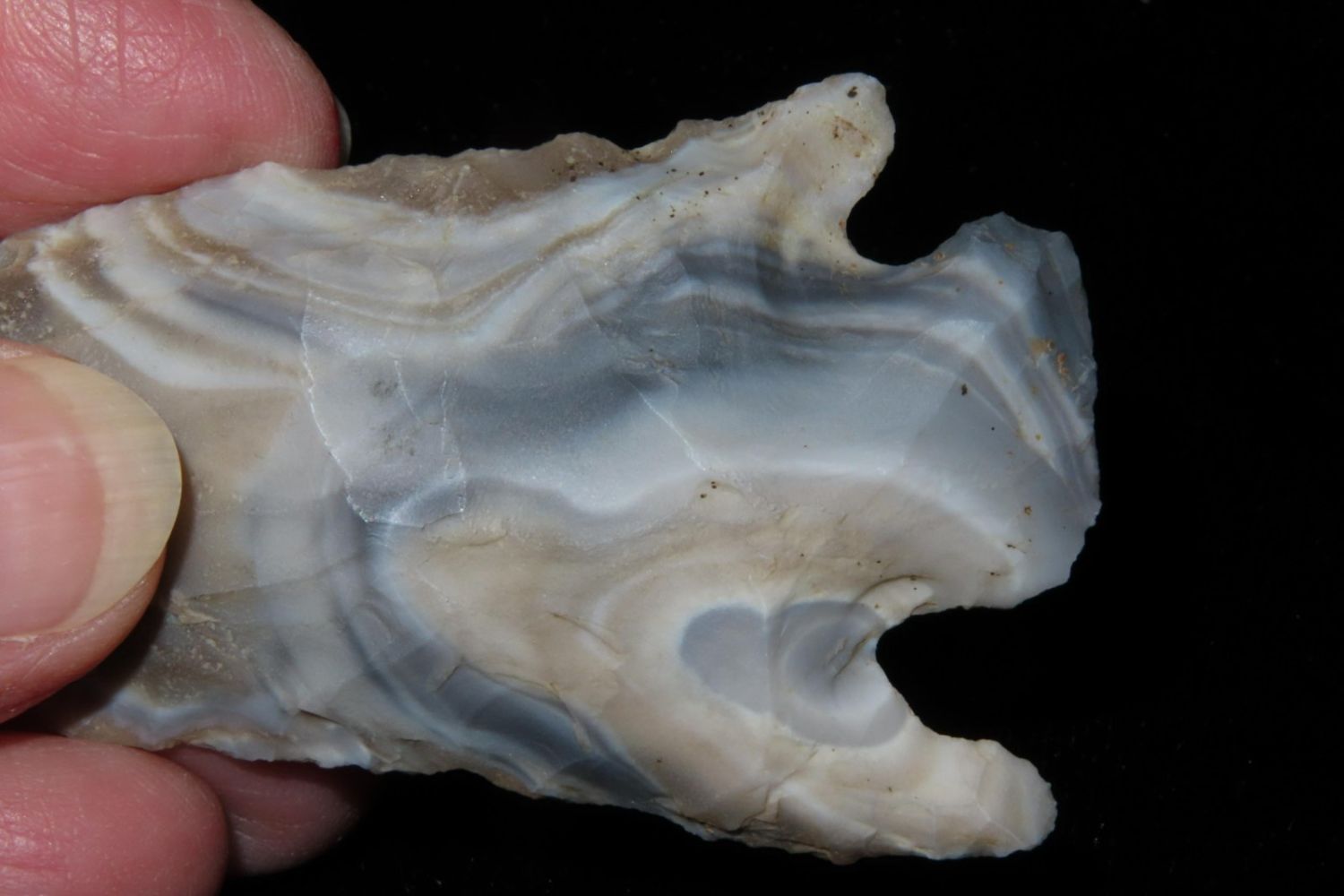 2 3/4" Incredible color Etley. From the James and Joe George Collection. Joe George was an avid collector and finder of Native American artifacts in the greater St Louis Missouri area. Joe collected his entire life. Upon his passing he turned his collection over to his son James. James was also a very avid collector. He enjoyed walking various waterways and attending artifact shows. James is looking forward to passing down his collection to the relic community for caretaking.