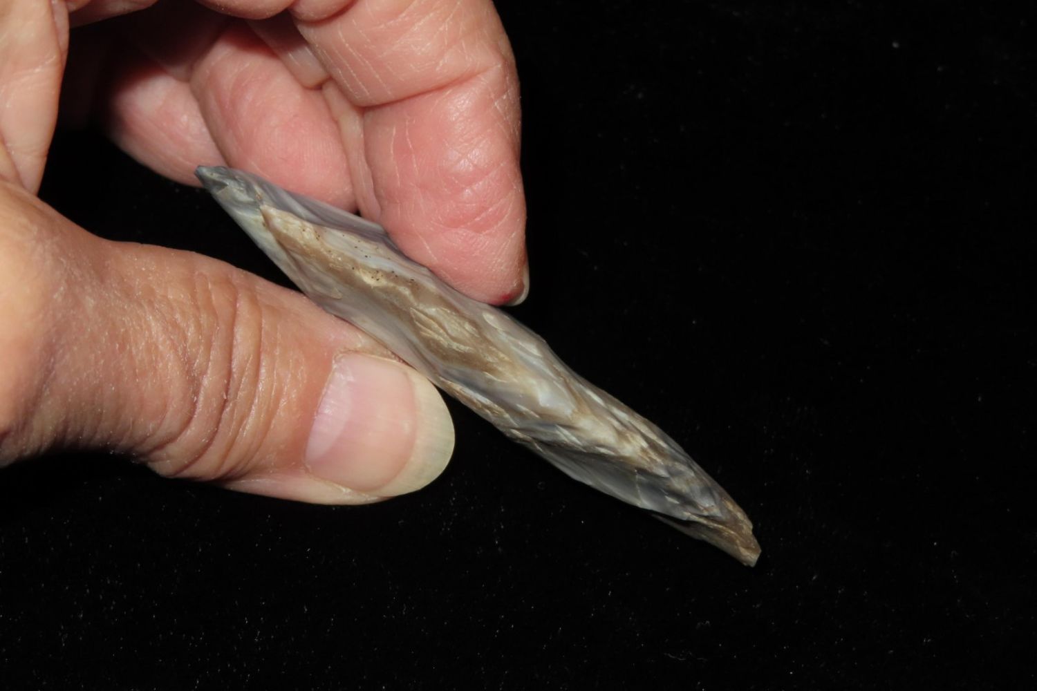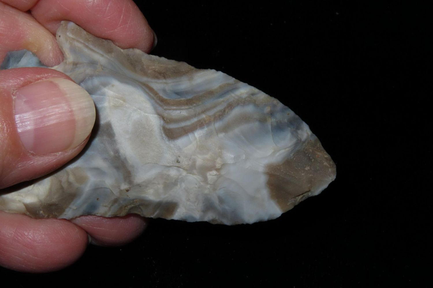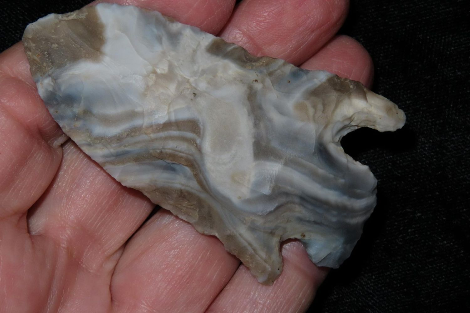 2 3/4" Incredible color Etley. From the James and Joe George Collection. Joe George was an avid collector and finder of Native American artifacts in the greater St Louis Missouri area. Joe collected his entire life. Upon his passing he turned his collection over to his son James. James was also a very avid collector. He enjoyed walking various waterways and attending artifact shows. James is looking forward to passing down his collection to the relic community for caretaking.