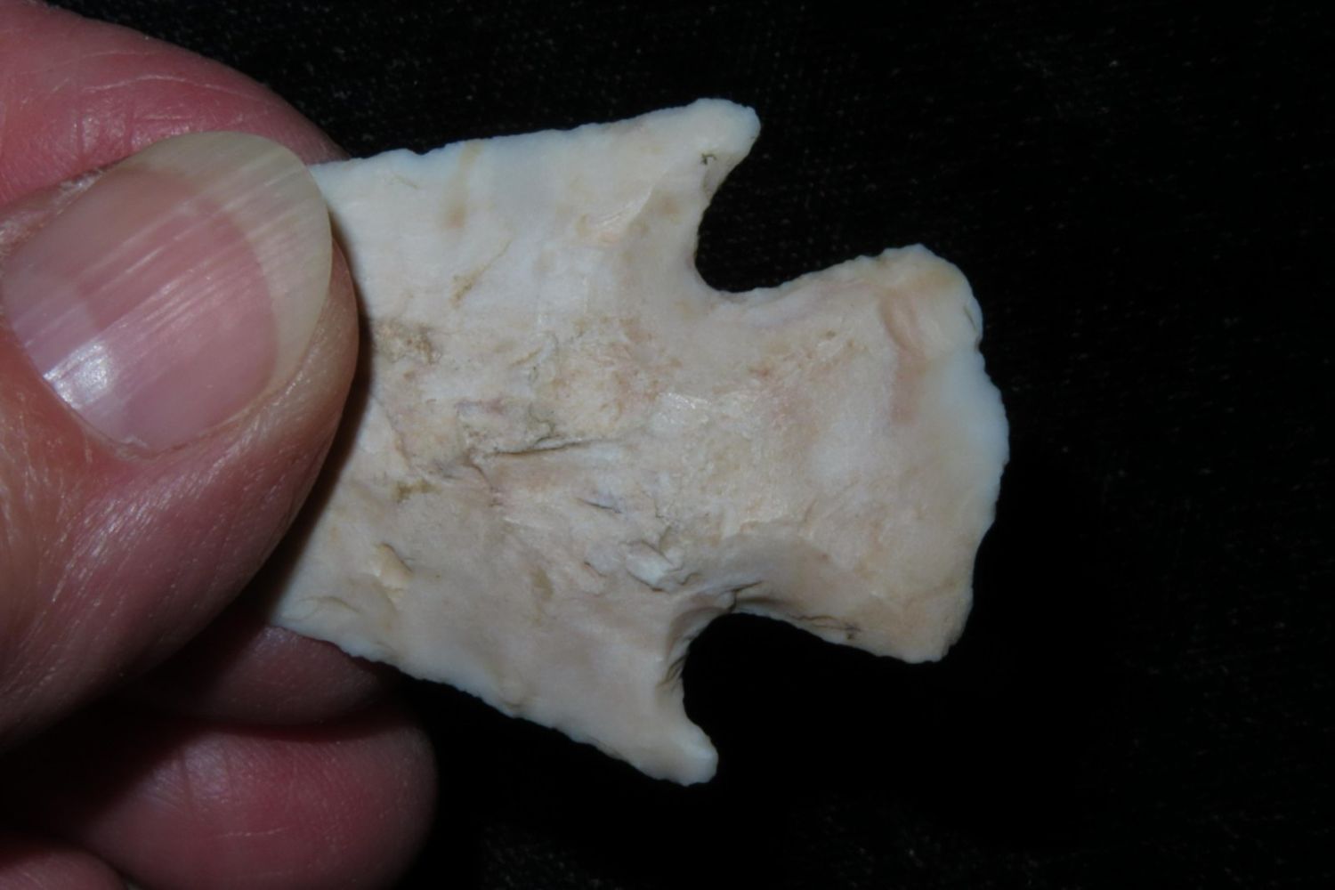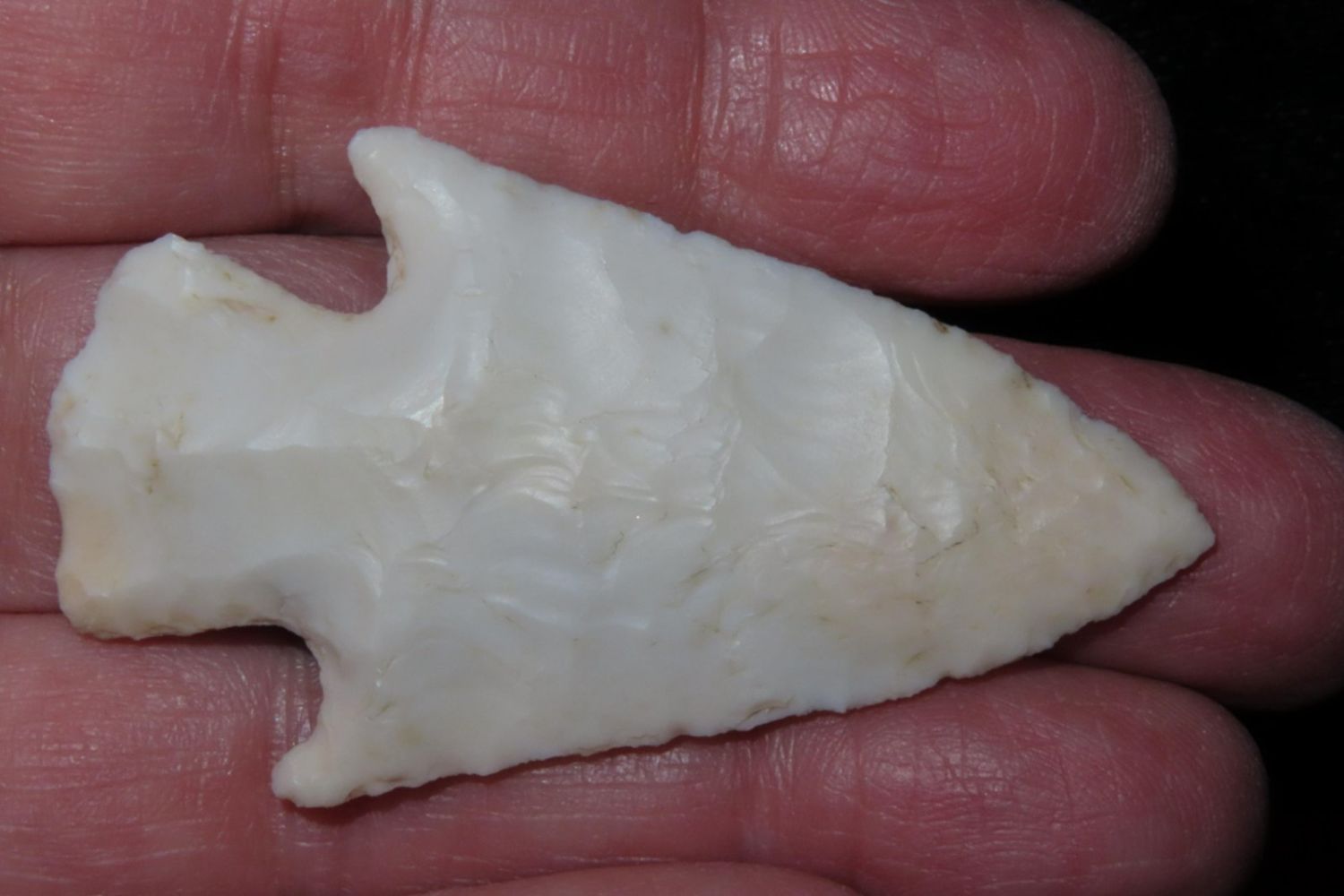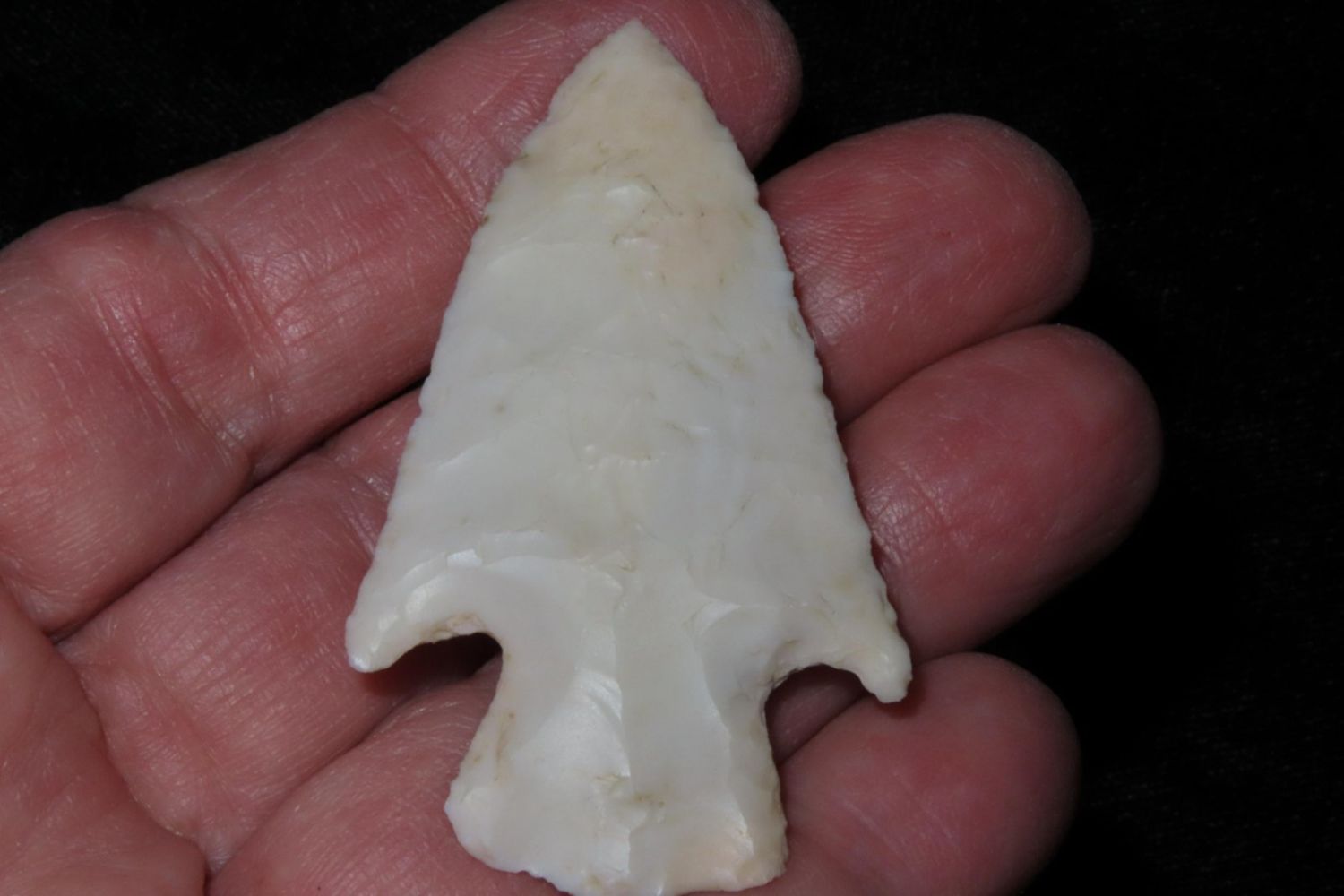 2 1/8" Apple Creek made from a translucent material with nice ears. From the James and Joe George Collection. Joe George was an avid collector and finder of Native American artifacts in the greater St Louis Missouri area. Joe collected his entire life. Upon his passing he turned his collection over to his son James. James was also a very avid collector. He enjoyed walking various waterways and attending artifact shows. James is looking forward to passing down his collection to the relic community for caretaking.