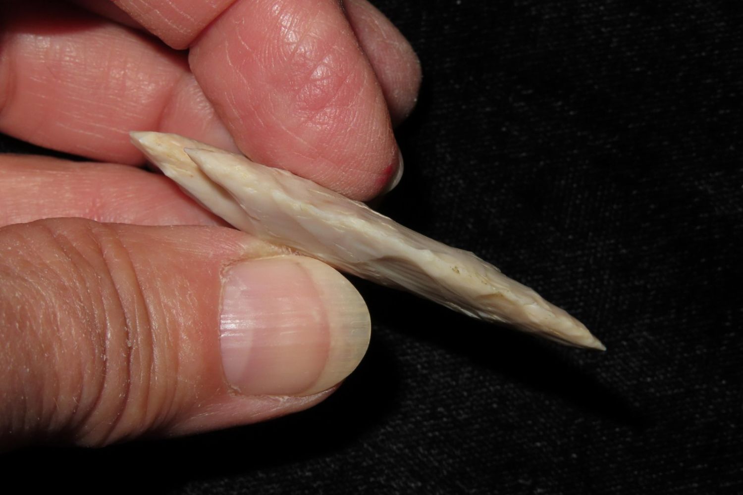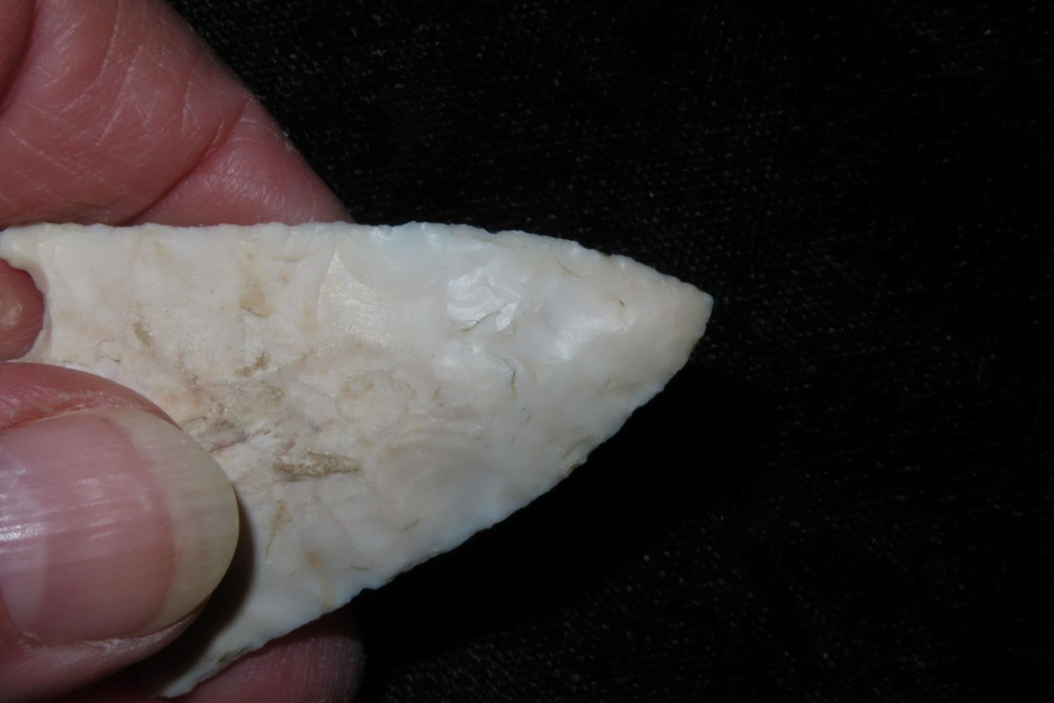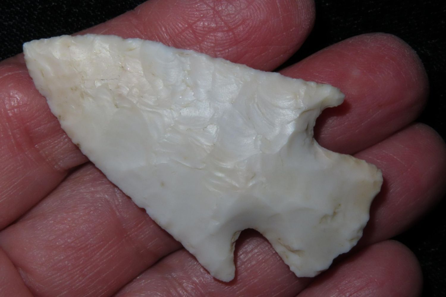 2 1/8" Apple Creek made from a translucent material with nice ears. From the James and Joe George Collection. Joe George was an avid collector and finder of Native American artifacts in the greater St Louis Missouri area. Joe collected his entire life. Upon his passing he turned his collection over to his son James. James was also a very avid collector. He enjoyed walking various waterways and attending artifact shows. James is looking forward to passing down his collection to the relic community for caretaking.