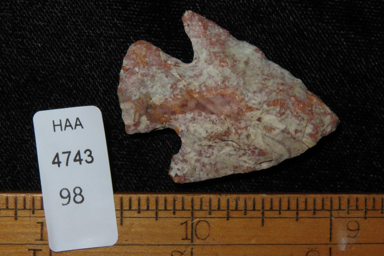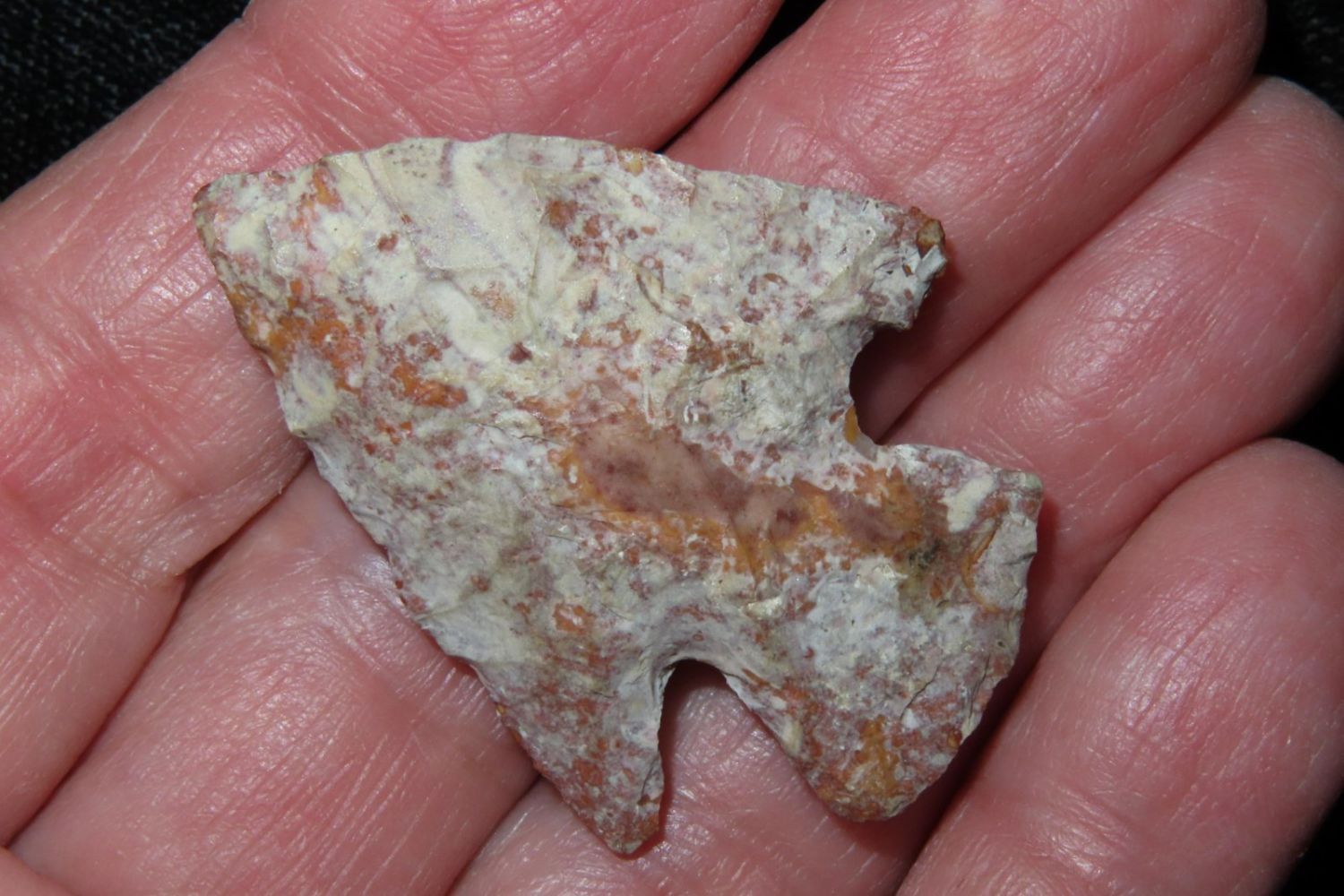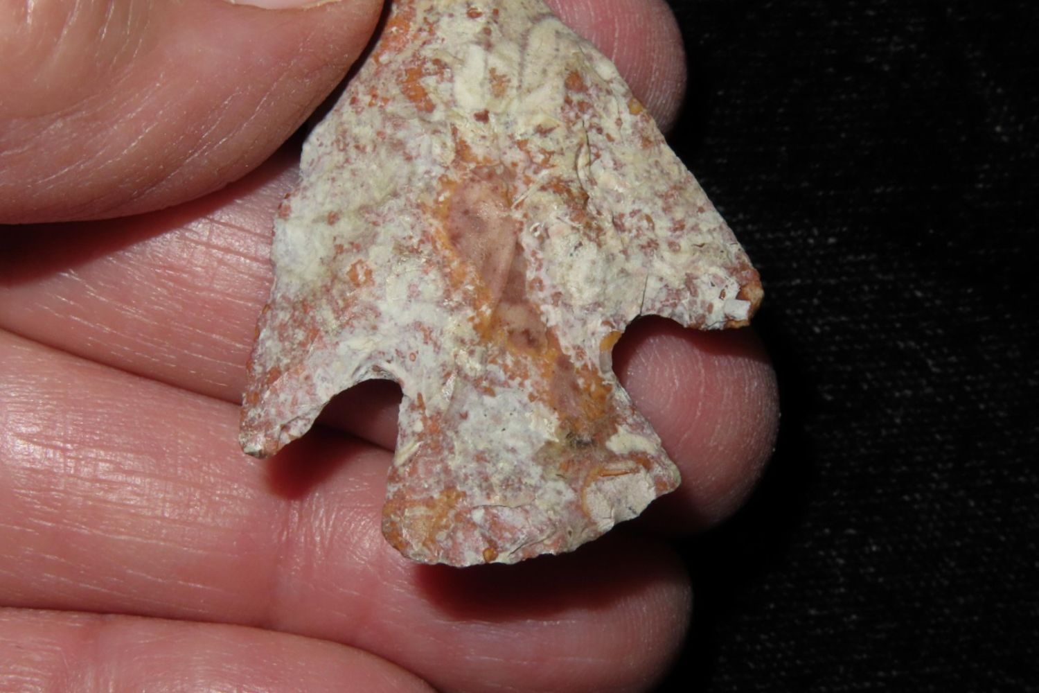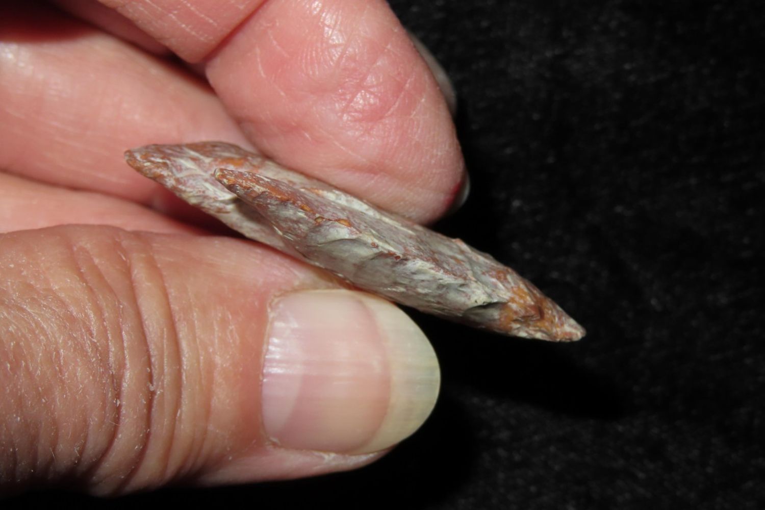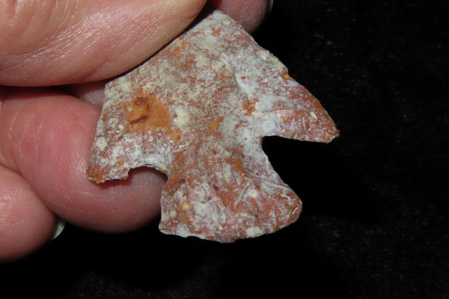 1 5/8" Apple Creek. From the James and Joe George Collection. Joe George was an avid collector and finder of Native American artifacts in the greater St Louis Missouri area. Joe collected his entire life. Upon his passing he turned his collection over to his son James. James was also a very avid collector. He enjoyed walking various waterways and attending artifact shows. James is looking forward to passing down his collection to the relic community for caretaking.