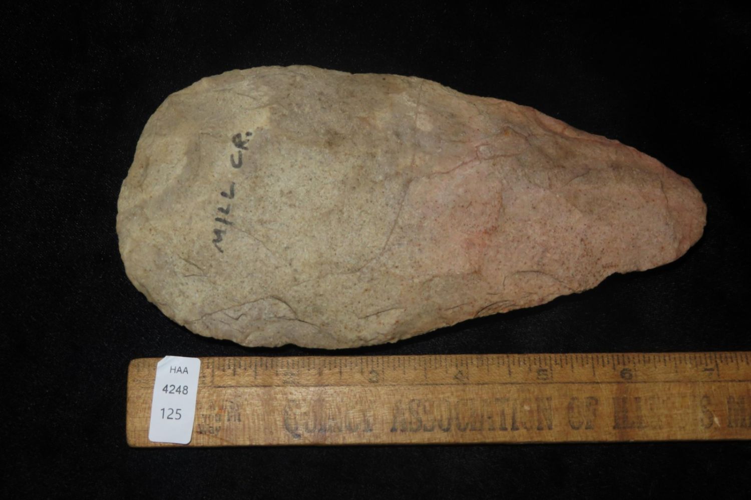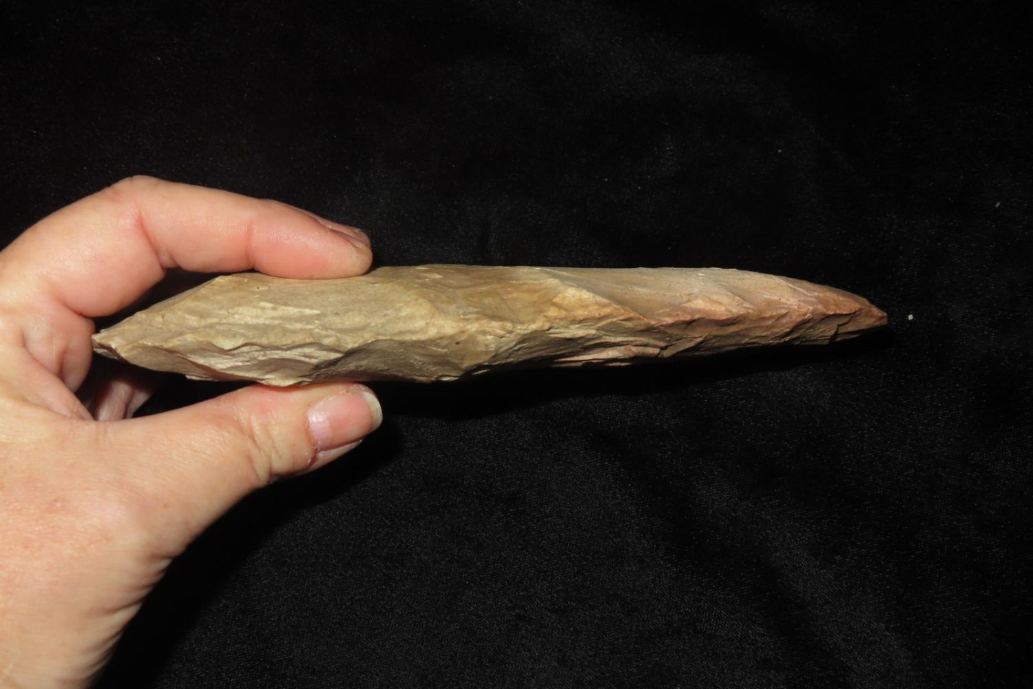 7" Spade made from Mill Creek flint found in Madison Co, Illinois.