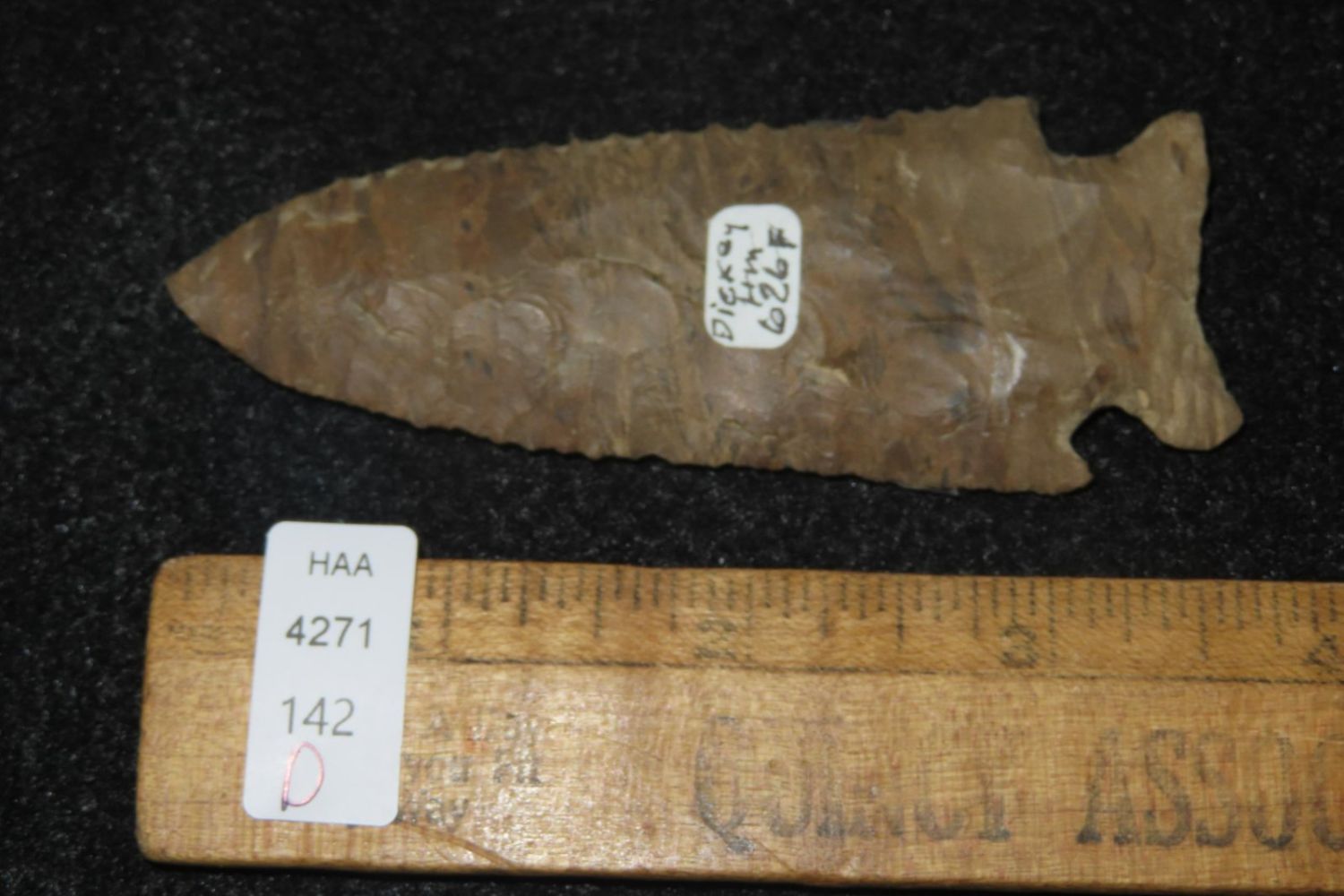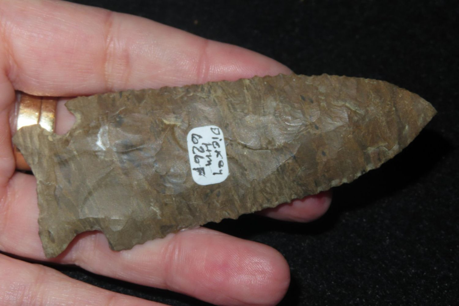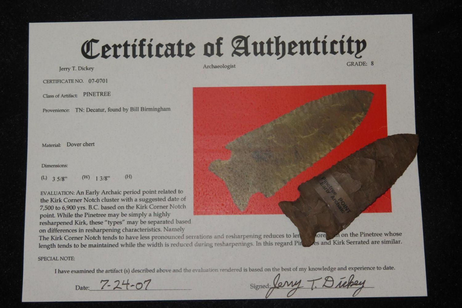 3 5/8″ Pinetree, Dickey COA, Decatur, found by Bill Birmingham, Dover Chert