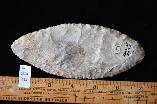 5 13/16" Paleo Early Ovoid Knife found in hancock Co, Illinois.