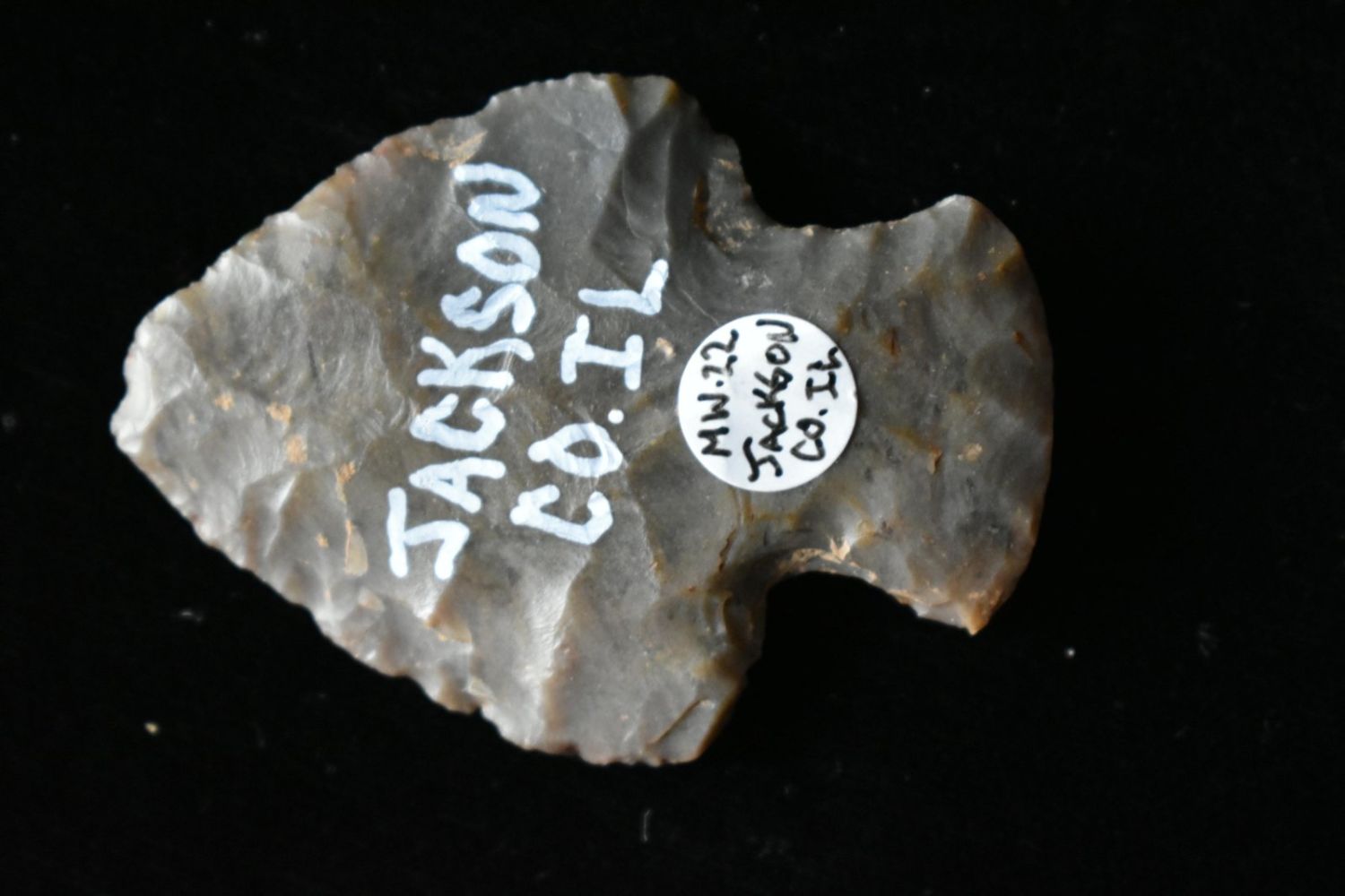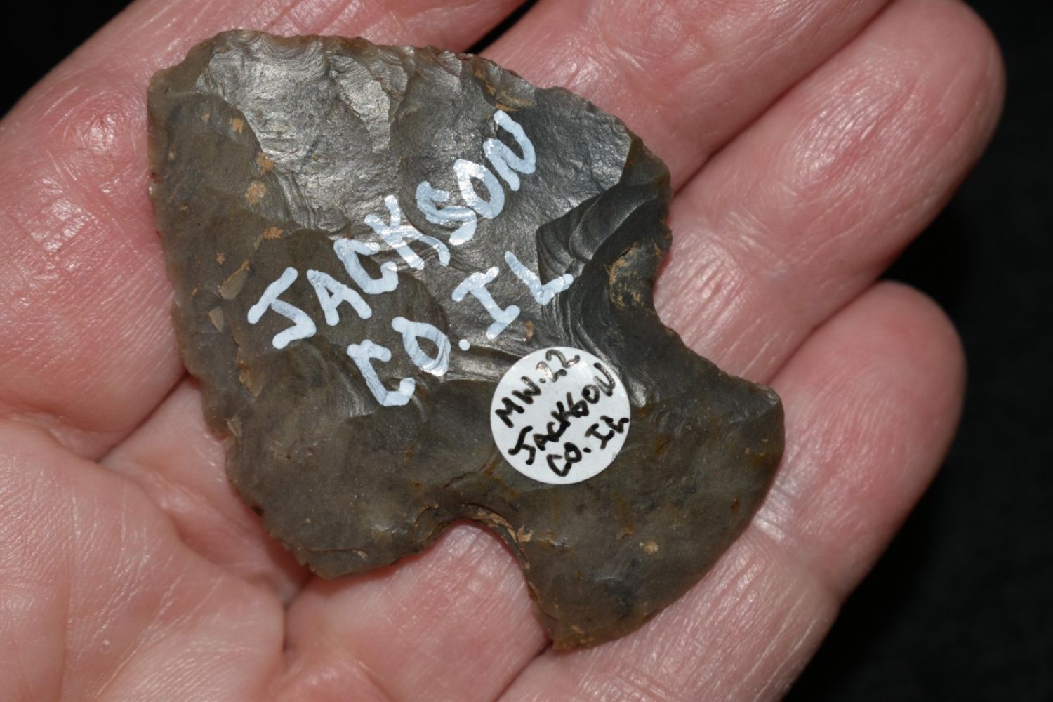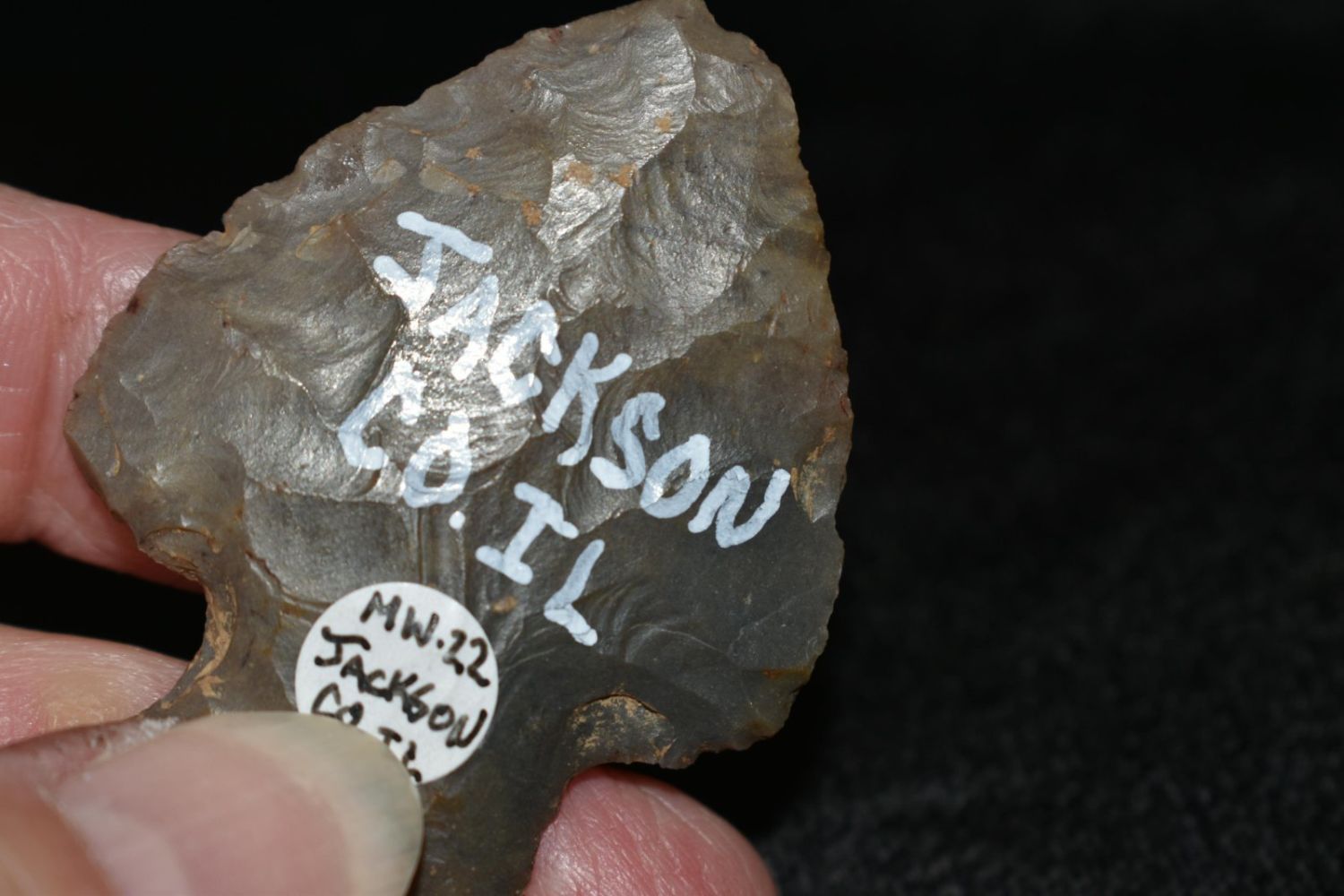 2″ Hopewell Cobden, Jackson co, Illinois. Ex Ray Fraser, This is a Classic example of concentric ringed cobden dongola from southern Illinois and was found by Charles Grizzell. All of Charles material was found on the sites along the Big Muddy and Little Muddy rivers in Jackson and Williamson Counties in Illinois.