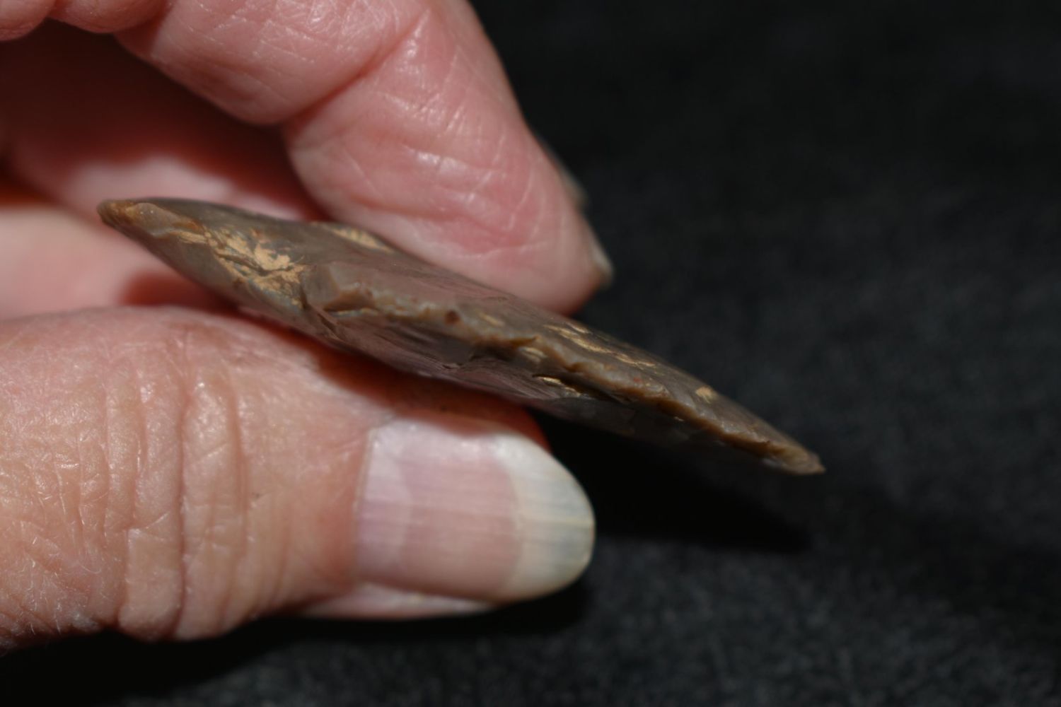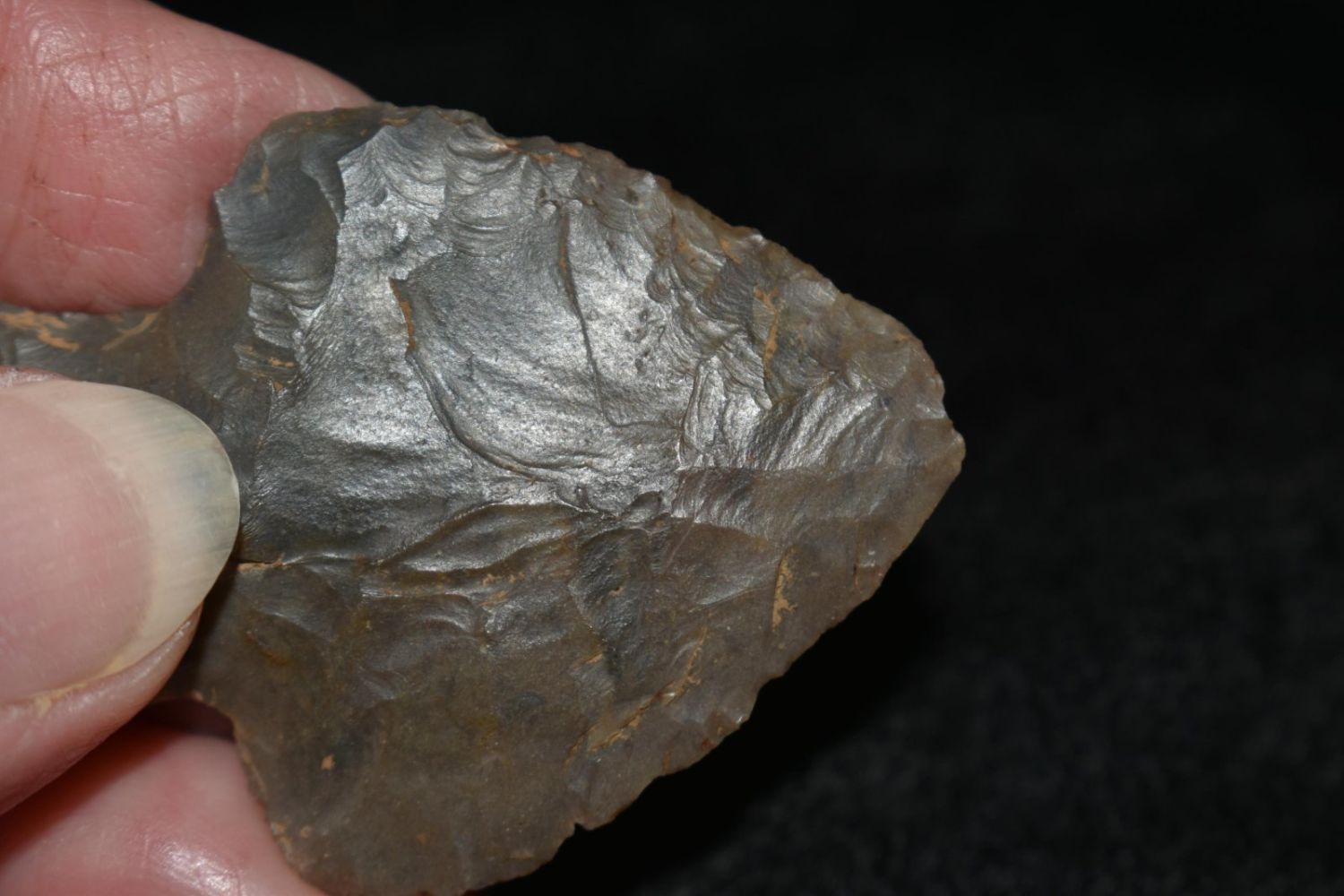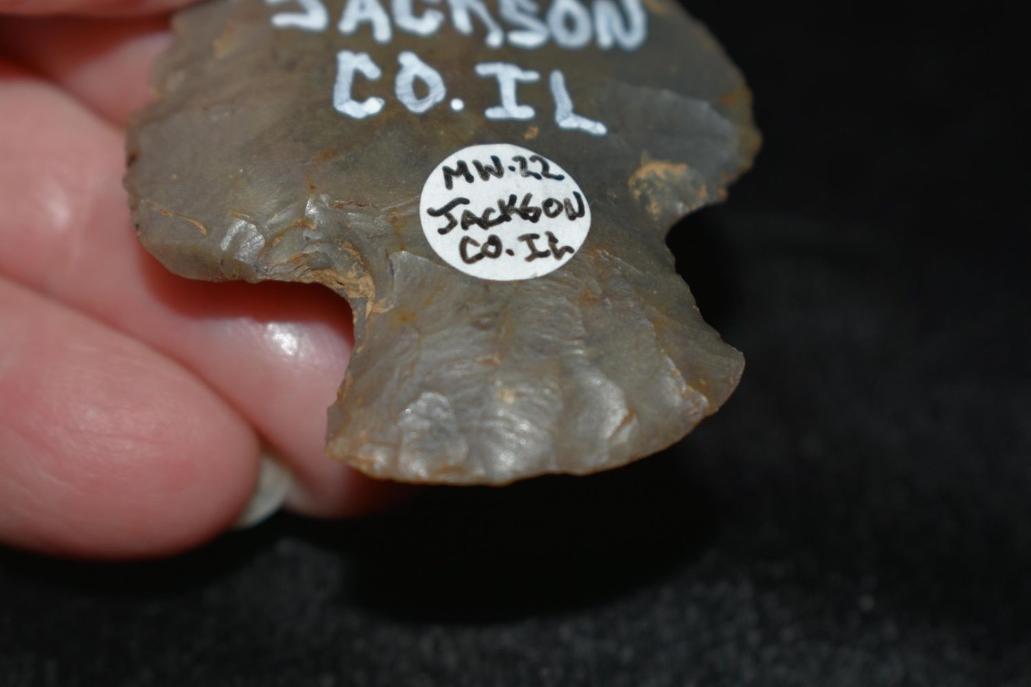 2″ Hopewell Cobden, Jackson co, Illinois. Ex Ray Fraser, This is a Classic example of concentric ringed cobden dongola from southern Illinois and was found by Charles Grizzell. All of Charles material was found on the sites along the Big Muddy and Little Muddy rivers in Jackson and Williamson Counties in Illinois.