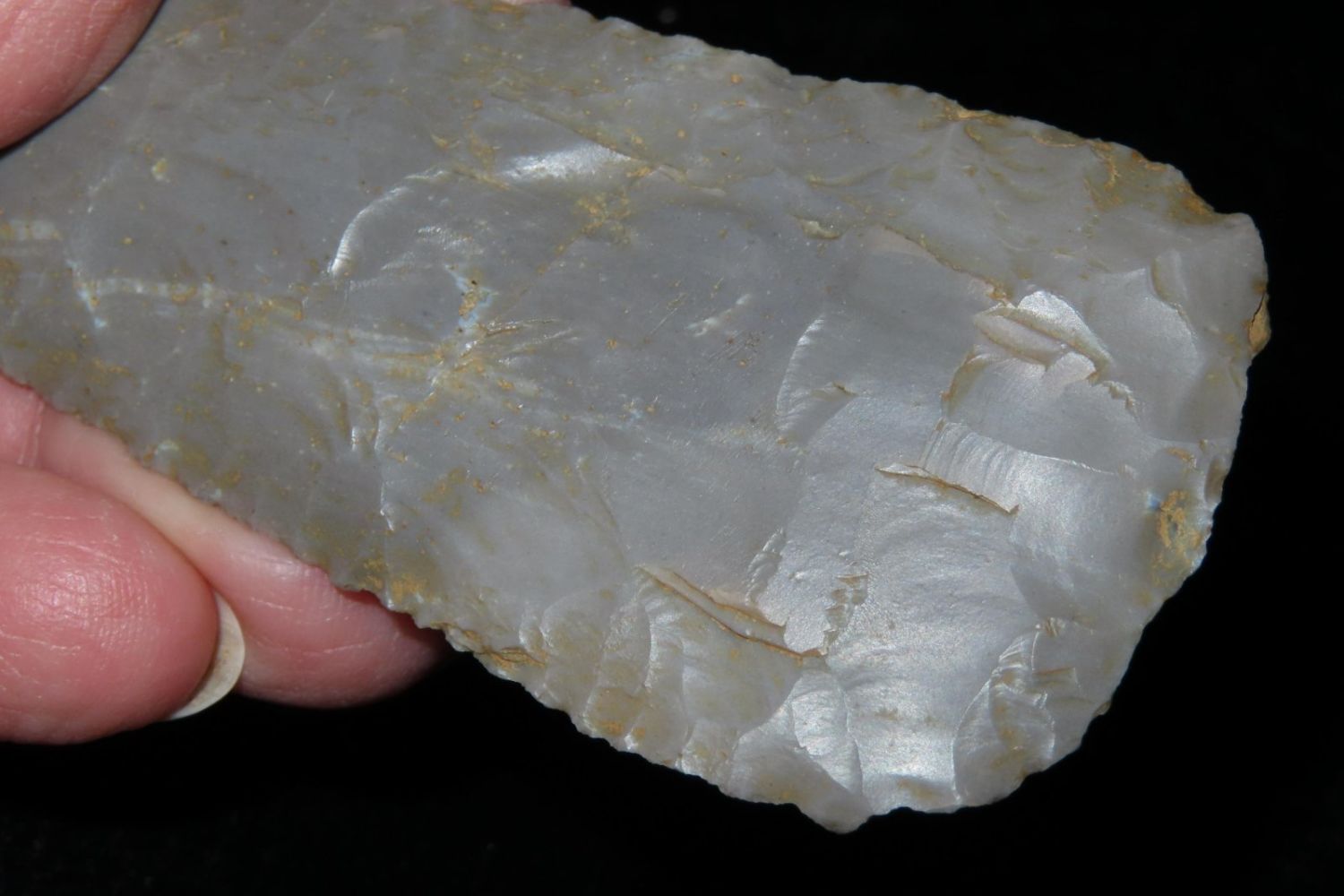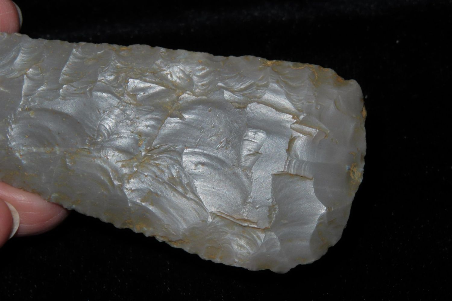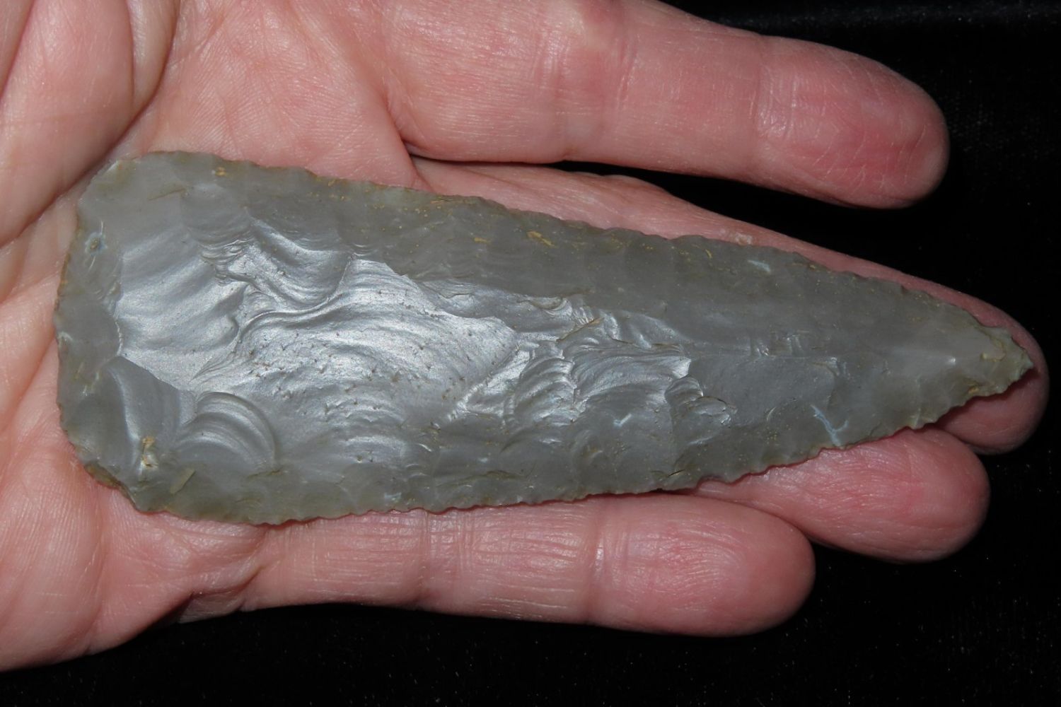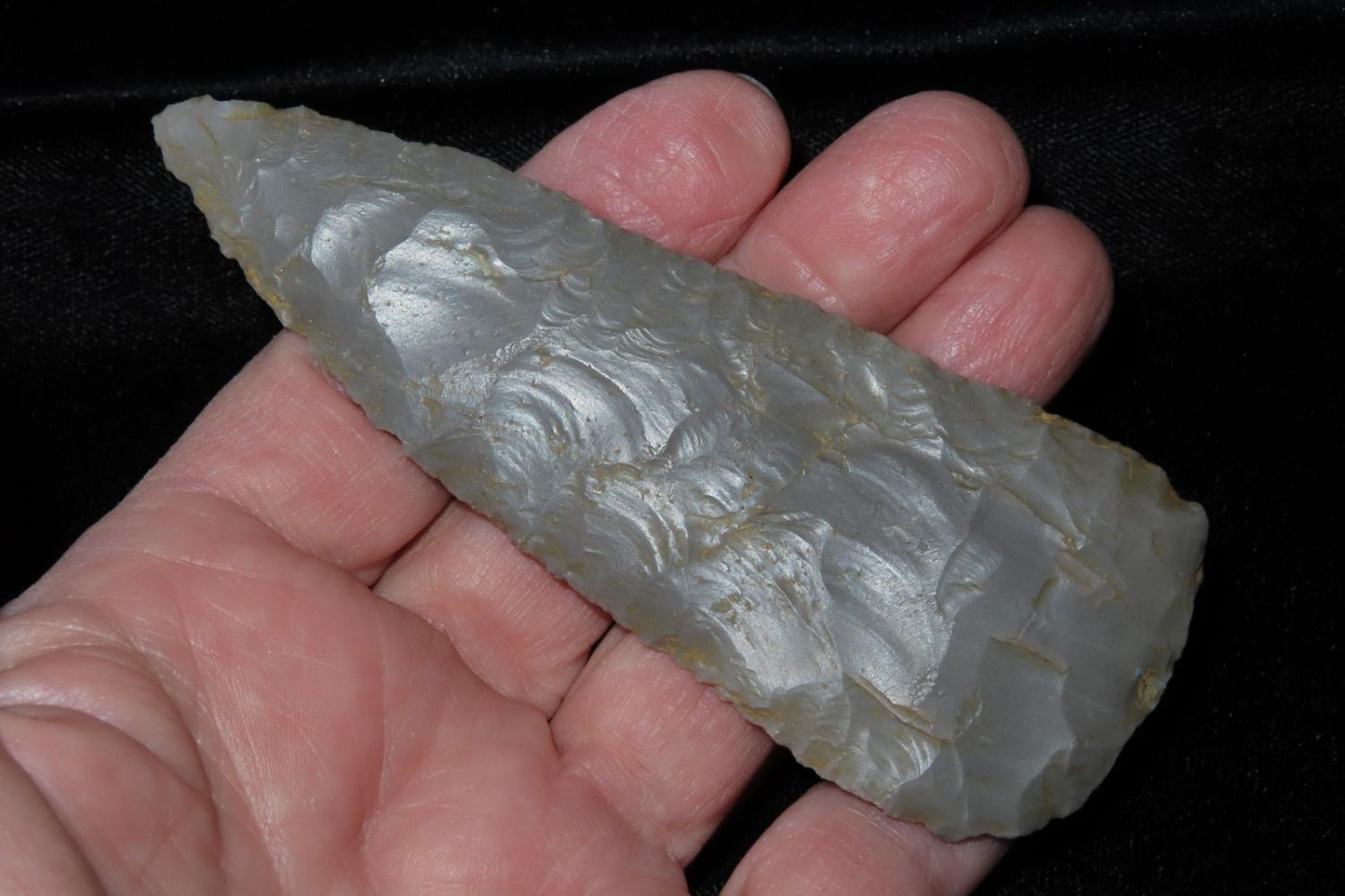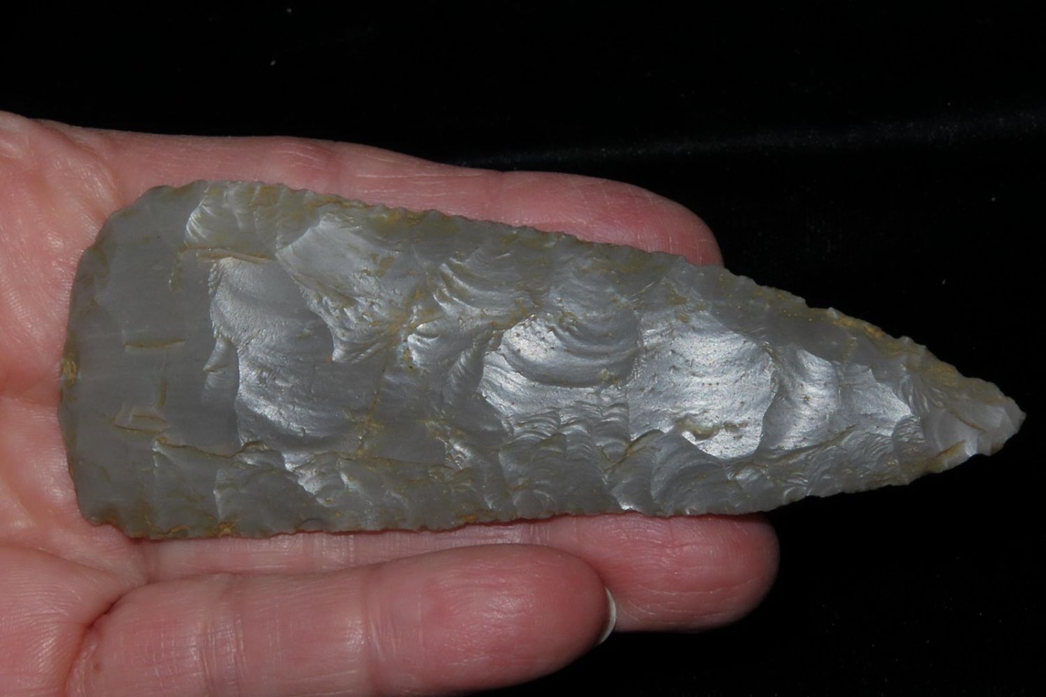 4″ Cobbs blade made of Hornstone flint from Gibson Co, Indiana.