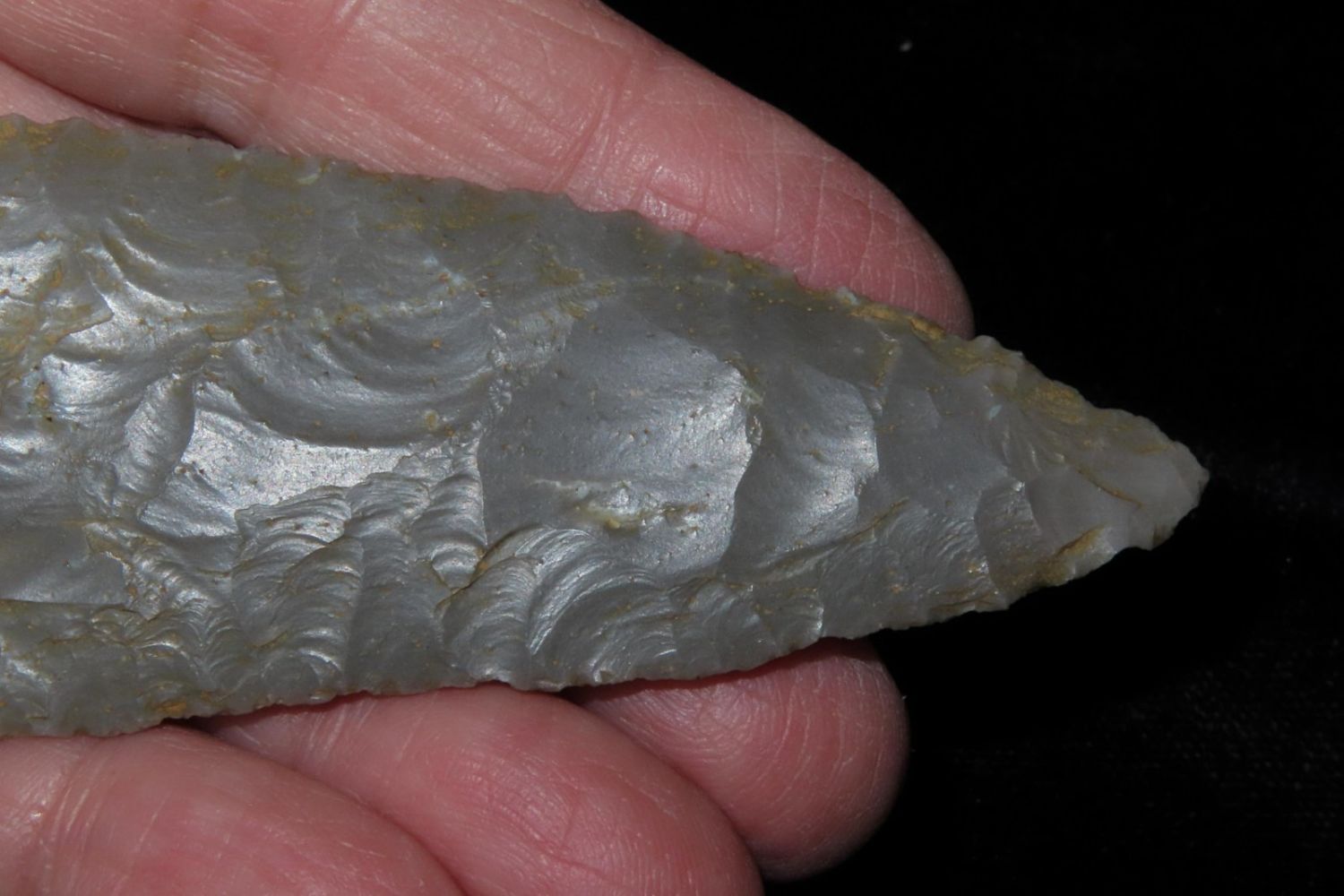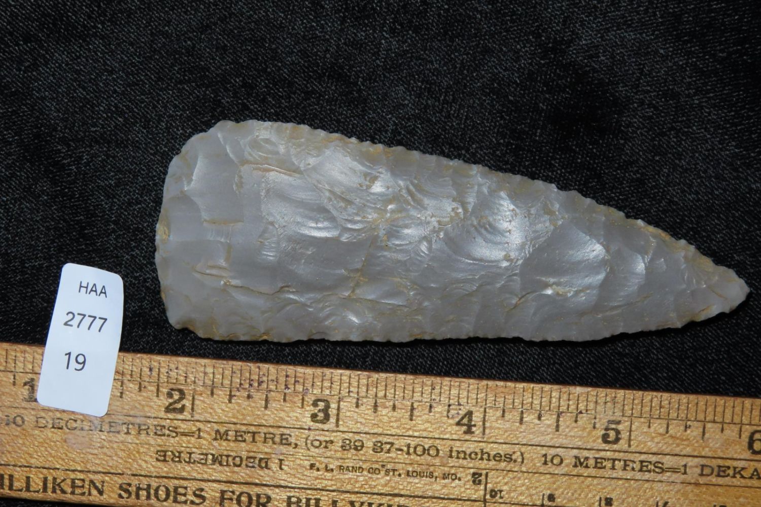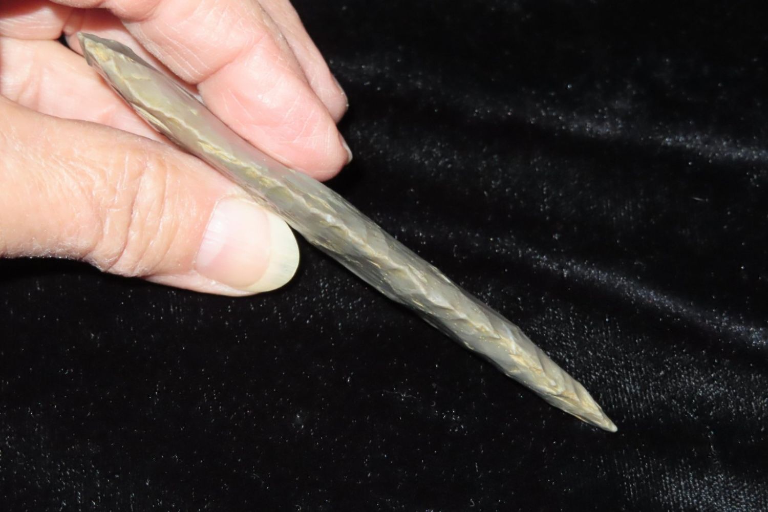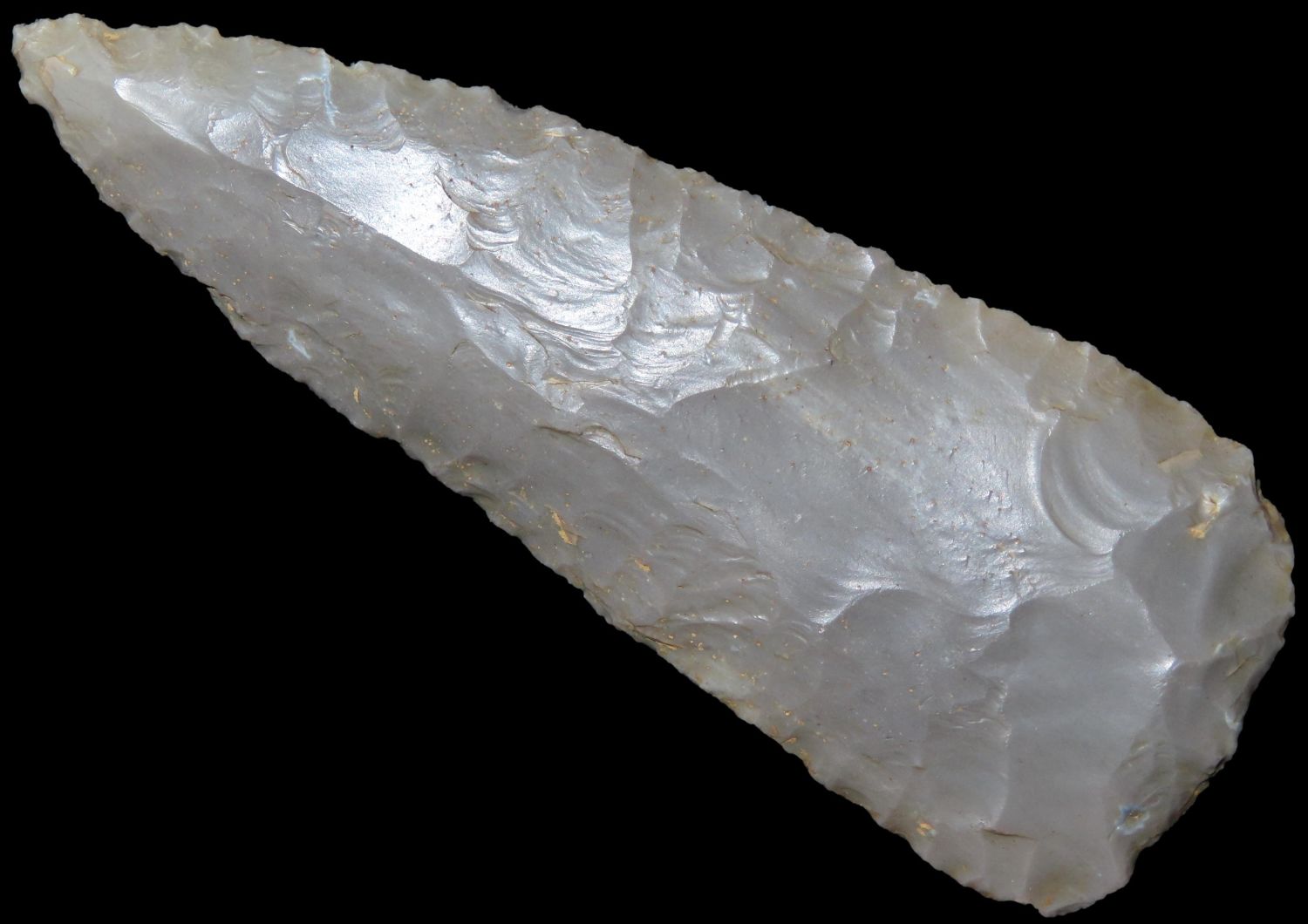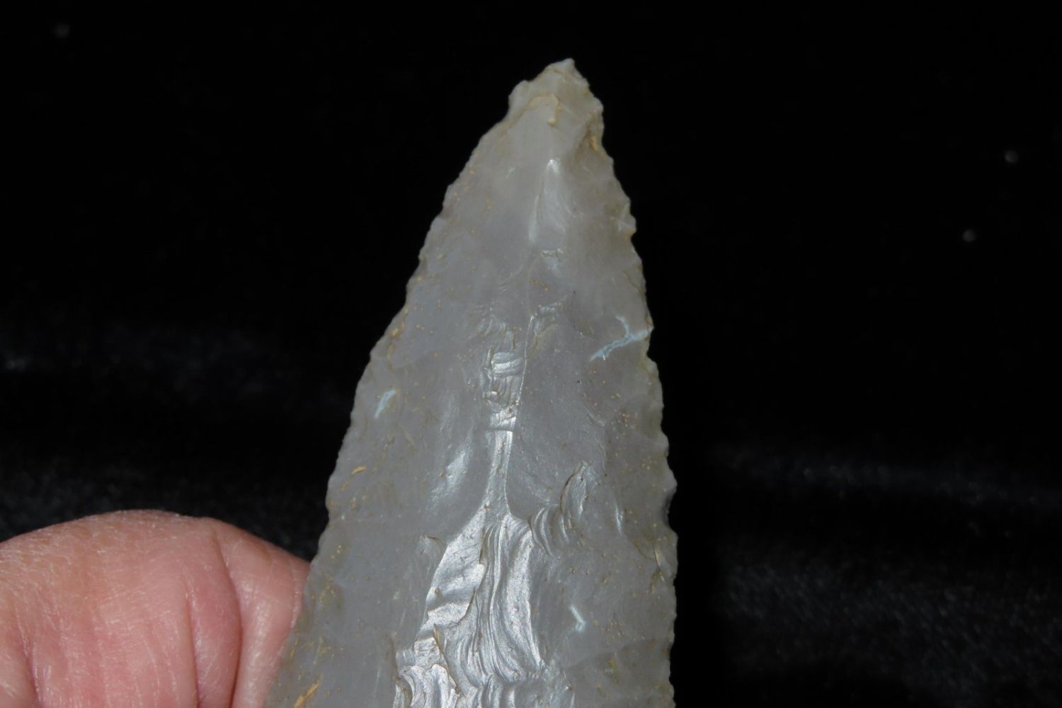 4″ Cobbs blade made of Hornstone flint from Gibson Co, Indiana.
