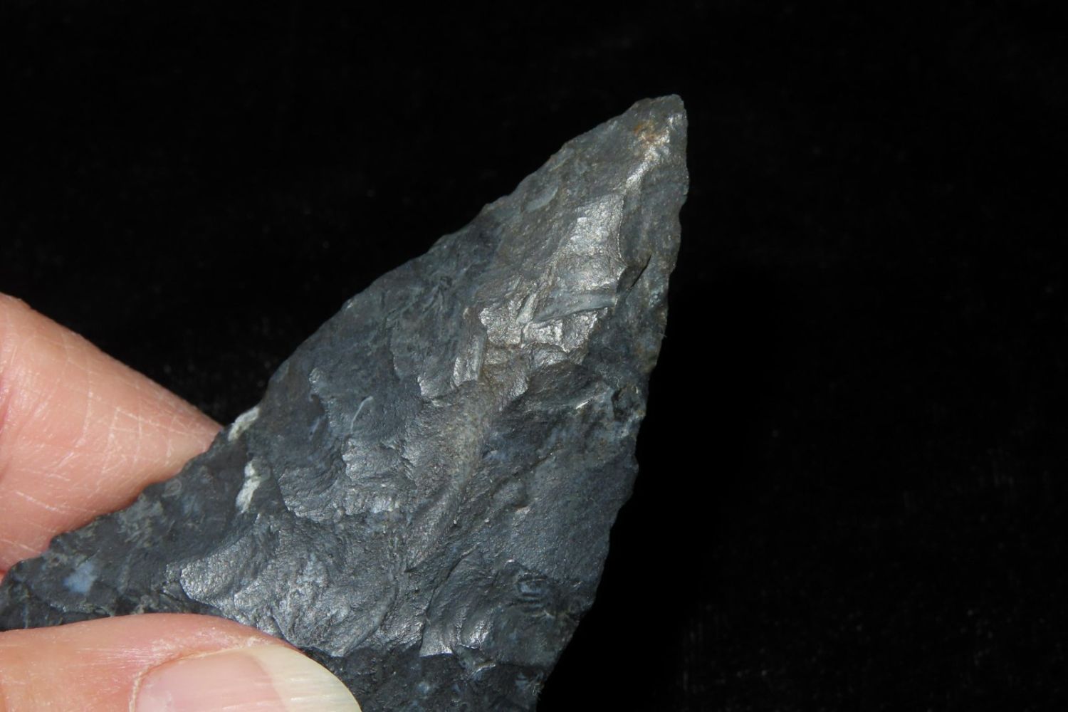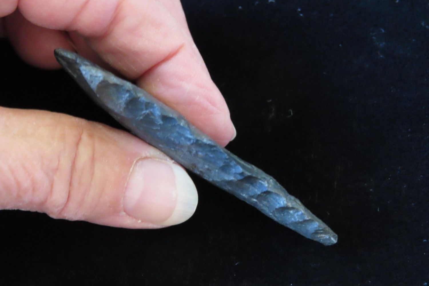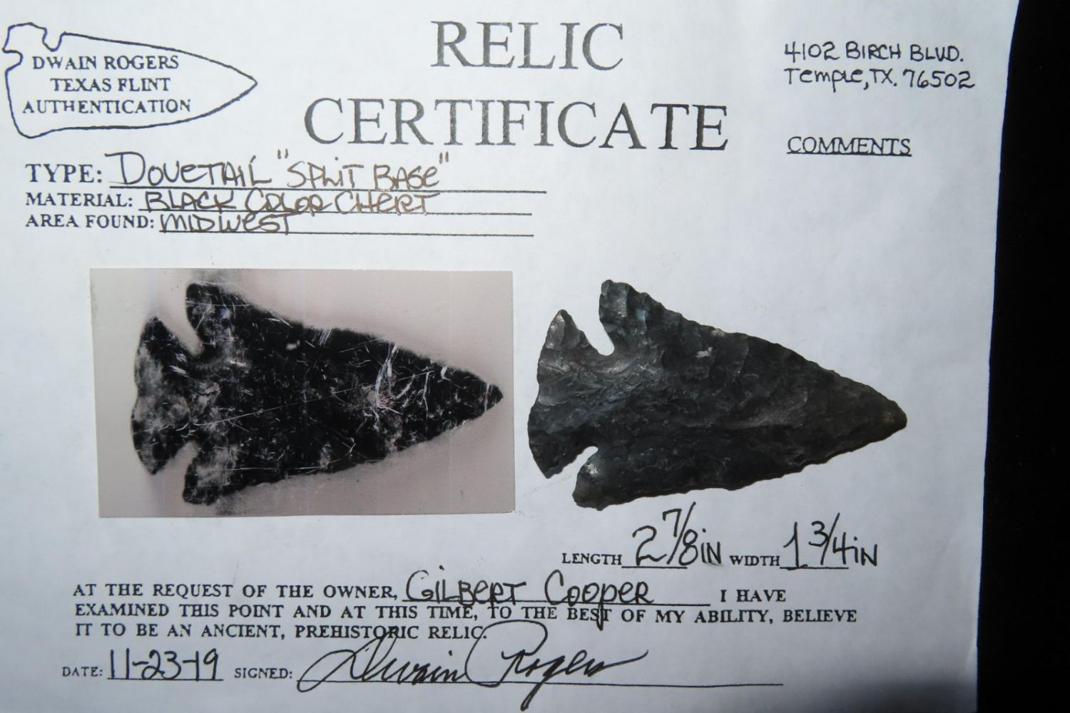 2 7/8″ Dovetail Rogers COA made of Black chalky chert found in Indiana.