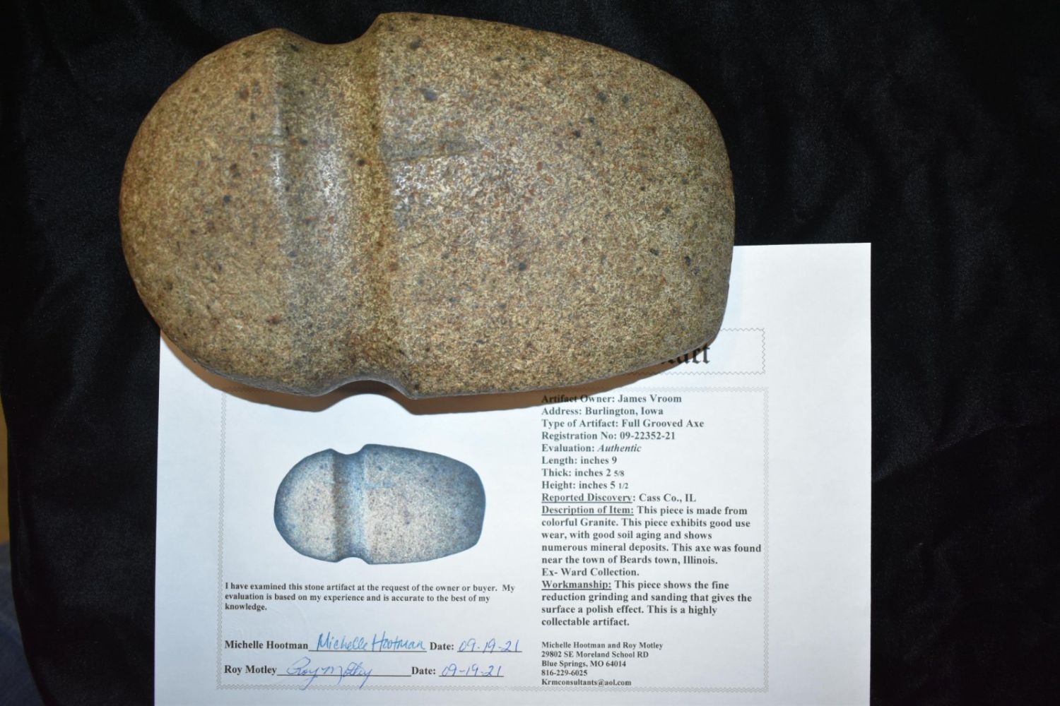 9″ Full Grooved Axe Motley COA found in Cass Co, Illinois.