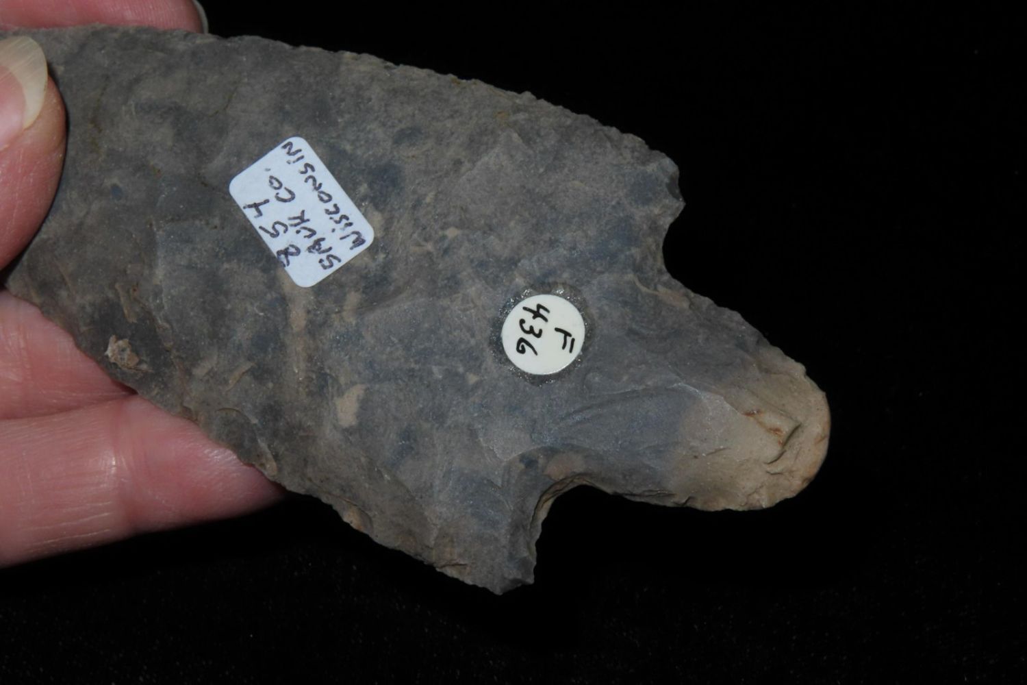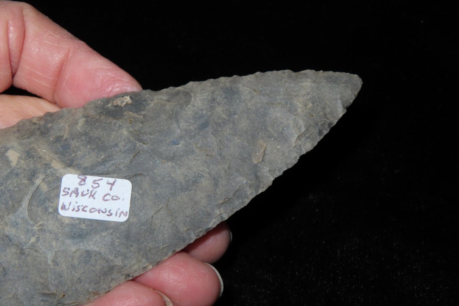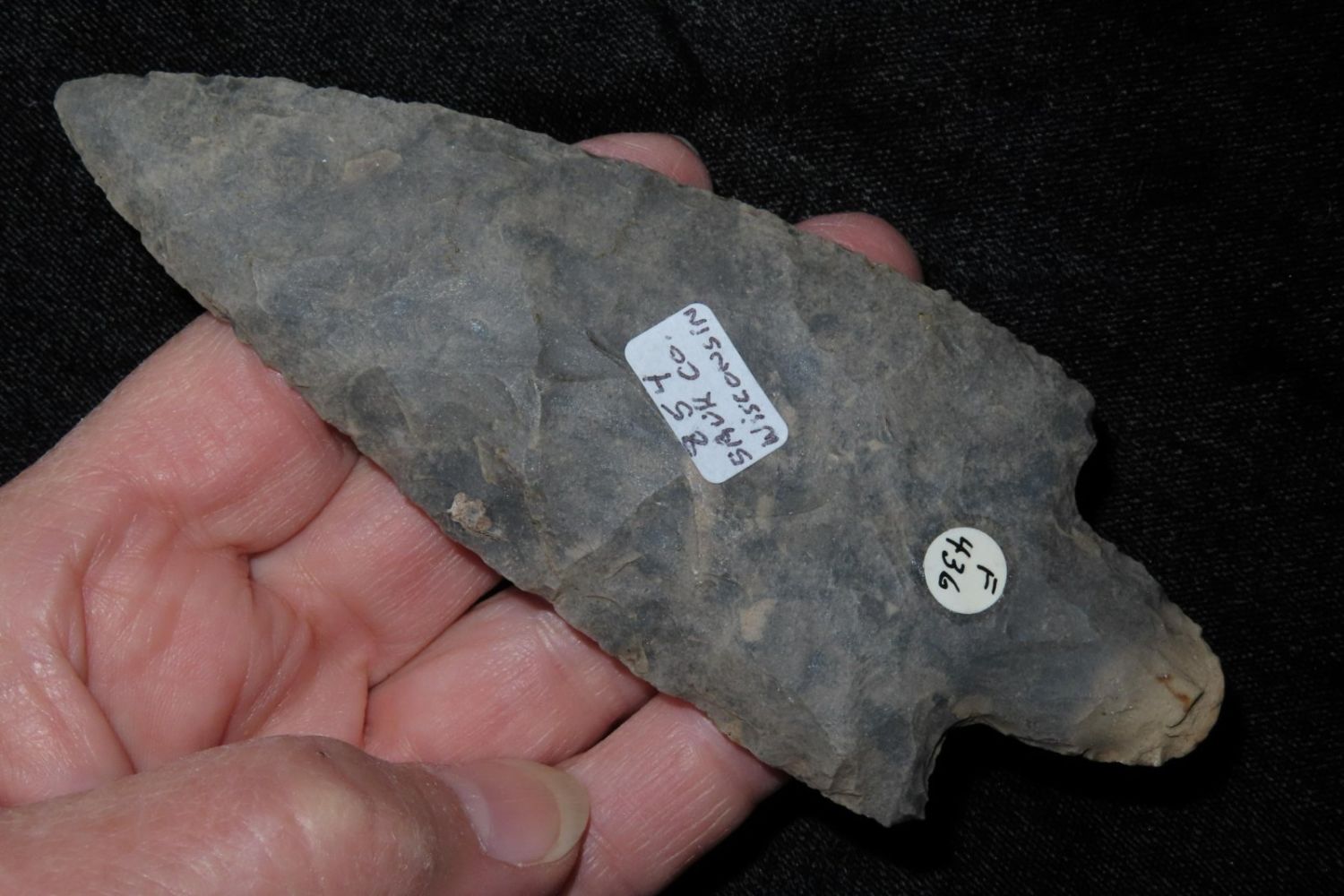 5″ Waubesa made of gray chalky chert found in Sauk Co, Wisconsin.