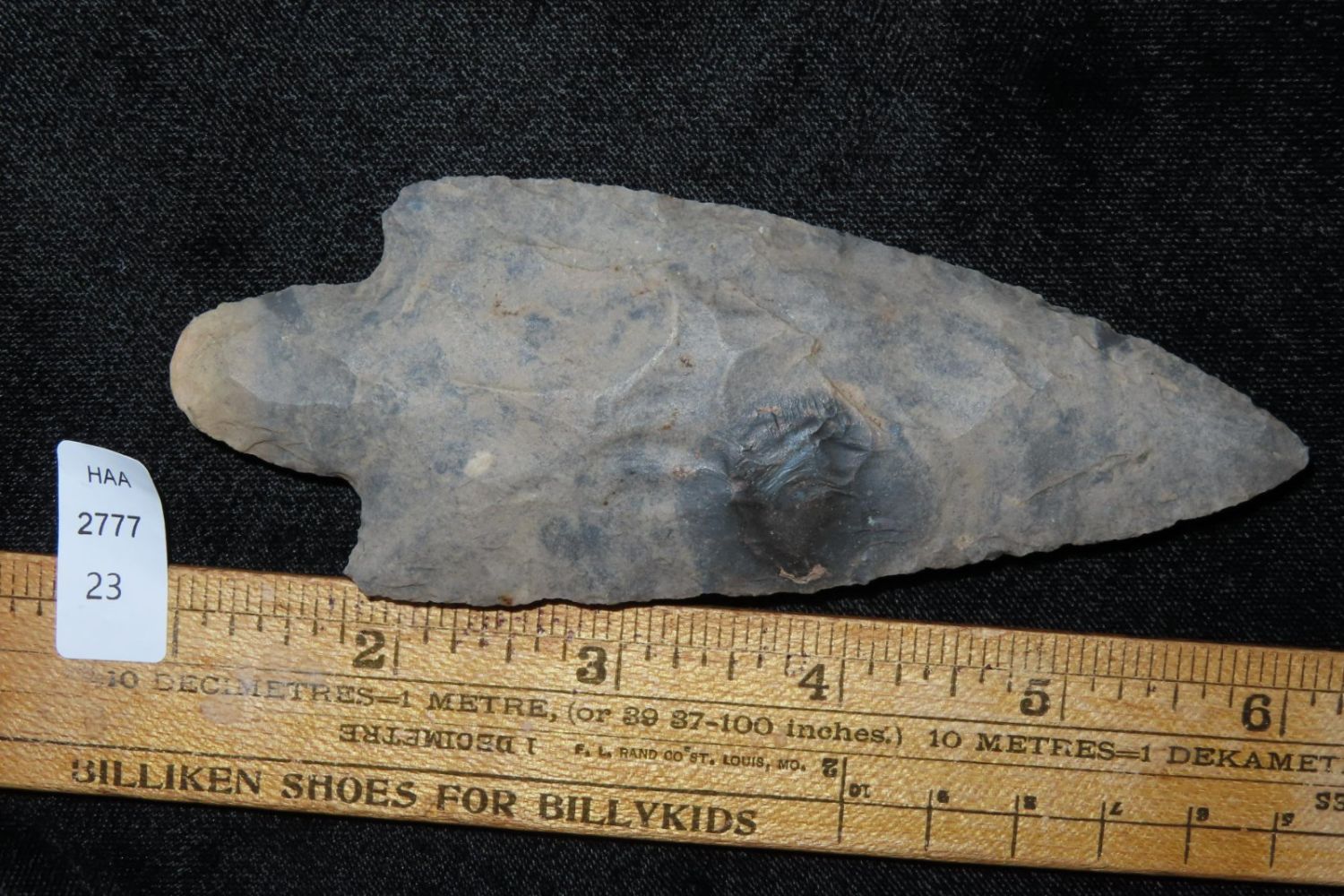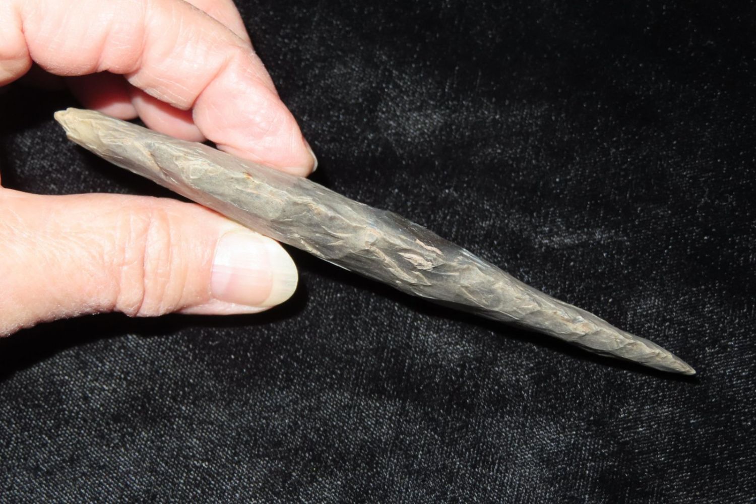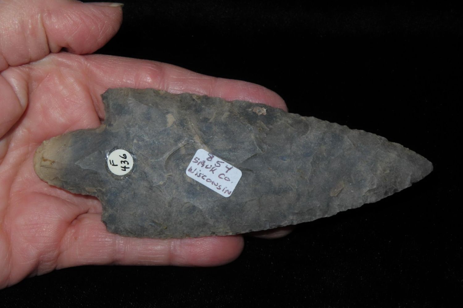 5″ Waubesa made of gray chalky chert found in Sauk Co, Wisconsin.