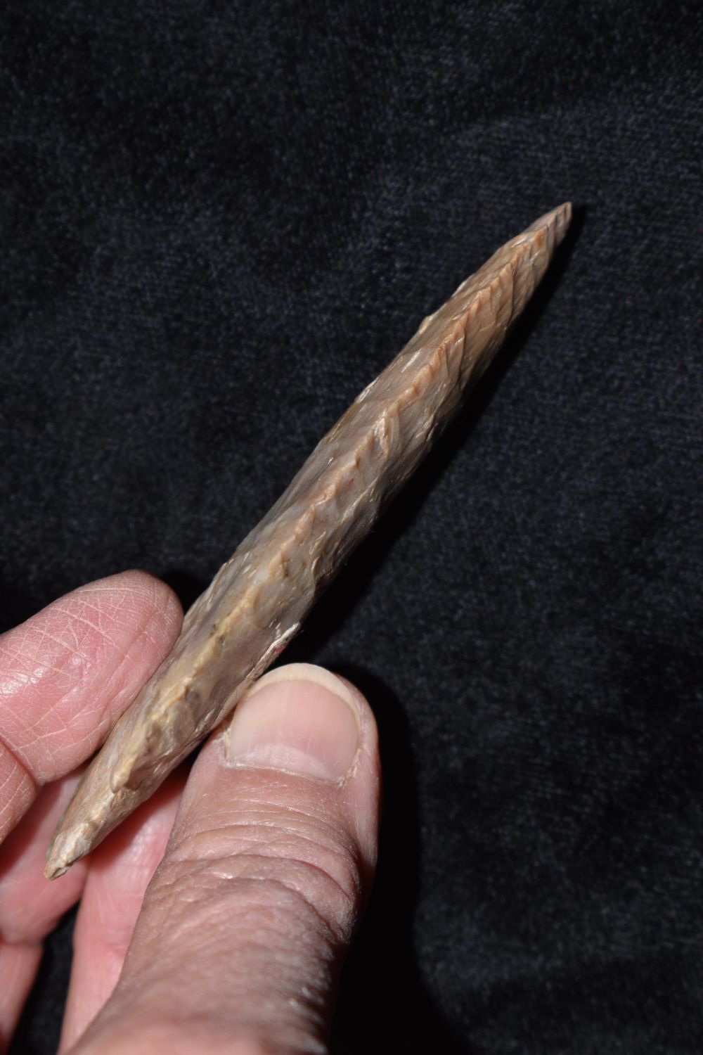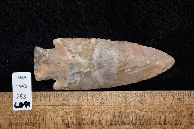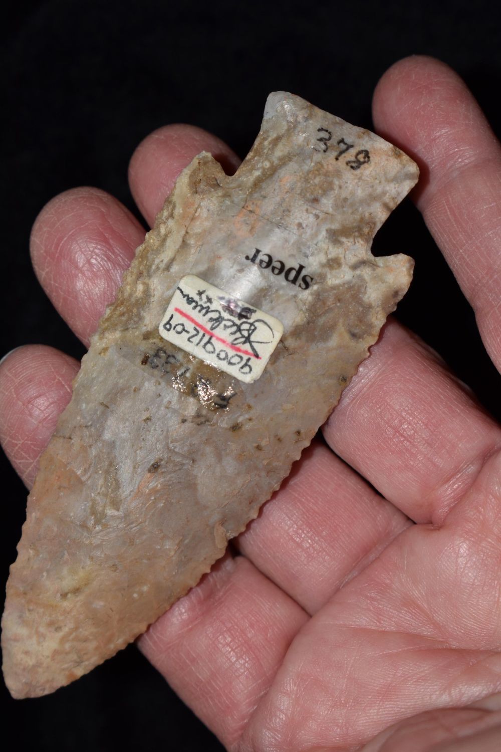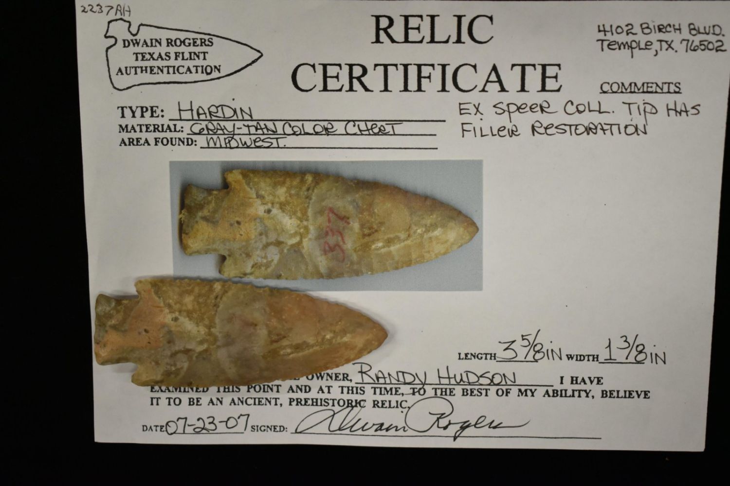 3 5/8" Hardin Rogers COA Ex Steve Lee, Ex Michael Speer 3/16" has been restored on the tip. Found in the Midwest.