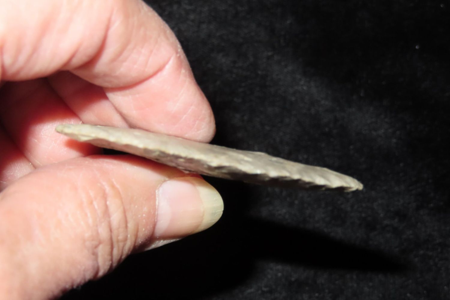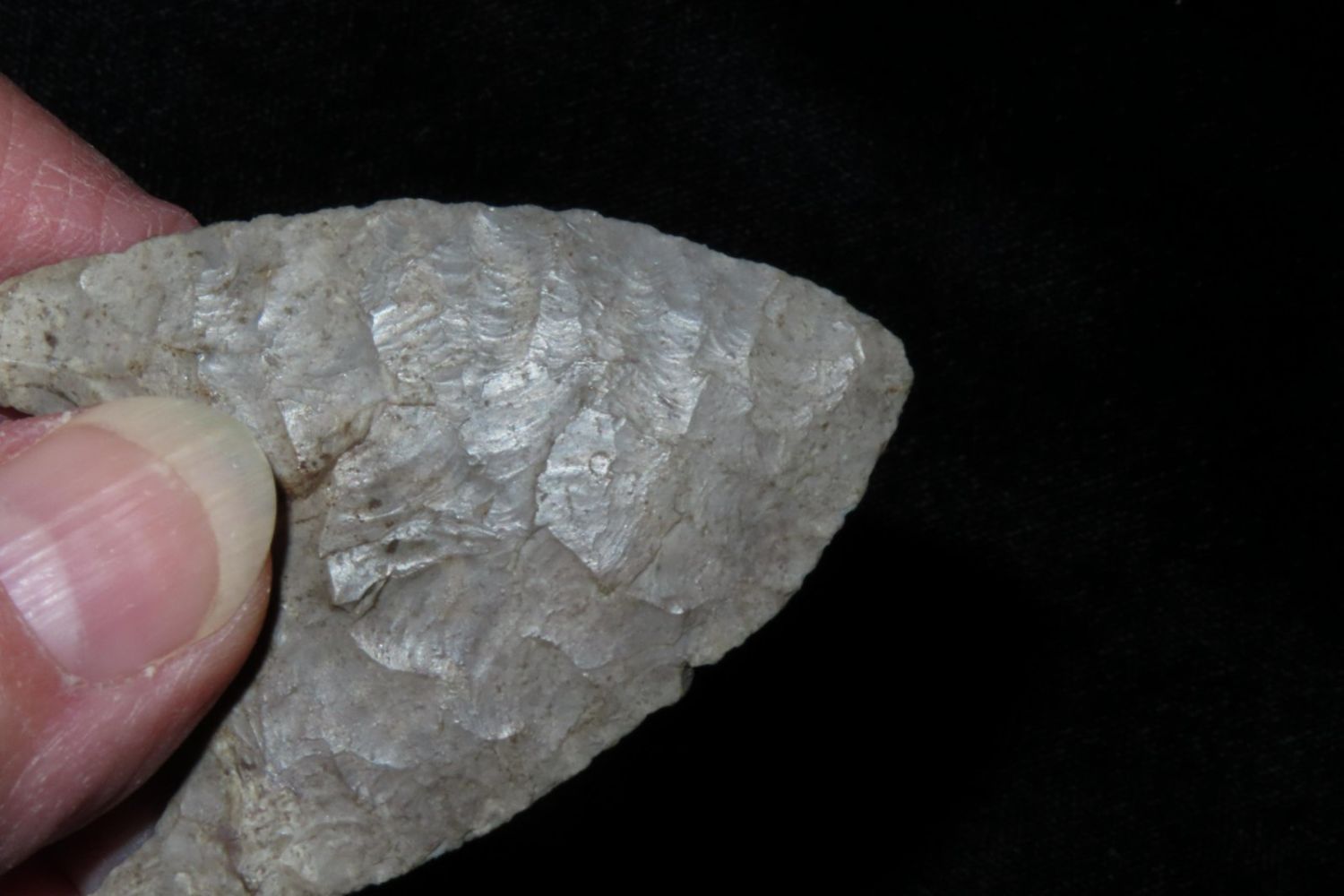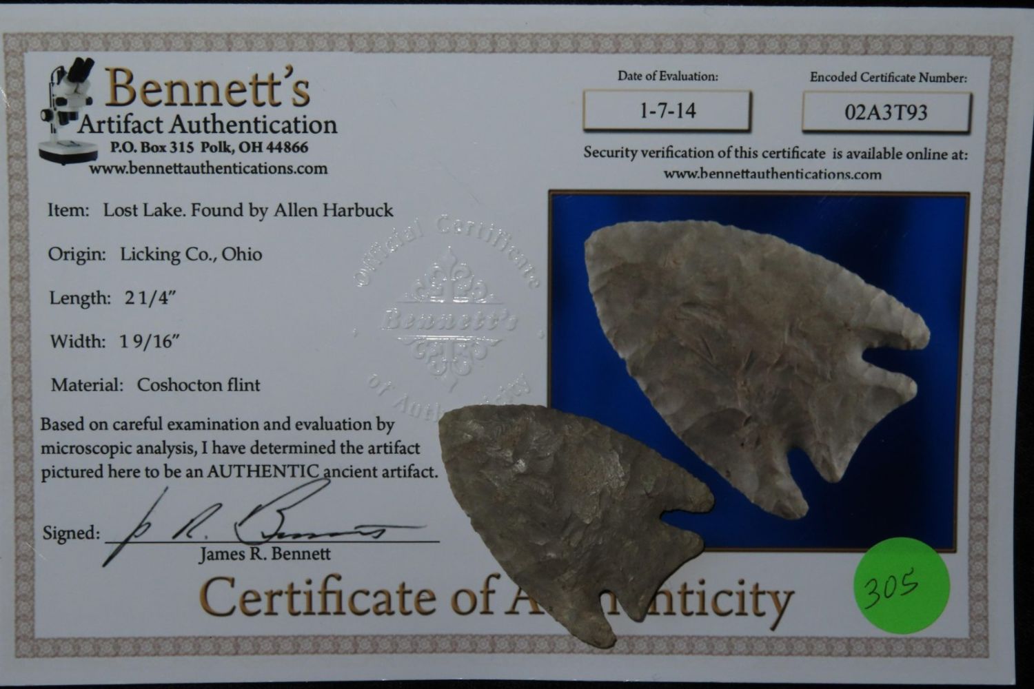 2 1/4″ Lost Lake Bennett COA made of Coshocton flint. Found by Allen Harbuck in Licking Co, Ohio.
