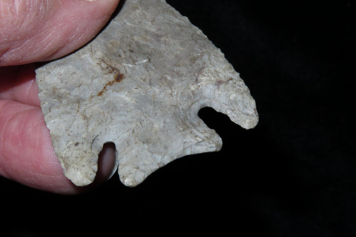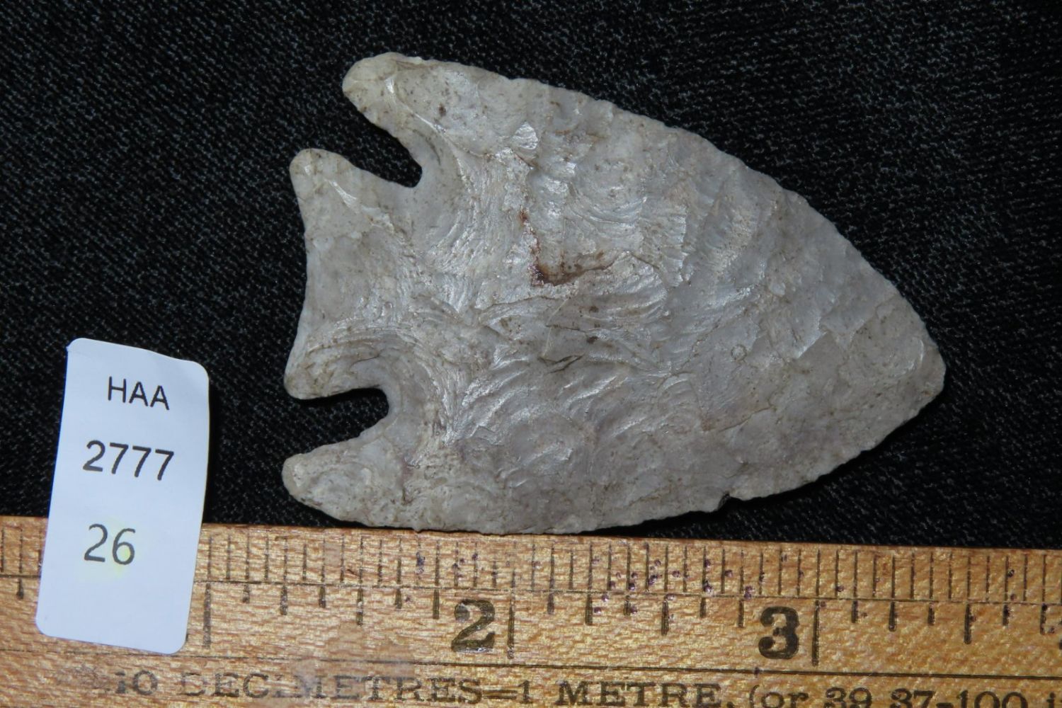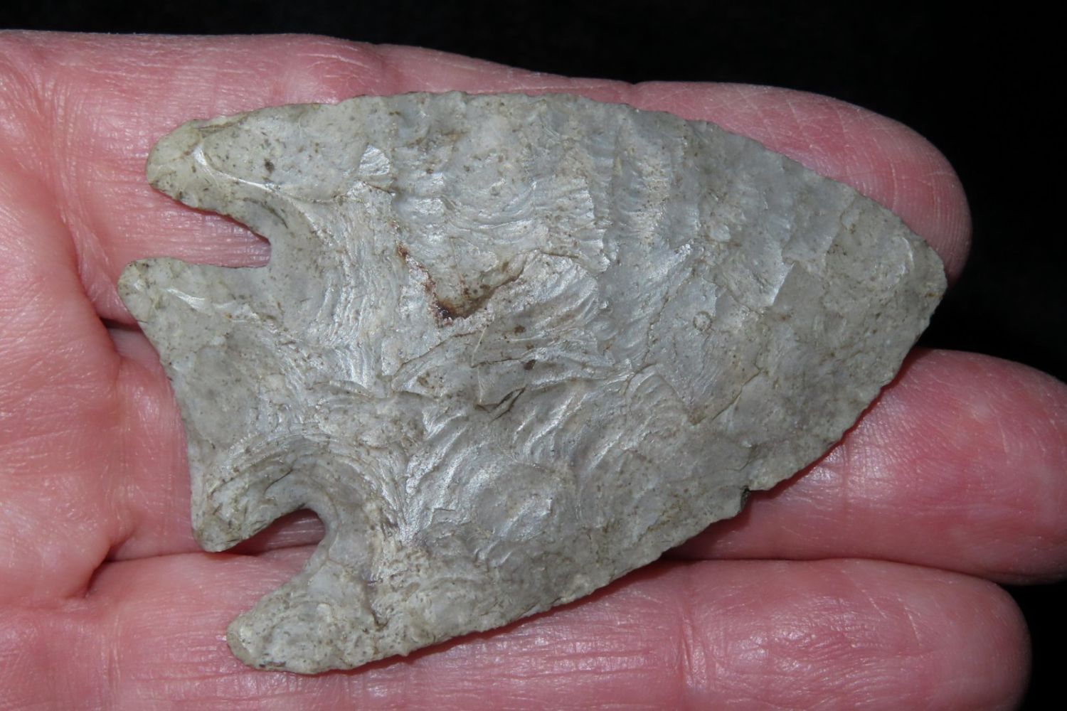 2 1/4″ Lost Lake Bennett COA made of Coshocton flint. Found by Allen Harbuck in Licking Co, Ohio.