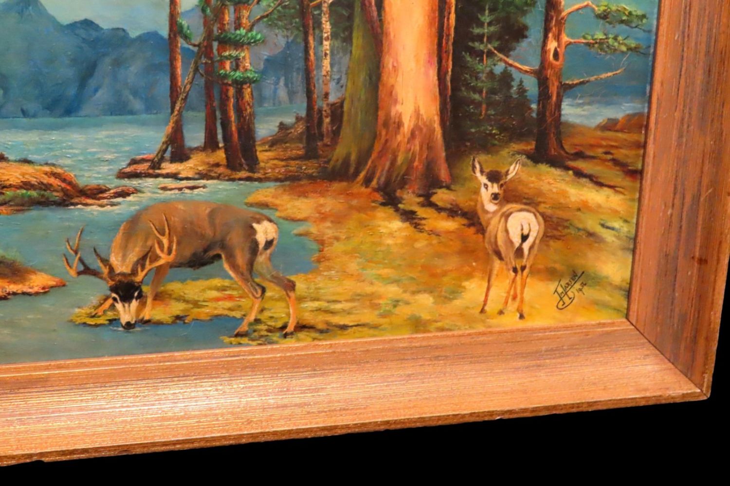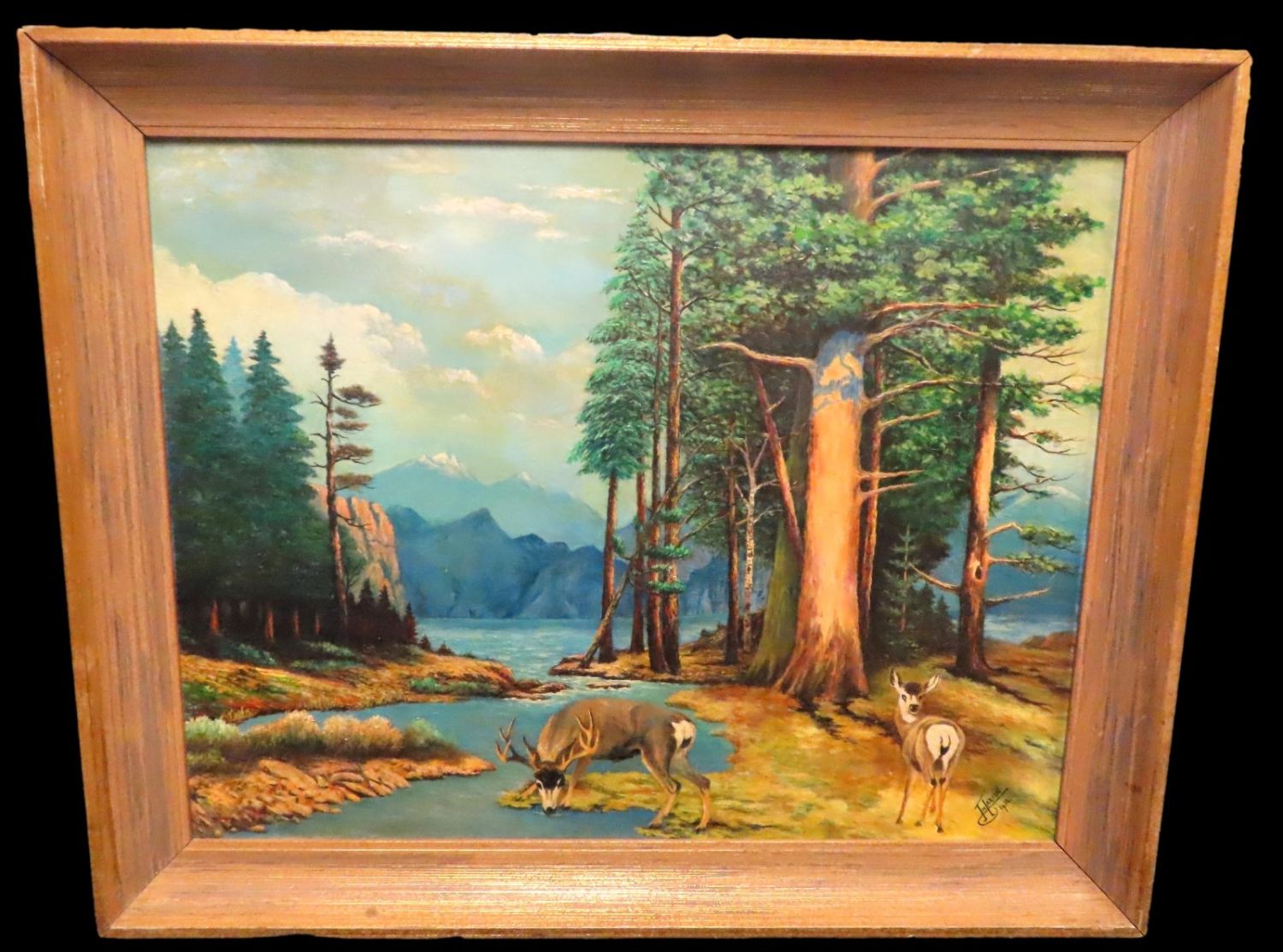 Original Acylic Painting by JM Larsen 1956- Mule Deer at the water 27×22 3/4"