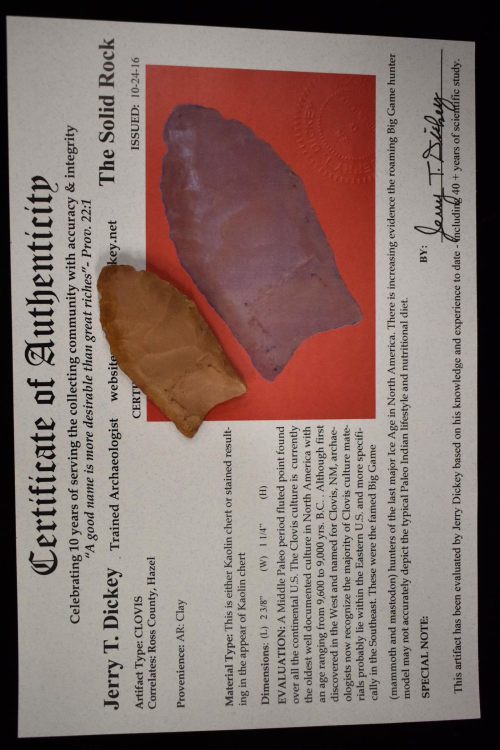 2 3/8" Clovis 2x COA Dickey/Howard COA’s made from Koalin flint. Found in Clay Co, Arkansas.
