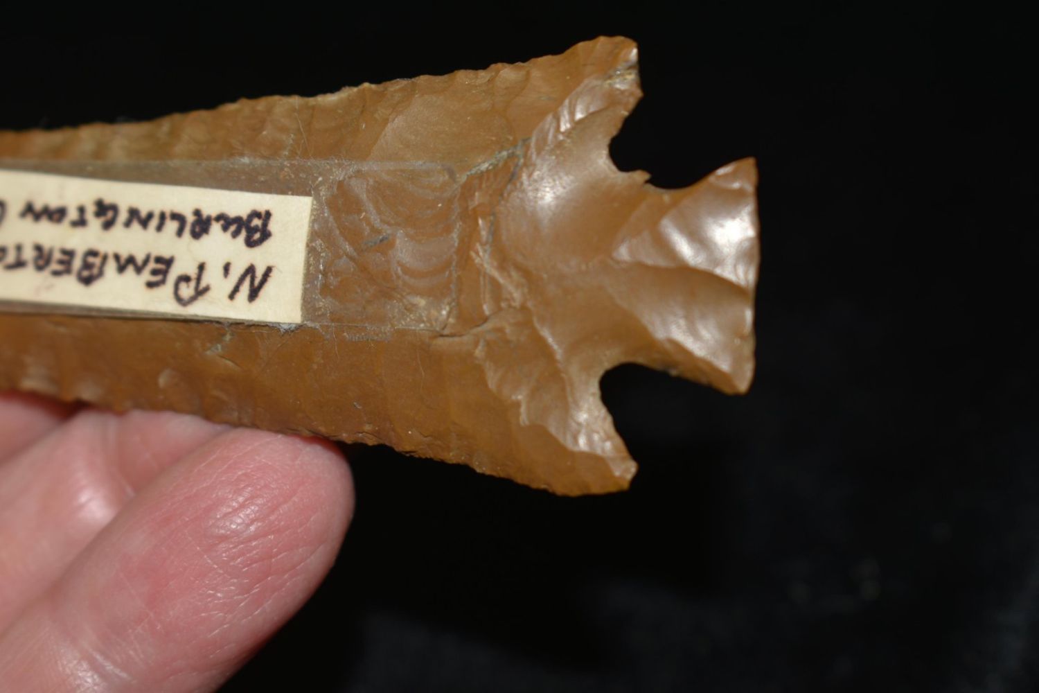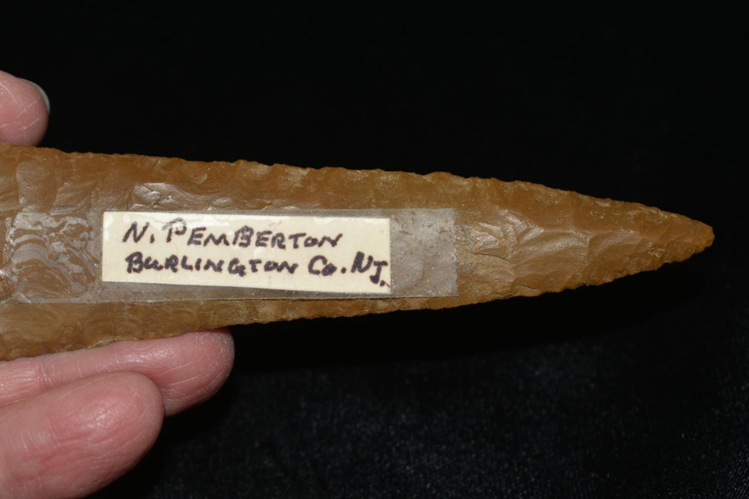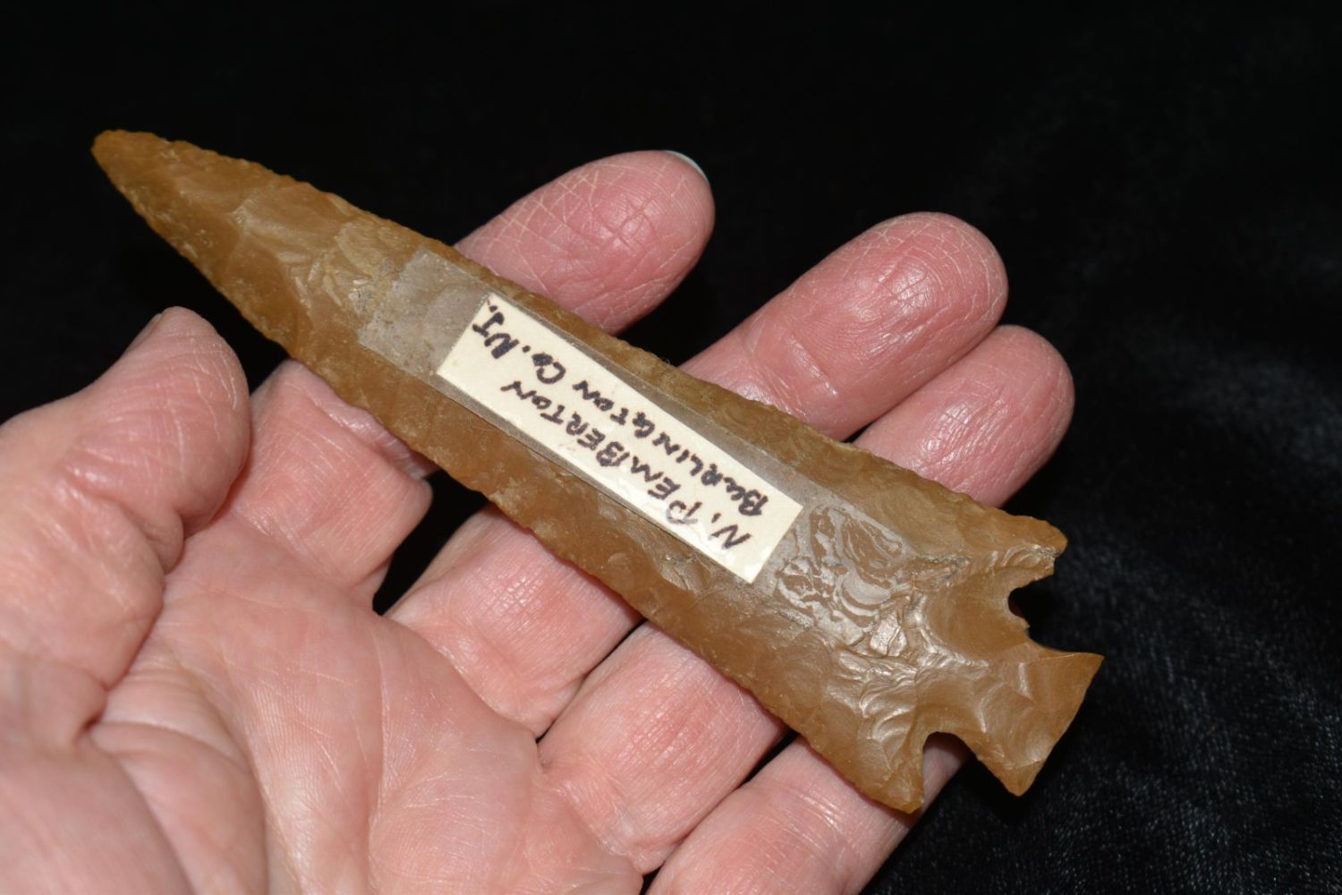 4 5/8" Jaspar Corner Notch N. Pemberton, Burlington Co. NJ Ex. Thunderbird Native American Museum NJ Dorothy Middleton Nelson was the founder, curator and proprietor of the Thunderbird Museum on Mt. Laurel Road during the 1930s through the 1960s. At one time it held one of the largest collections of Native American artifacts (nearly 50,000) in North America. Photo credit: "Dorothy’s Dream: Dorothy Middleton and her Indian Artifact Museum" by O. Kirk Spurr.Dorothy’s Dream, Dorothy Middelton and her Indian Artifact Museumby O. Kirk Spurr, PhDFor nearly fifty years Dorothy Middleton Nelson made her collection of Indian archaeological and ethnological materials–reputedly the fourth largest private collection in North America at the time.
