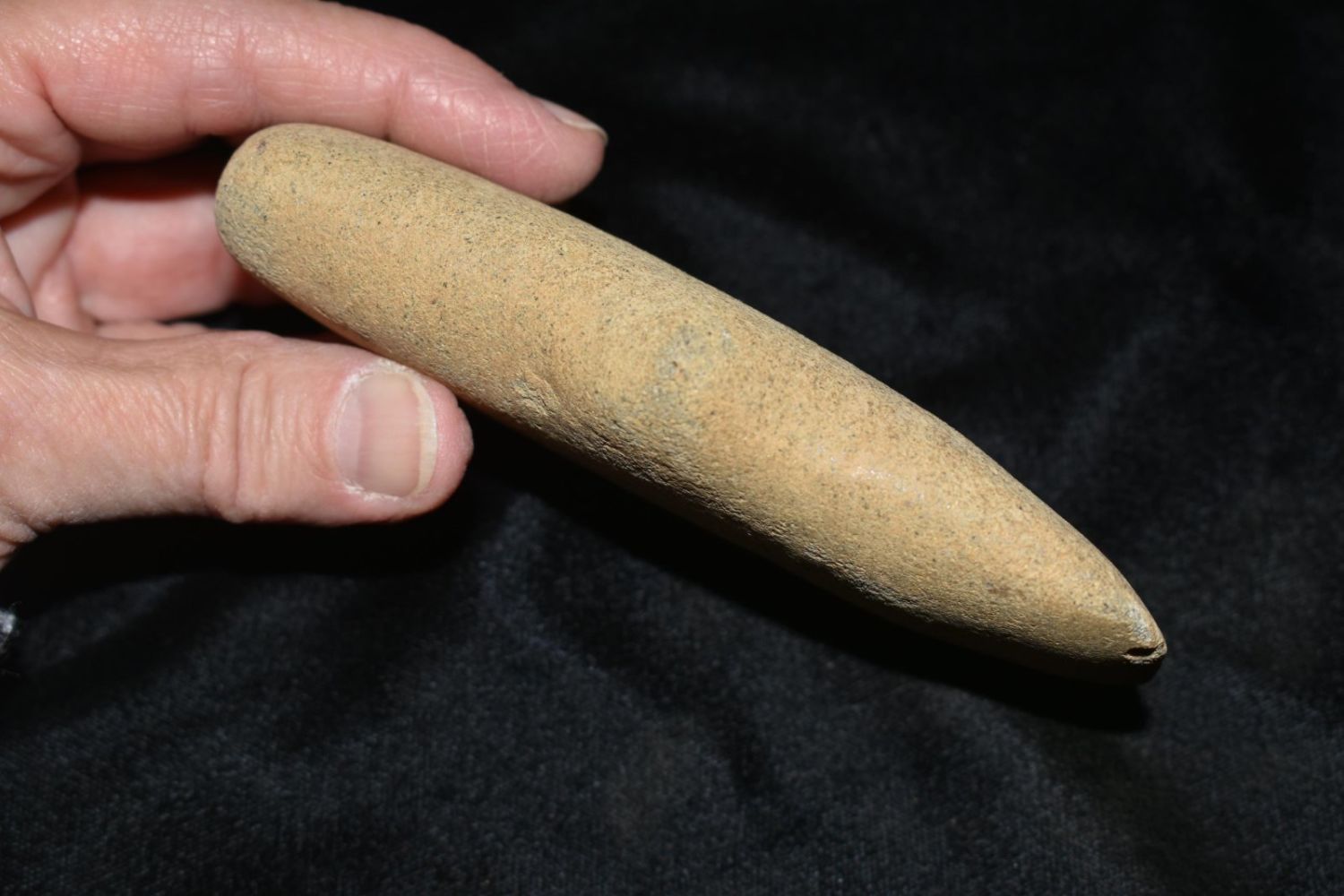 4 3/4"Stone Axe, Ex. Thunderbird Native American Museum NJ Dorothy Middleton Nelson was the founder, curator and proprietor of the Thunderbird Museum on Mt. Laurel Road during the 1930s through the 1960s. At one time it held one of the largest collections of Native American artifacts (nearly 50,000) in North America. Photo credit: "Dorothy’s Dream: Dorothy Middleton and her Indian Artifact Museum" by O. Kirk Spurr.Dorothy’s Dream, Dorothy Middelton and her Indian Artifact Museumby O. Kirk Spurr, PhDFor nearly fifty years Dorothy Middleton Nelson made her collection of Indian archaeological and ethnological materials–reputedly the fourth largest private collection in North America at the time
