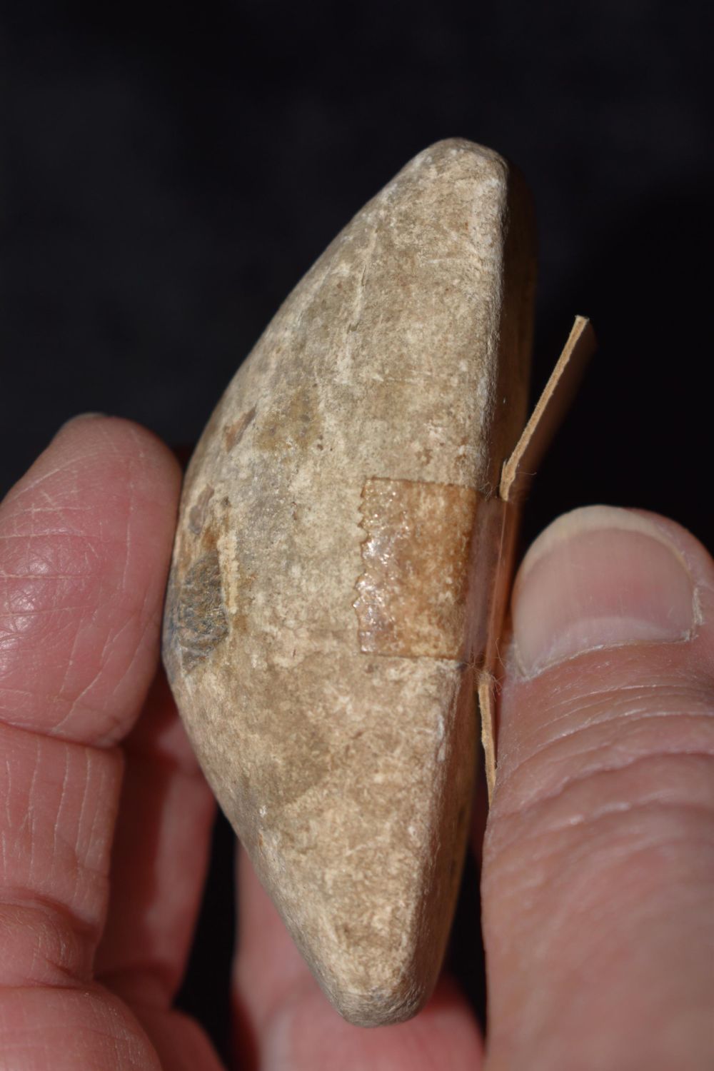 2 5/8" Galena Boatstone, found in NJ, Ex. Thunderbird Native American Museum NJ Dorothy Middleton Nelson was the founder, curator and proprietor of the Thunderbird Museum on Mt. Laurel Road during the 1930s through the 1960s. At one time it held one of the largest collections of Native American artifacts (nearly 50,000) in North America. Photo credit: "Dorothy’s Dream: Dorothy Middleton and her Indian Artifact Museum" by O. Kirk Spurr.Dorothy’s Dream, Dorothy Middelton and her Indian Artifact Museumby O. Kirk Spurr, PhDFor nearly fifty years Dorothy Middleton Nelson made her collection of Indian archaeological and ethnological materials–reputedly the fourth largest private collection in North America at the time.