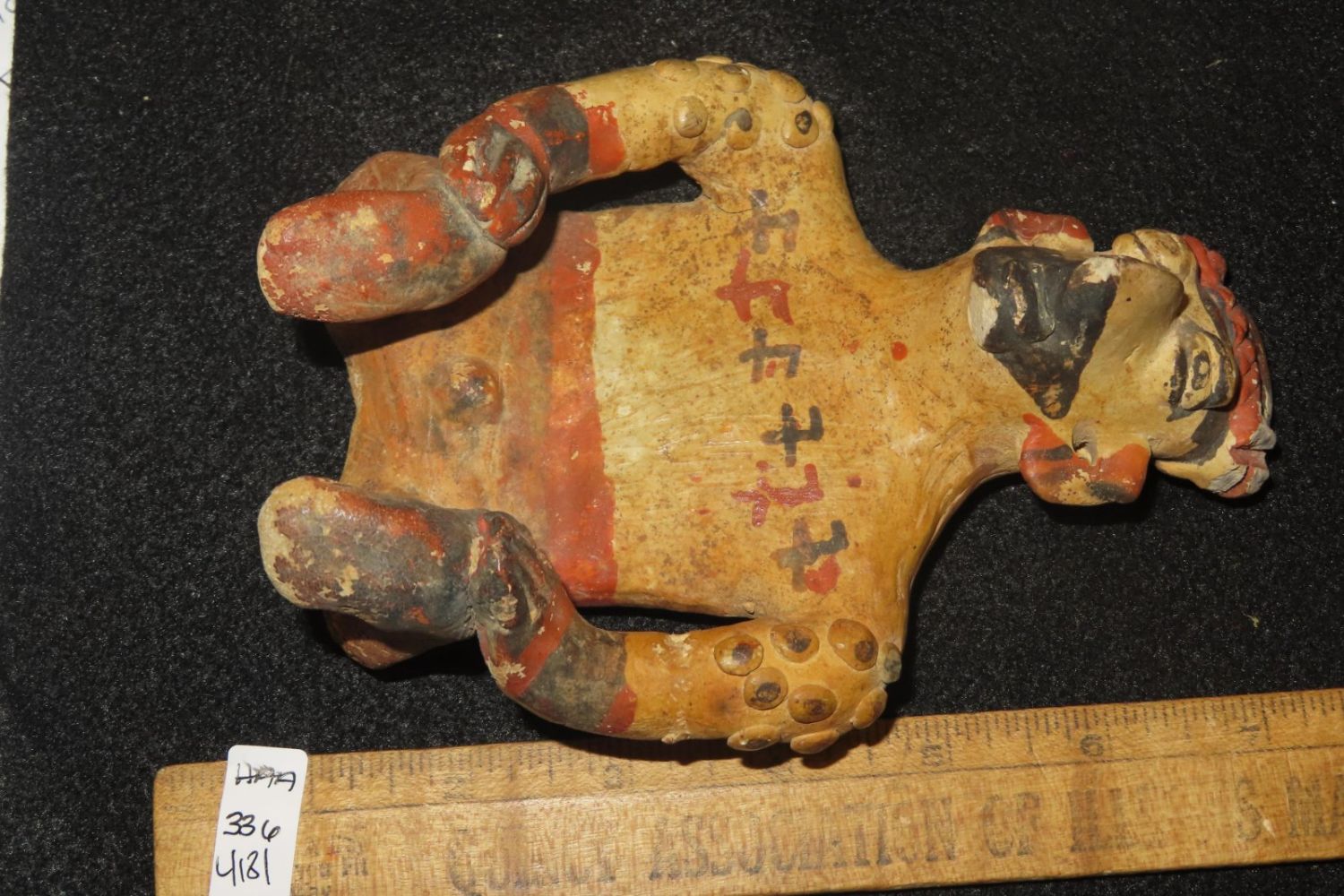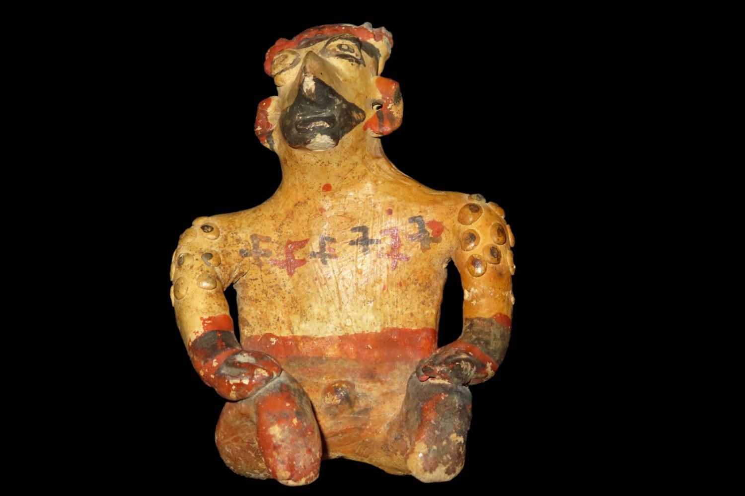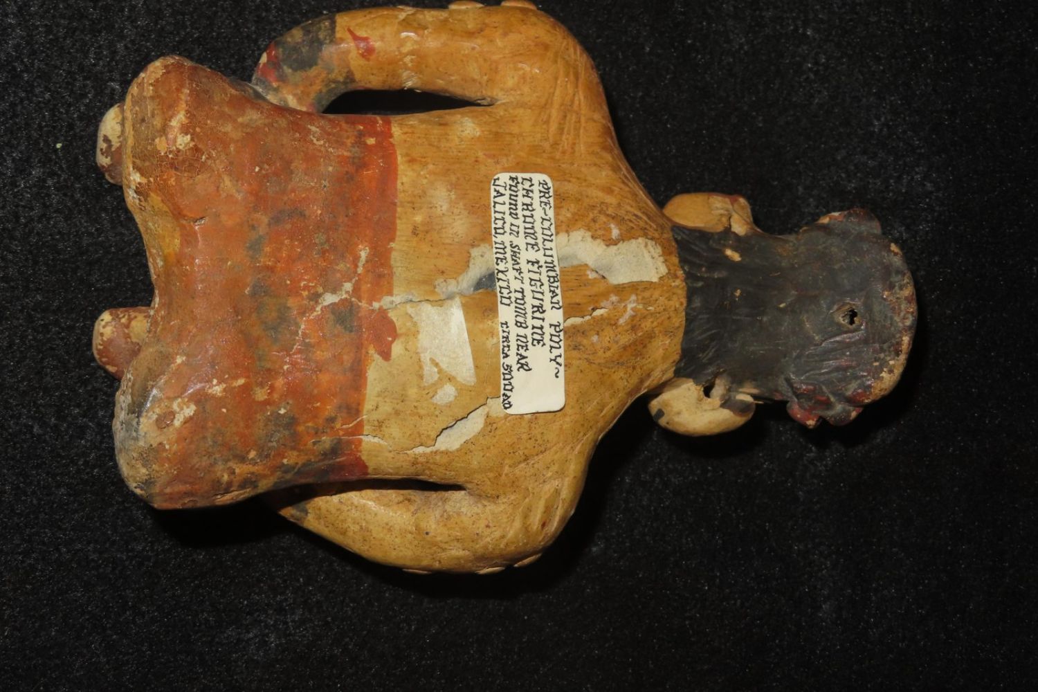 6 1/4" Pre-Colombian Poly-Chrome Figurine, found in a shaft tomb near Jalico, Mexico-dated 500AD