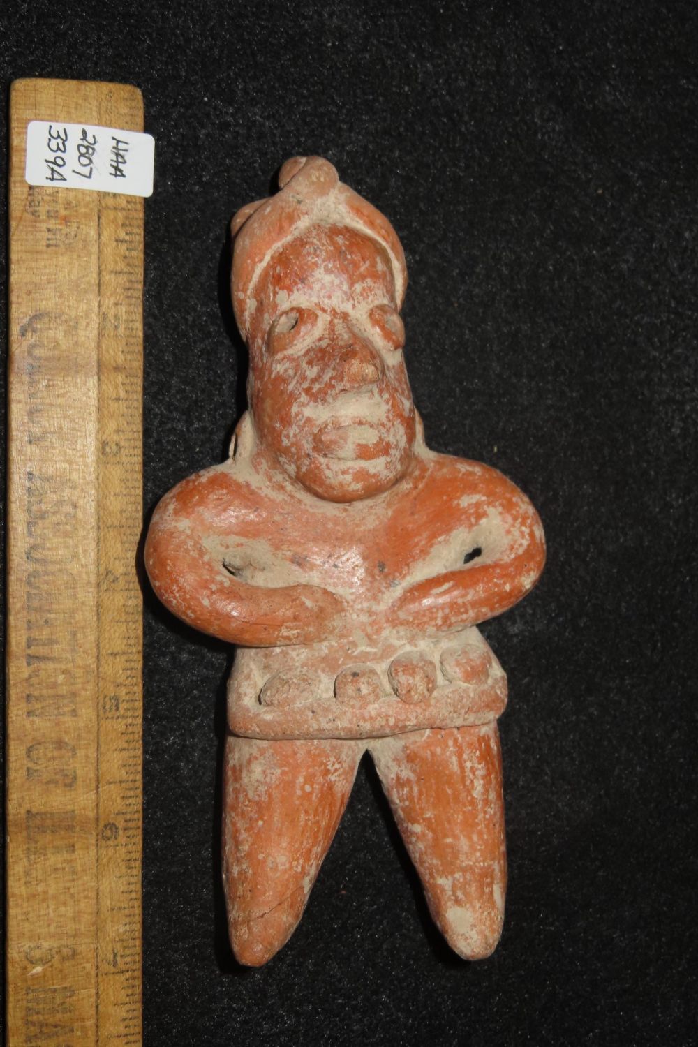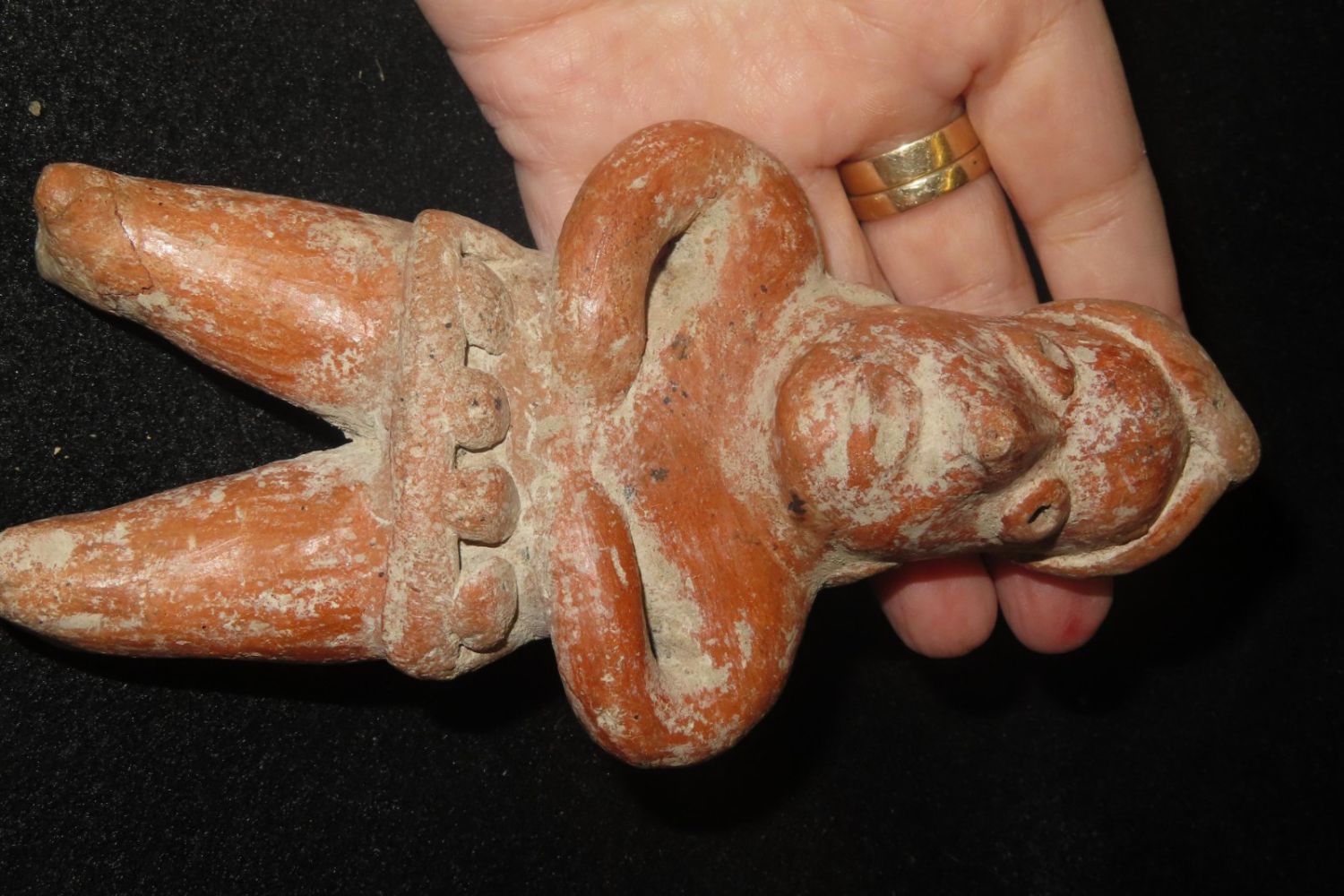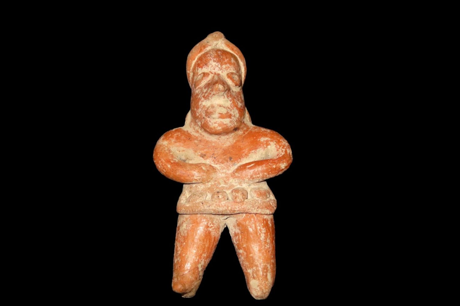 6 3/8" Nayarit Figurine with Game Balls wearing a Gaming Yoke- 250BC to 250AD