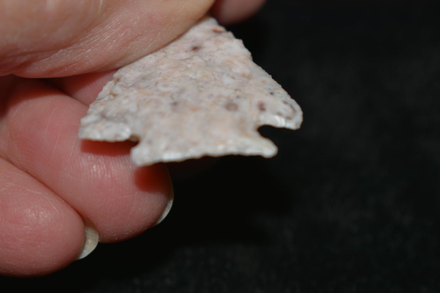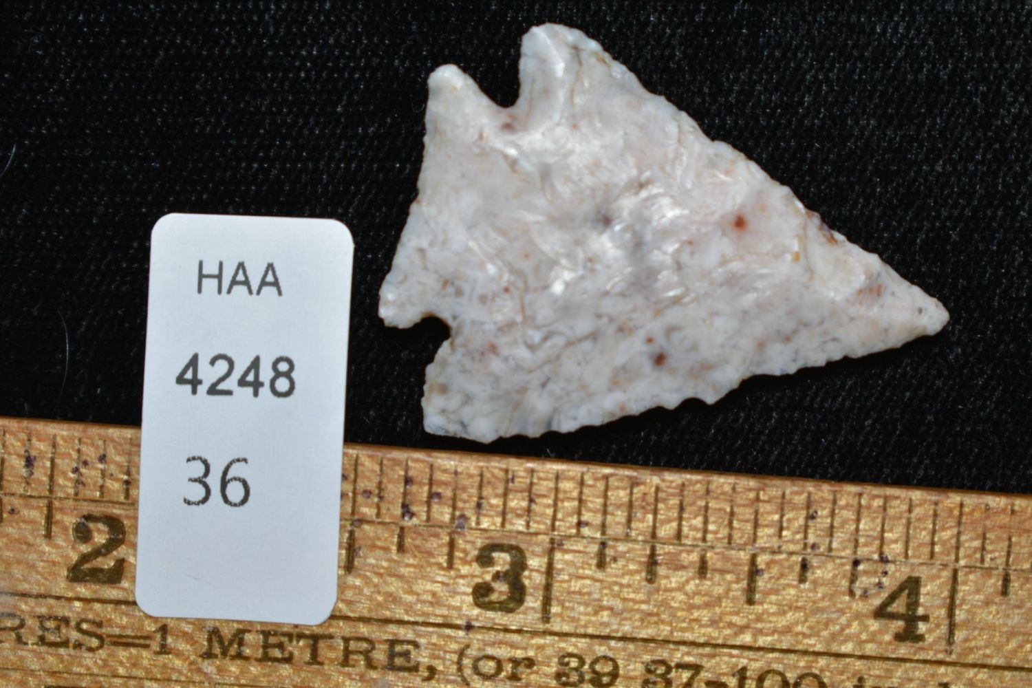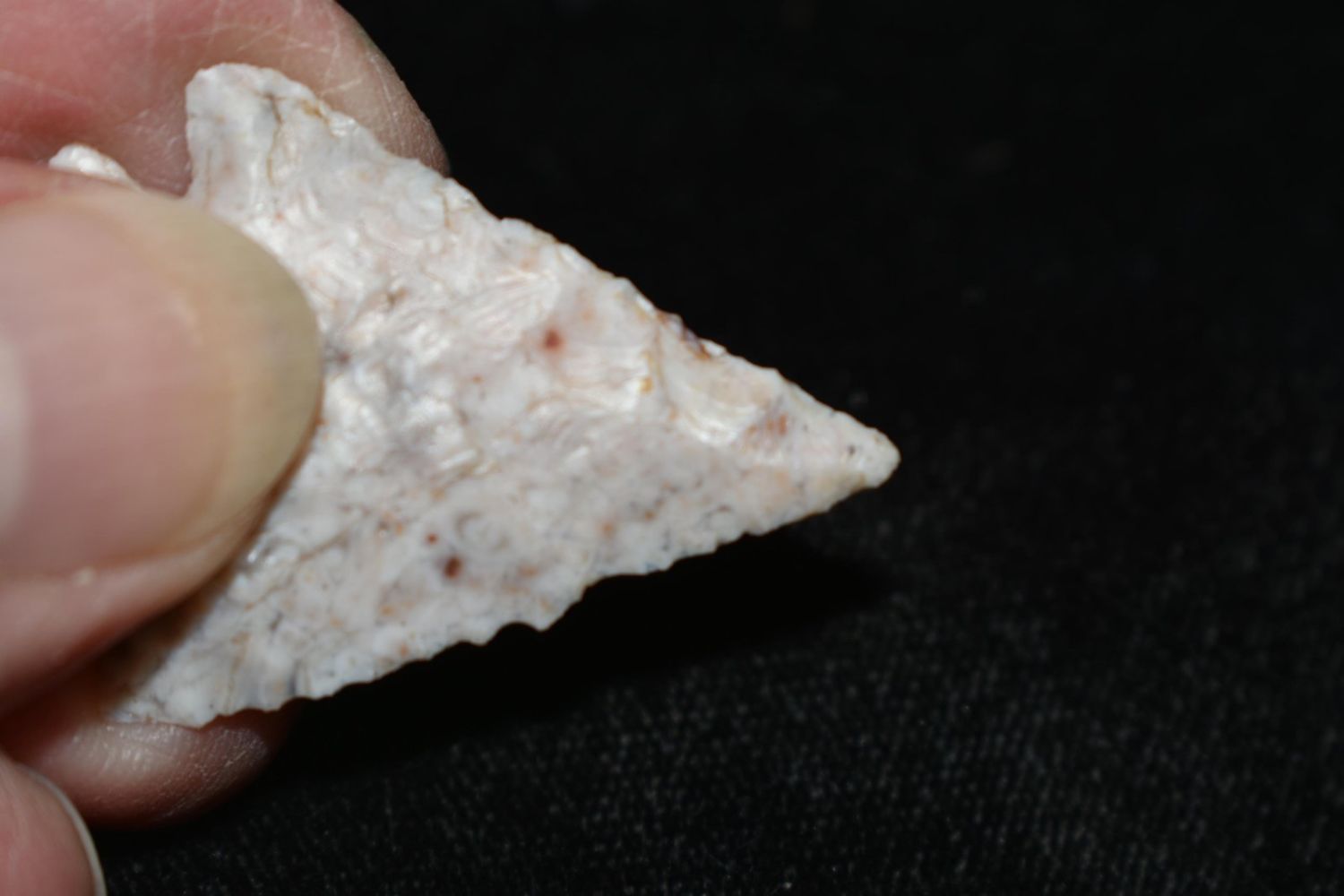 1 3/8″ Stealth made of Heat treated Burlington flint found by Brandon Hunt in Morgan Co, Illinois