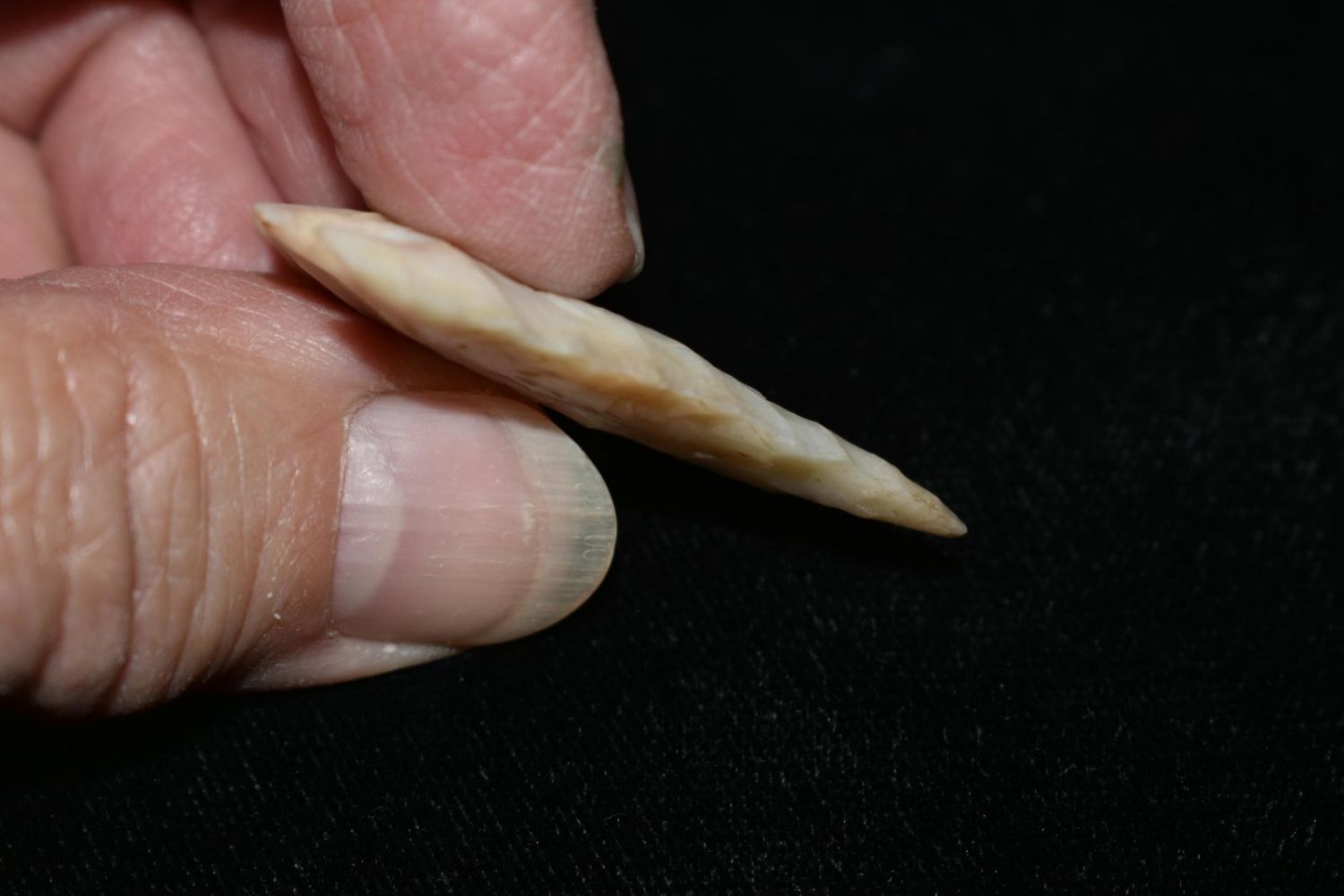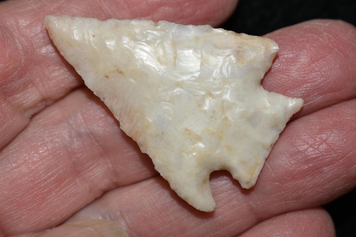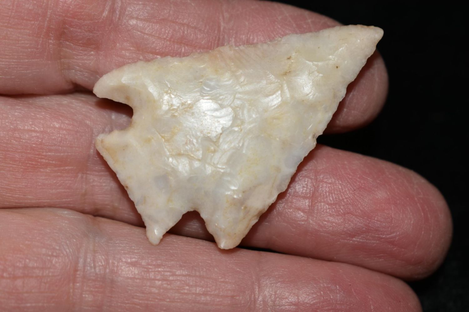 1 5/8″ Stealth made of a high grade Crescent Quarry super translucent. Found by Brandon Hunt in Greene Co, Illinois.