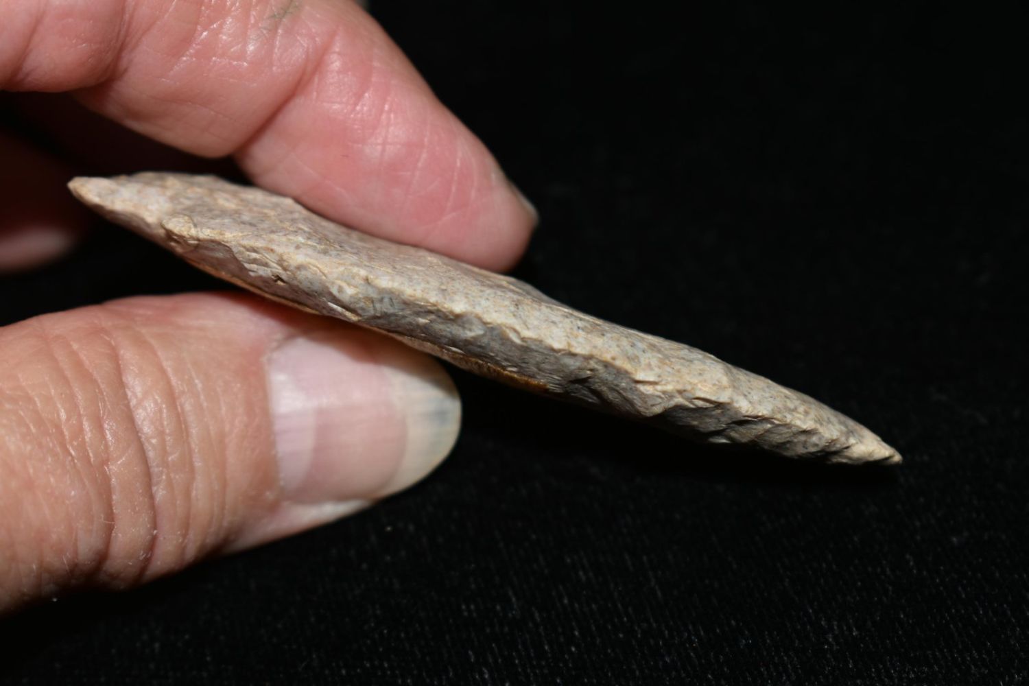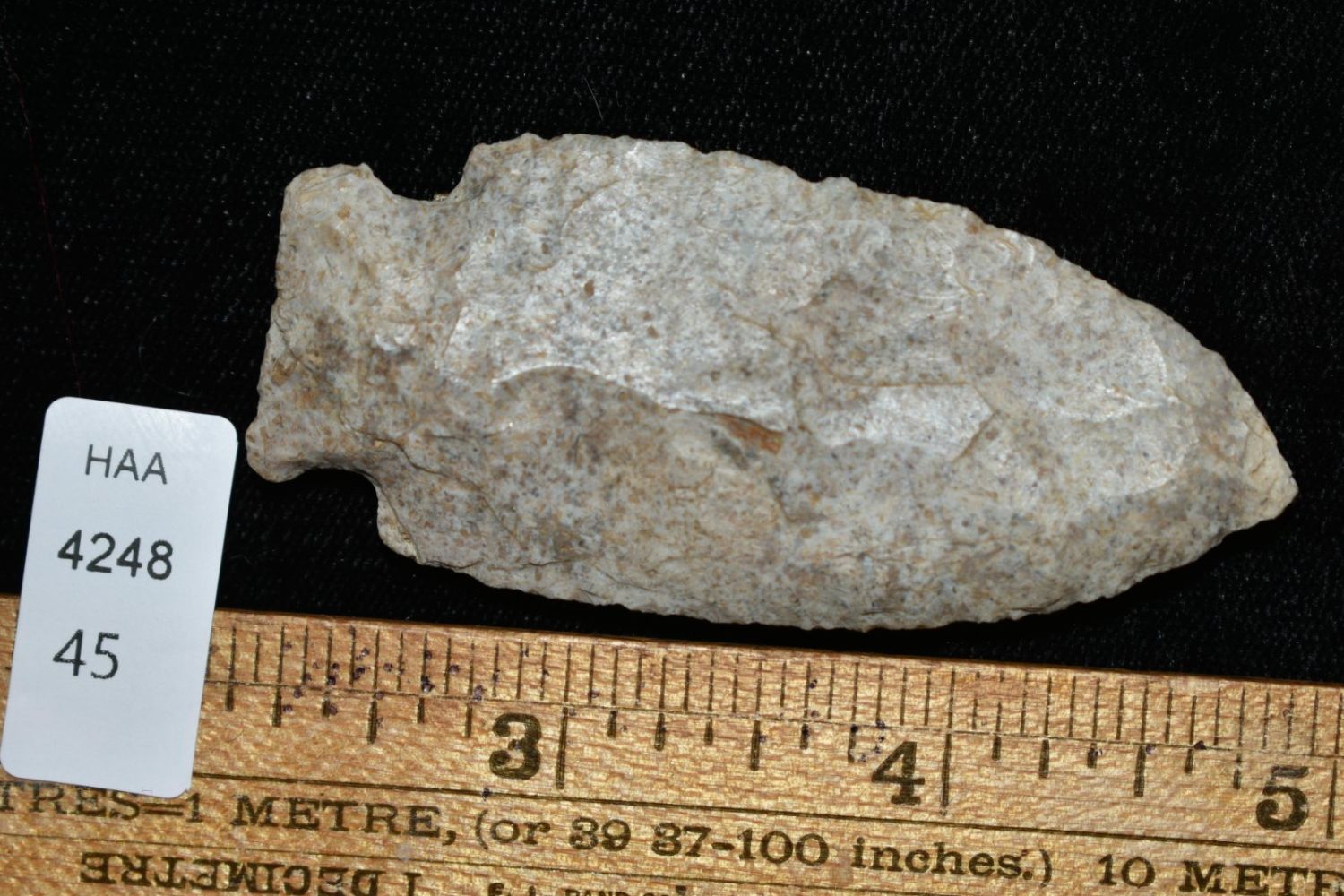 2 5/8″ Side Notched point found in Pike Co, Illinois Ex Bud Goodwin.