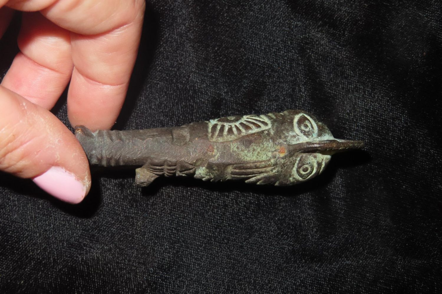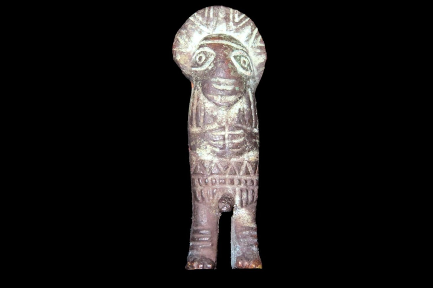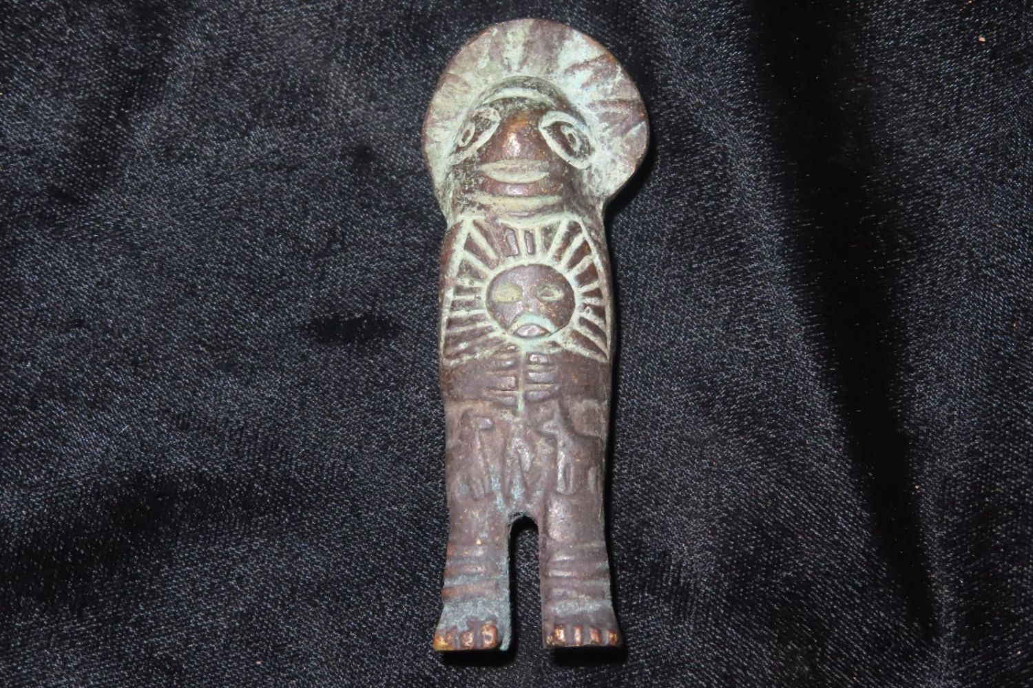 3 3/8″ Tall Incan Bronze Figurine Transmorphic in Nature, Male on one side, Female on the other-Pre-Colombian