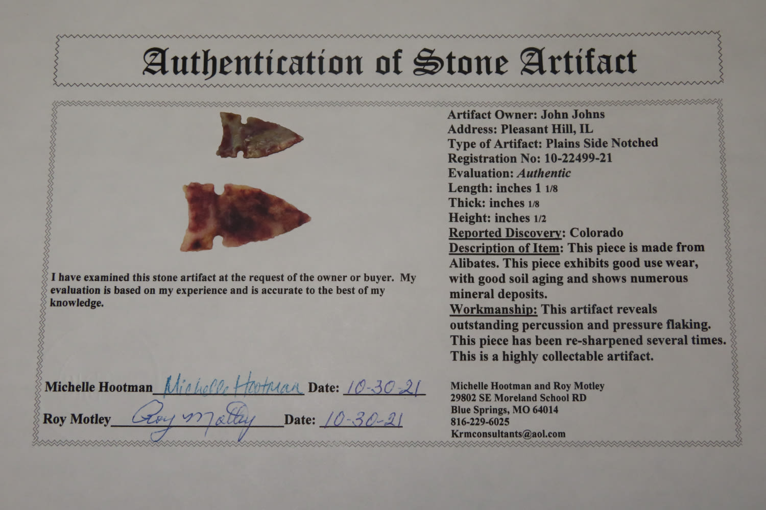1 1/8″ Plains Side-Notch, Motley COA, CO