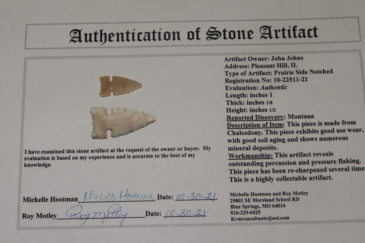 1" Prairie Side-Notch, Motley COA, MT