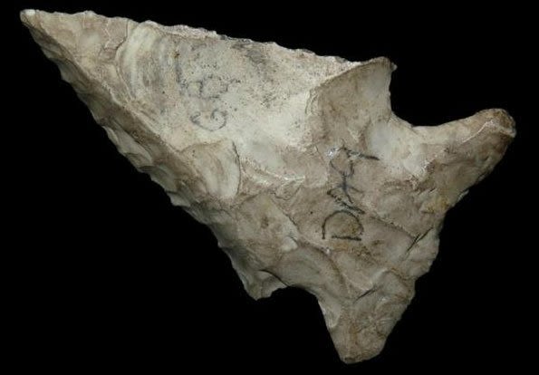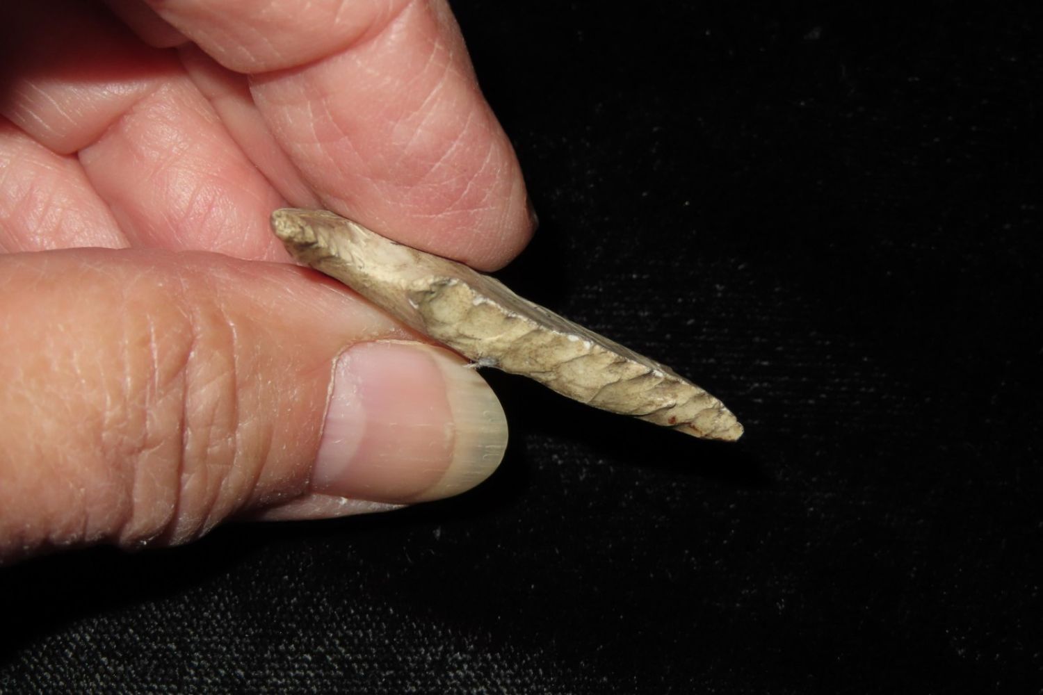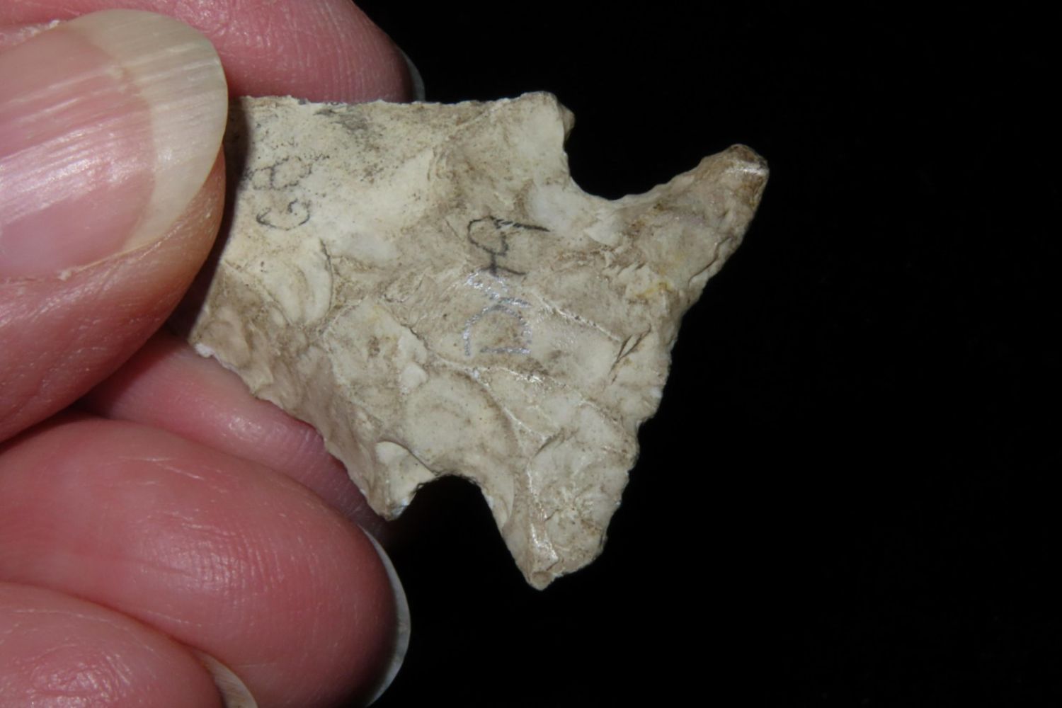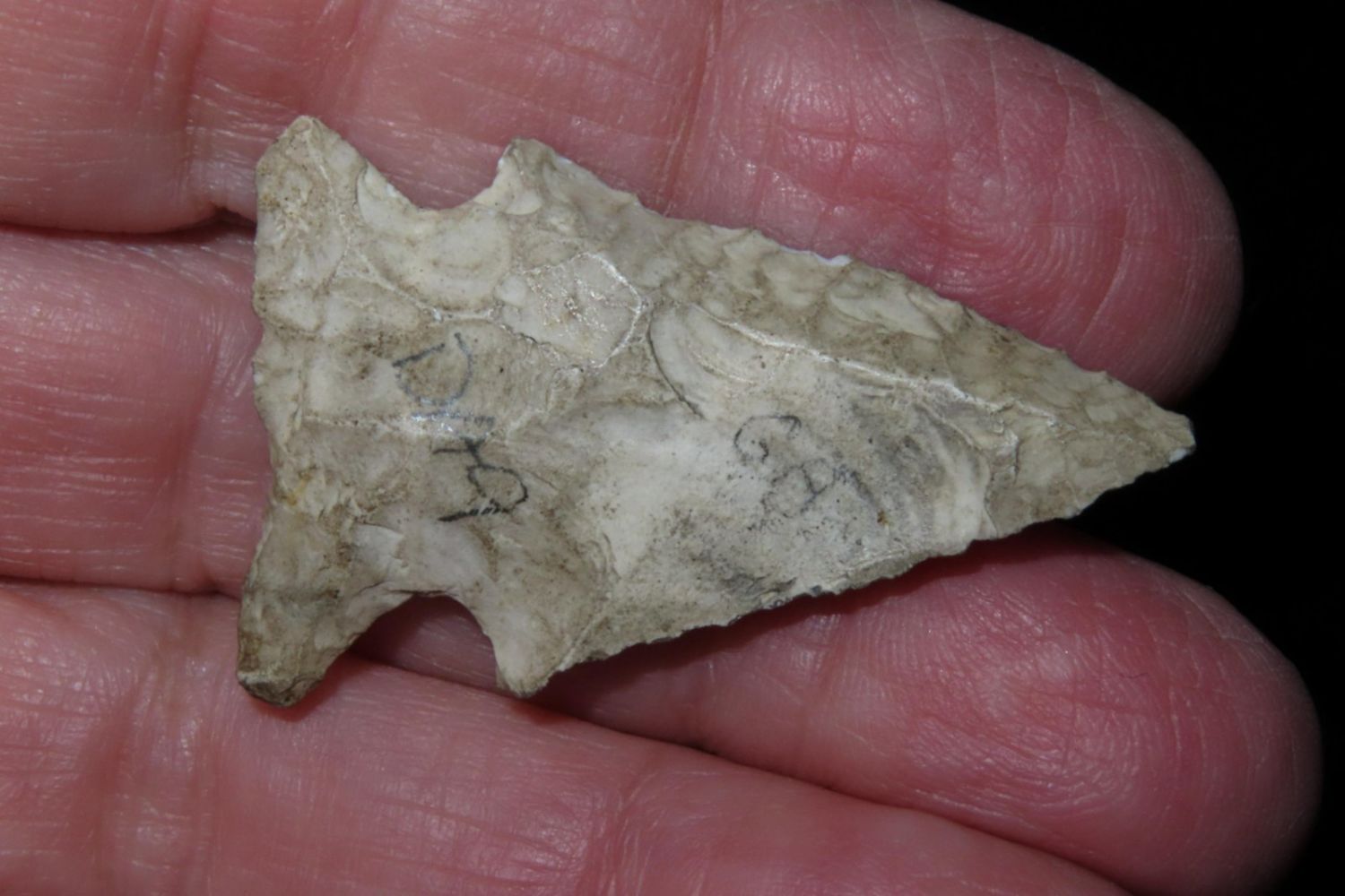 1 9/16" Russel Cave made made out of white chalky chert found in Kentucky.