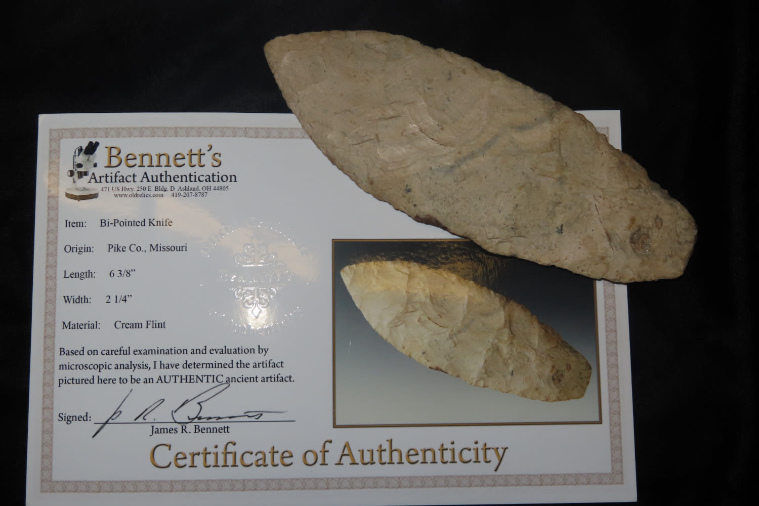 6 3/8" Bi-Pointed Knife, Bennett COA, Pike Co MO