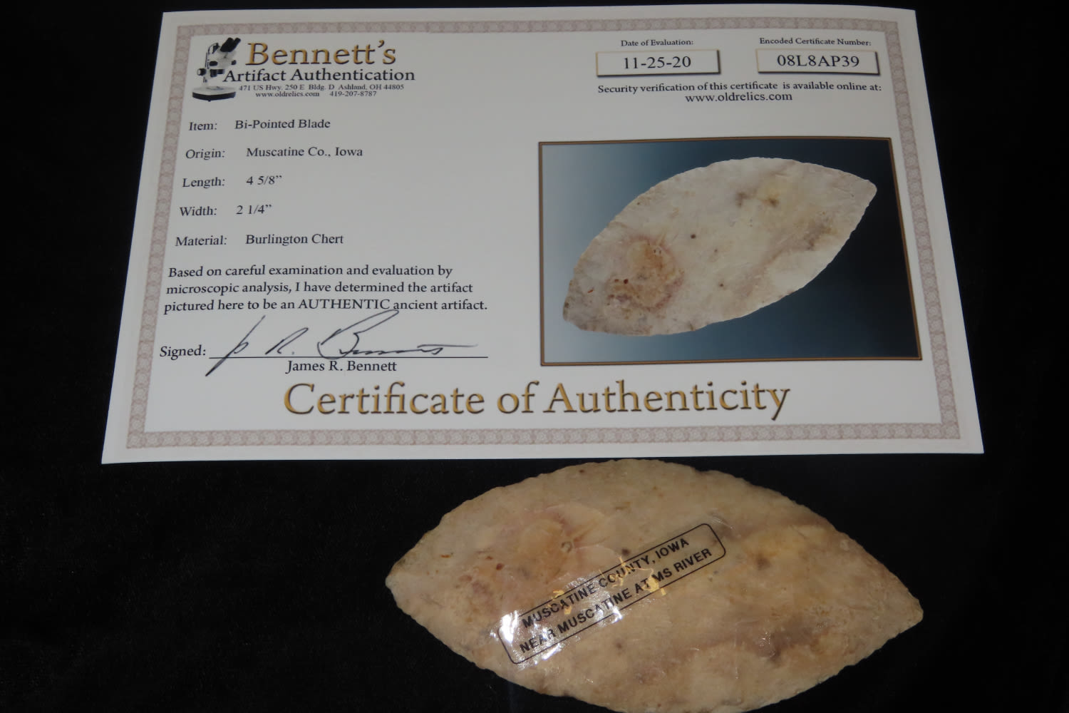 4 5/8″ Paleo Ovoid, Bennett COA, Muscatine Co, IA