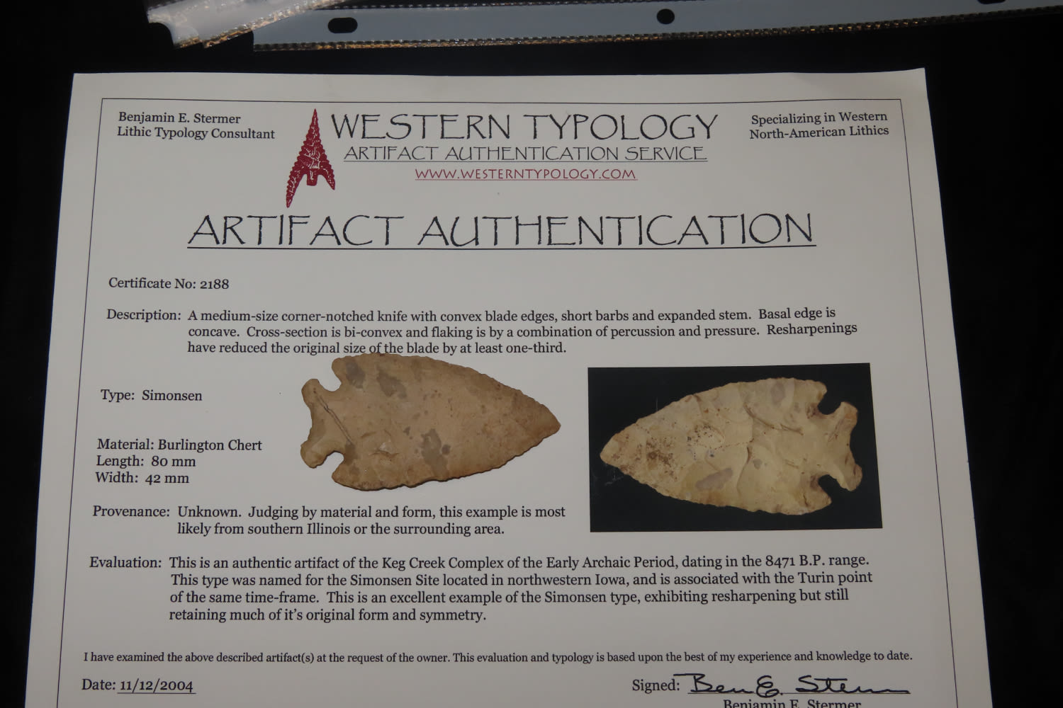 3" Simonsen, Stermer COA