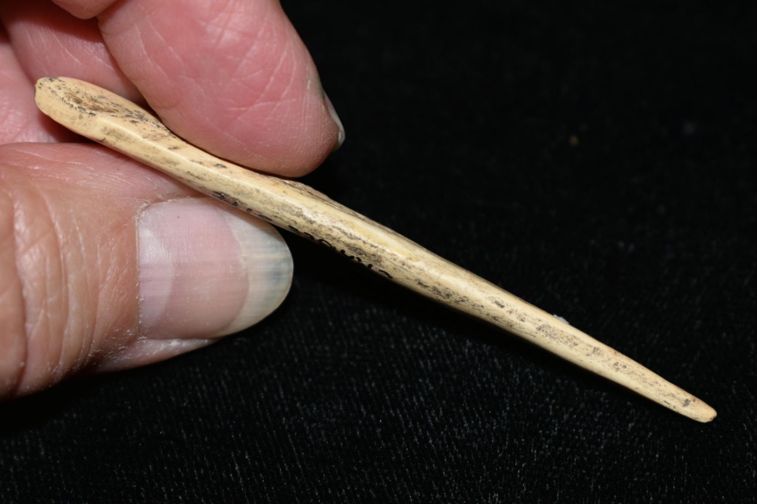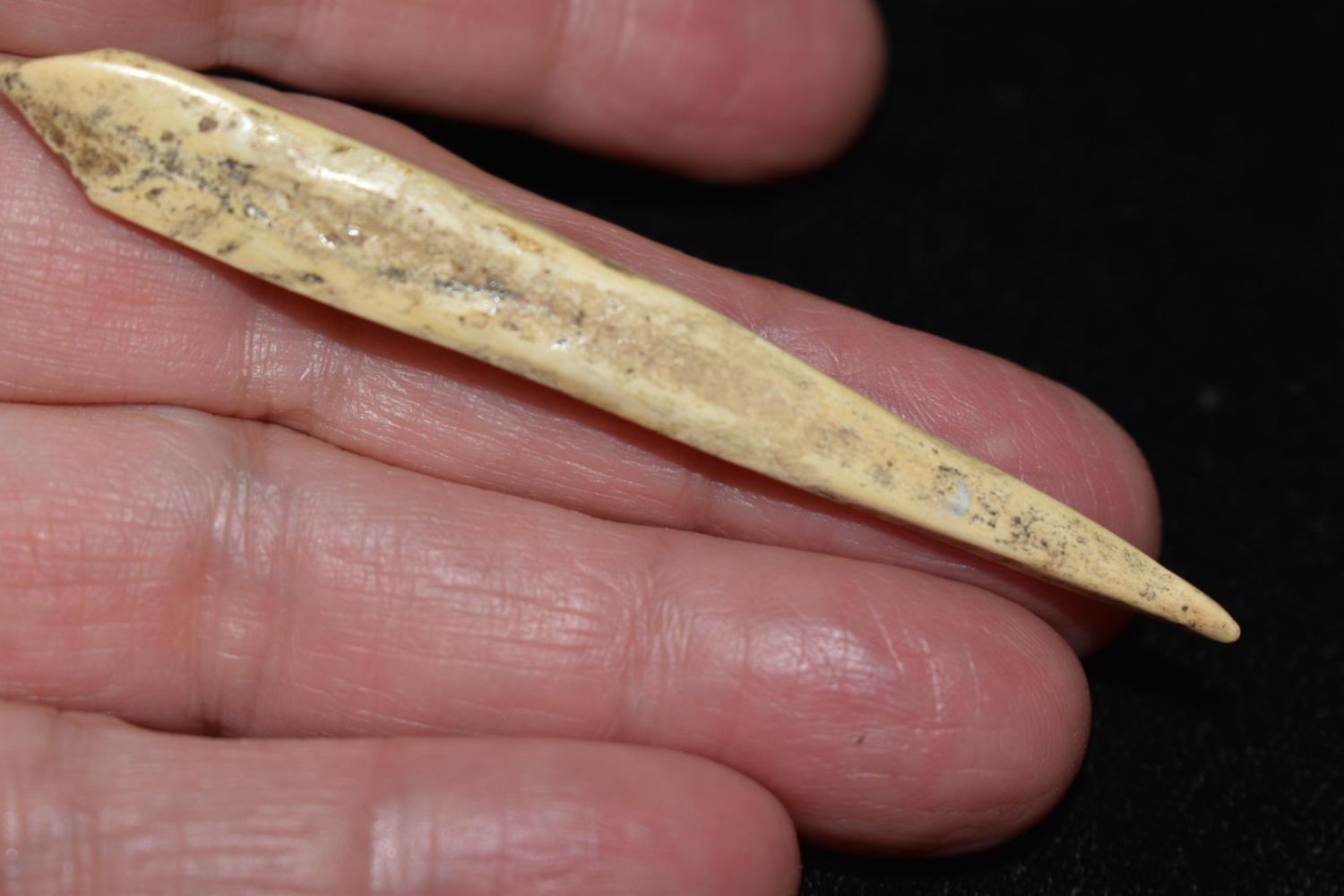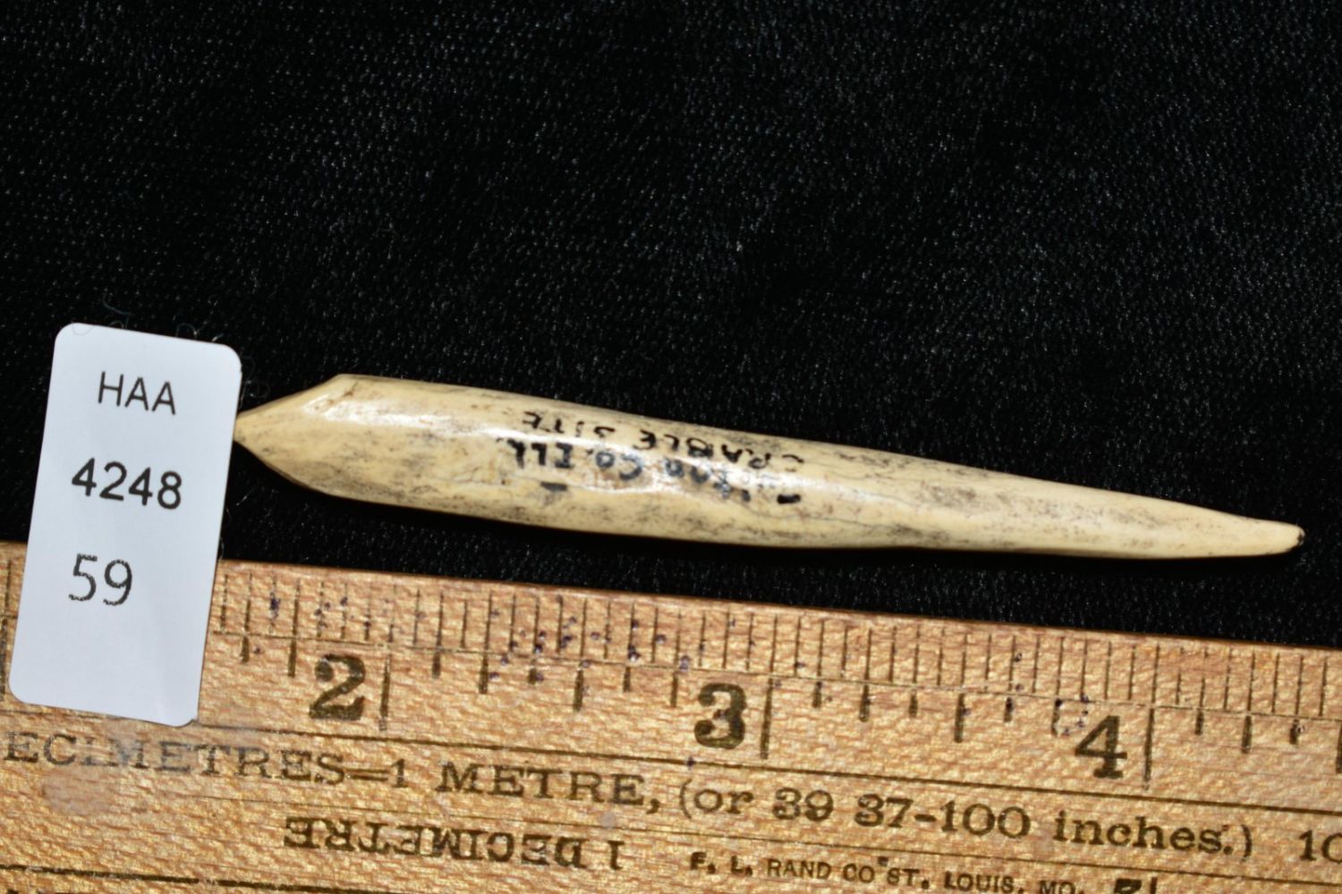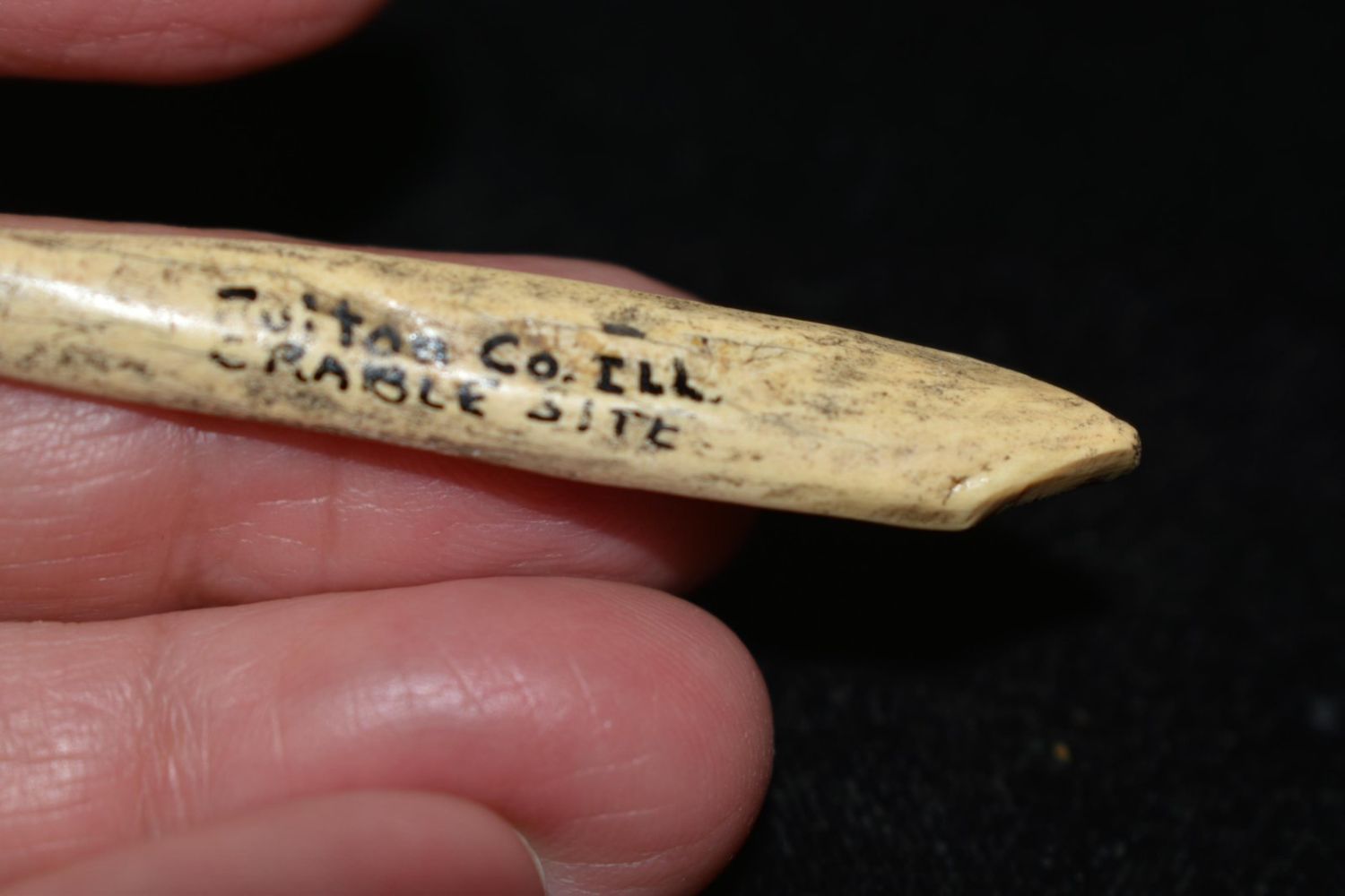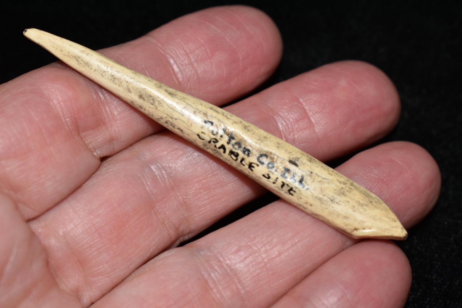 2 13/16″ Bone Awl from the Crable site found in Fulton Co, Illinois.
