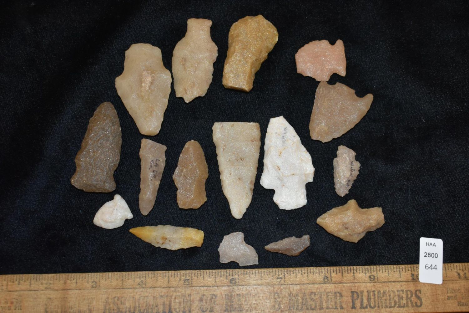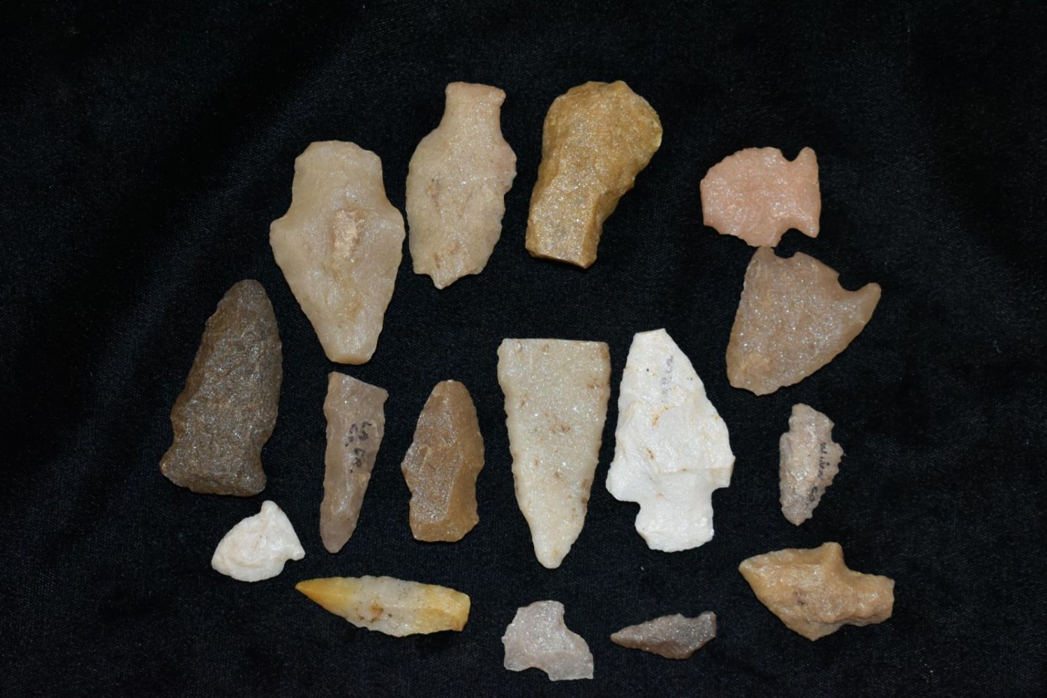 Grouping of 16 Hixton Quartz from Wisconsin Arrowheads