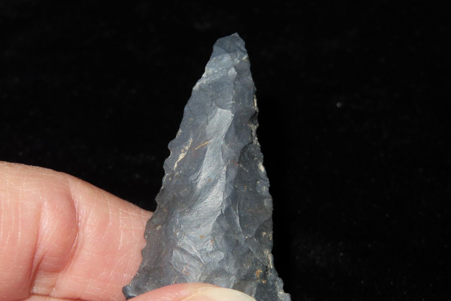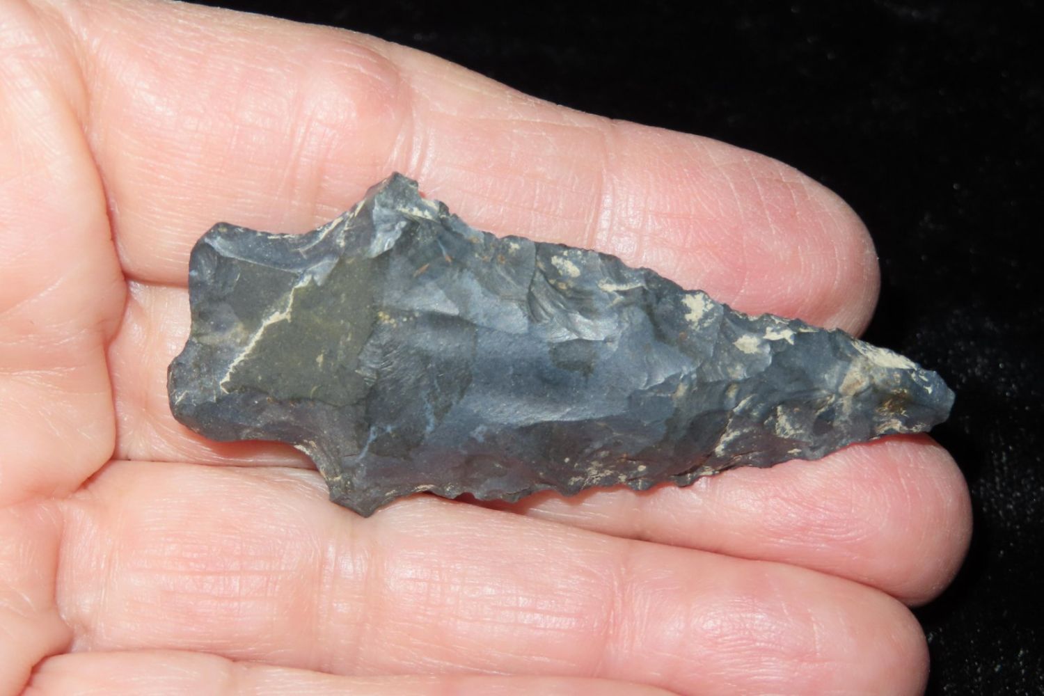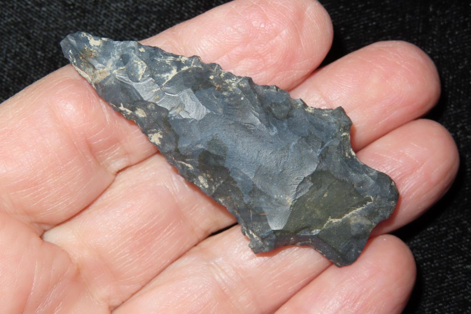 2 3/8″ Kirk made of Coshocton flint found in Ohio.