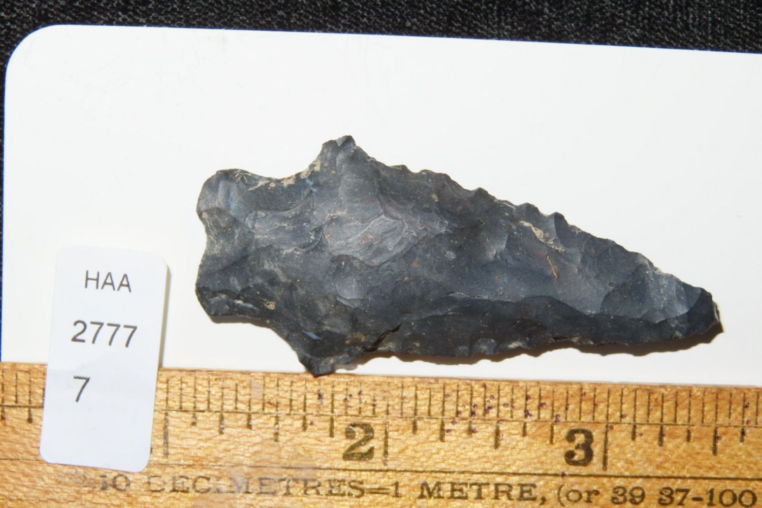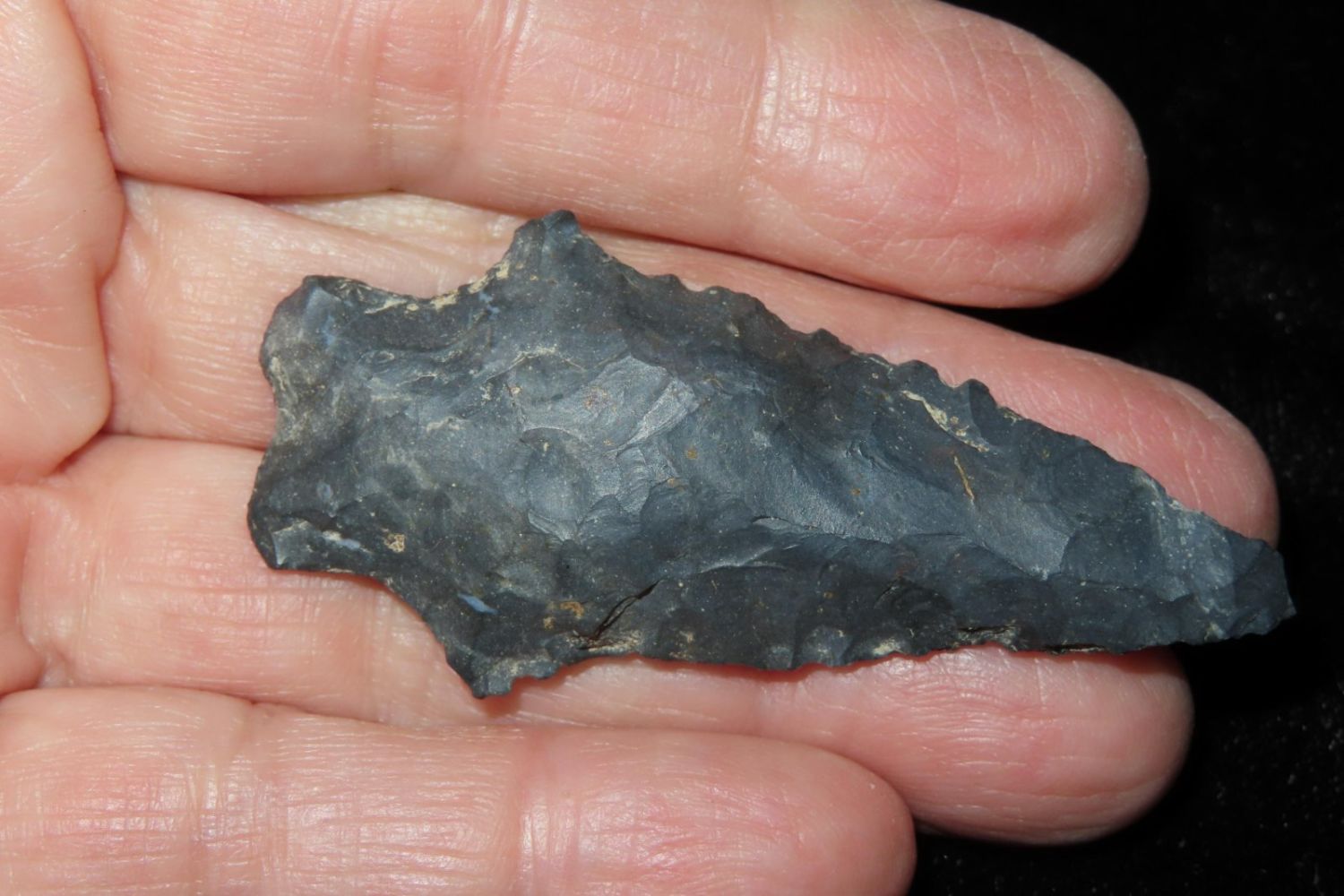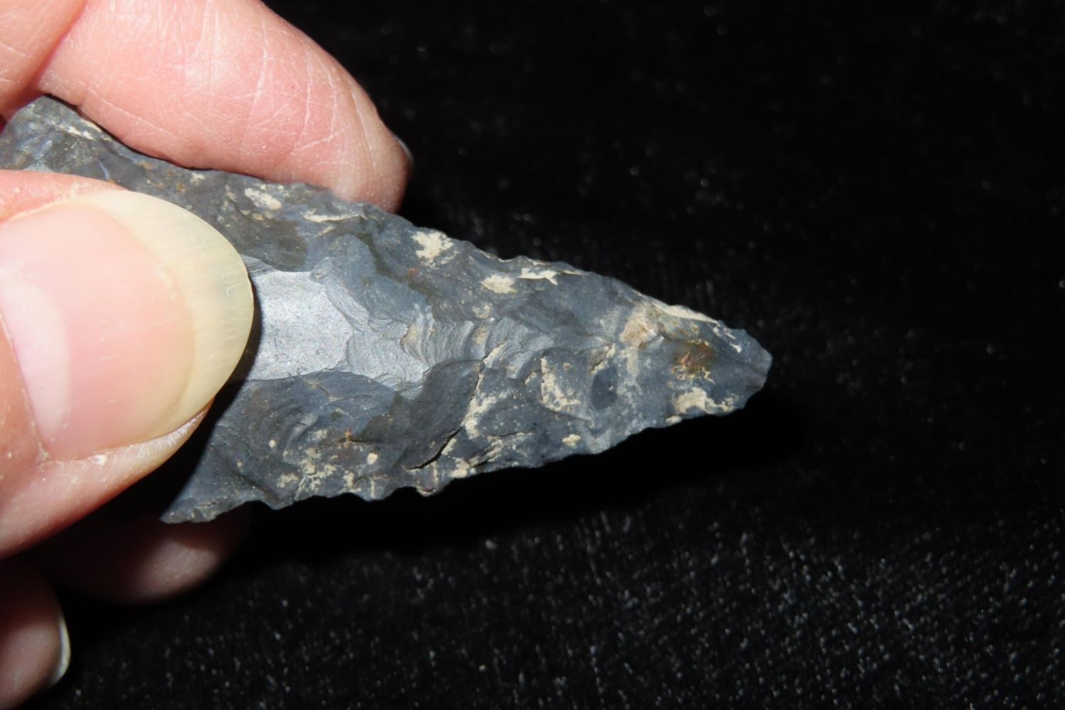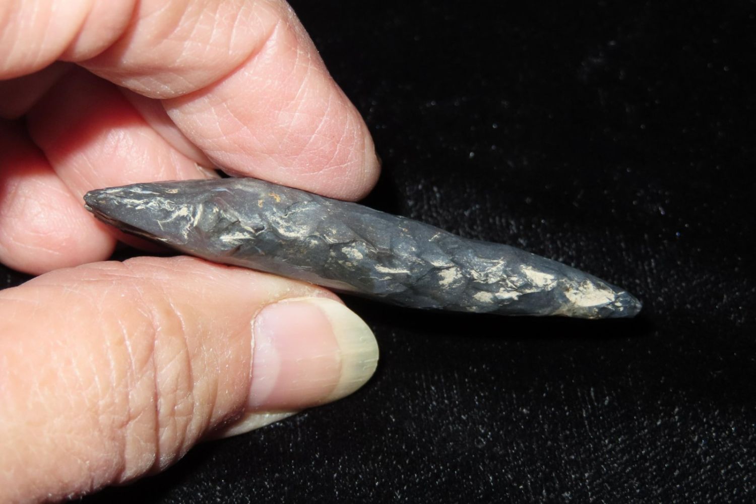 2 3/8″ Kirk made of Coshocton flint found in Ohio.