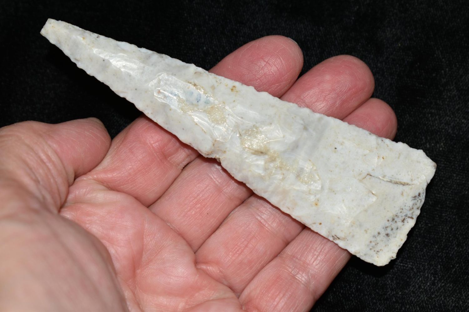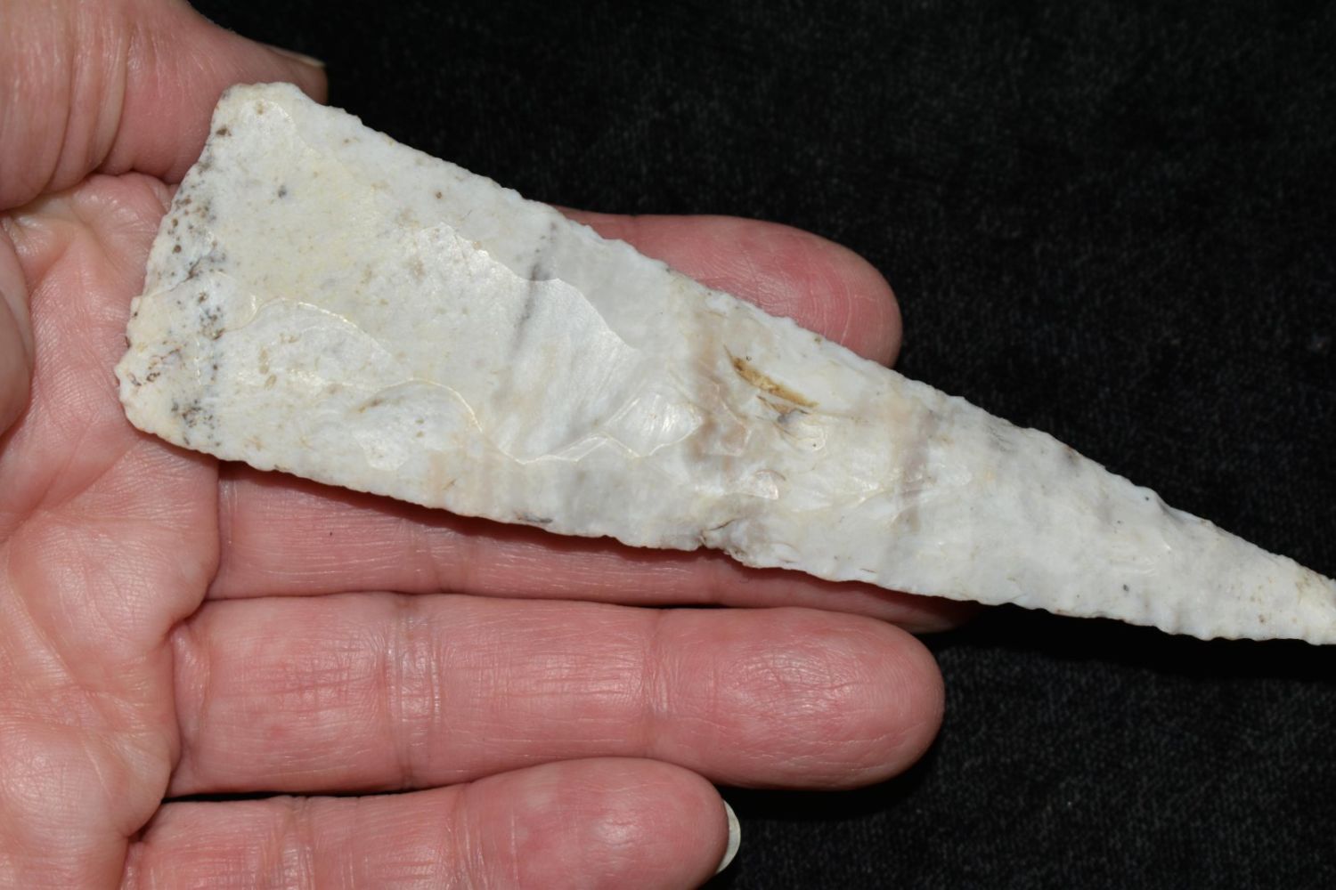4 3/8″ Stanfeild made of Avon flint found by Brandon Hunt in Morgan Co, Illinois.